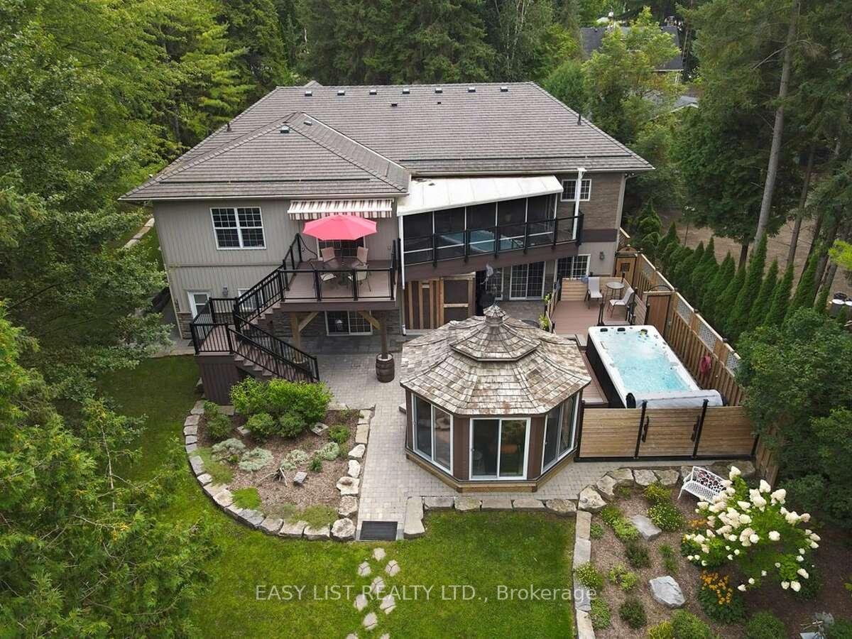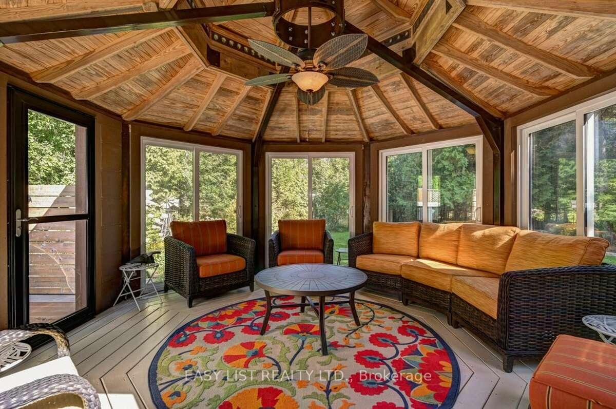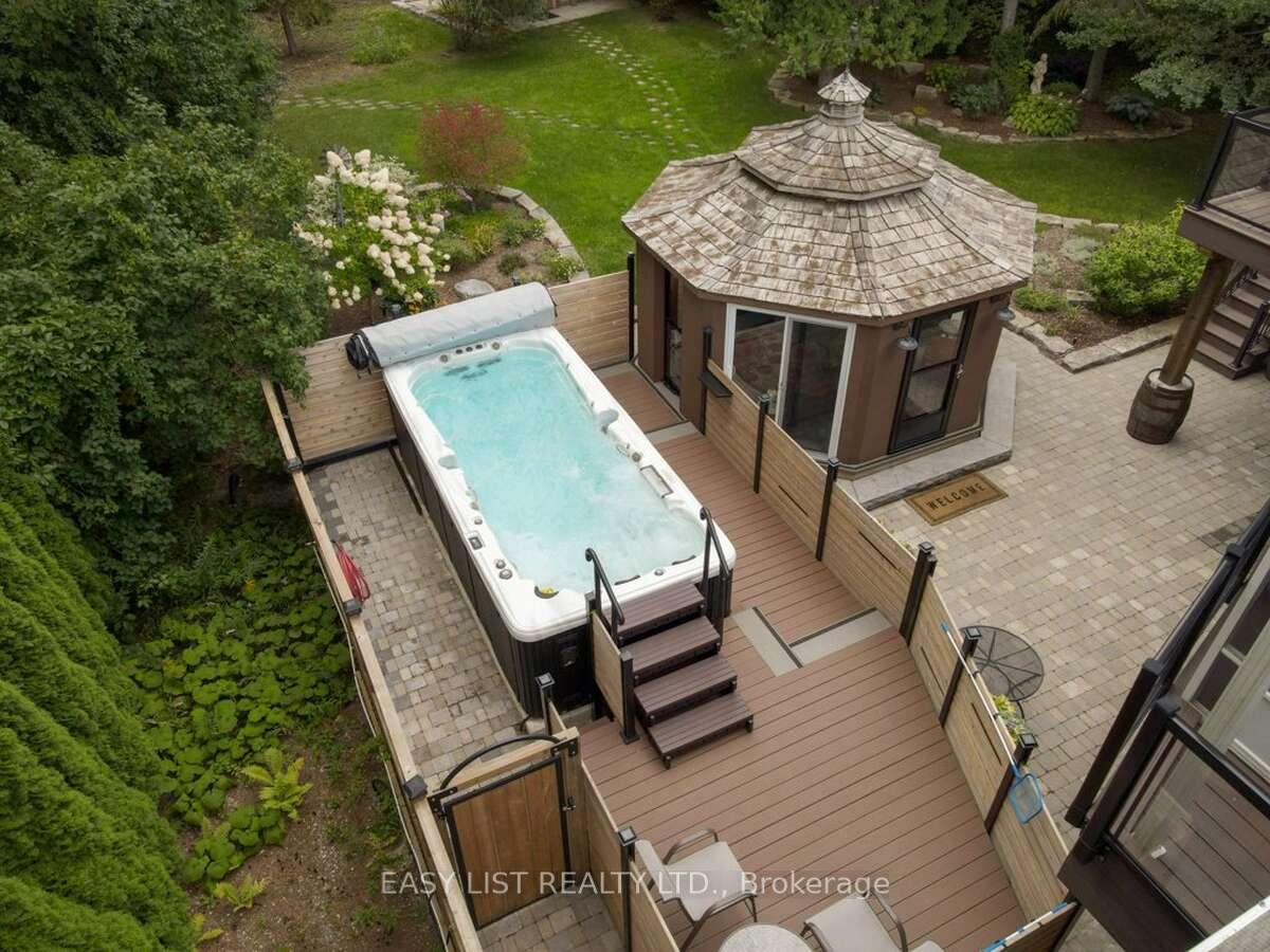 For more info on this property, please click the Brochure button. Welcome to 527 River Road – A Rare Urban Oasis in the Heart of Cambridge. Nestled on nearly 2 acres of pristine natural landscape along Irish Creek, this custom-built ranch-style bungalow offers an extraordinary blend of privacy, luxury, and convenience – just minutes from Highway 401, Hwy 24, Hwy 8, the Kitchener-Waterloo International Airport, top-rated schools, shopping, and dining. Nature, Privacy & Tranquility – Without Leaving the City. Boasting over 2,600 sq. ft. on the main floor and more than 5,200 sq. ft. of total finished living space, this exceptional home is the perfect retreat for those seeking space, serenity, and style. Enjoy a rare connection to nature with extensive outdoor features designed for both entertainment and relaxation: 17-foot Dynasty Swim Spa; 16-foot, 3-Season Gazebo; Fully Screened-In Deck & Elevated Outdoor Deck; 10-foot Private Screened Gazebo (by creek for ultimate seclusion); Meticulously Landscaped Gardens throughout; Built for Flexibility, Designed for the Future. The home’s clear span truss roof system means there are no interior load-bearing walls – providing easy potential for future layout changes or renovations. The 2,600 sq. ft. walkout basement is a true standout: 9-foot ceilings and 5 patio doors for abundant natural light; the 1,255 sq. ft. rec-room – is large enough for a full billiards setup custom-built wet bar, gas fireplace, and man door to basement workshop; The insulated sound proofed ceiling in-addition to the ceiling tiles makes for an acoustically pleasing and private environment. 96″ Home theater system c/w 16 in-ceiling speaker system makes for an exceptional theater experience.