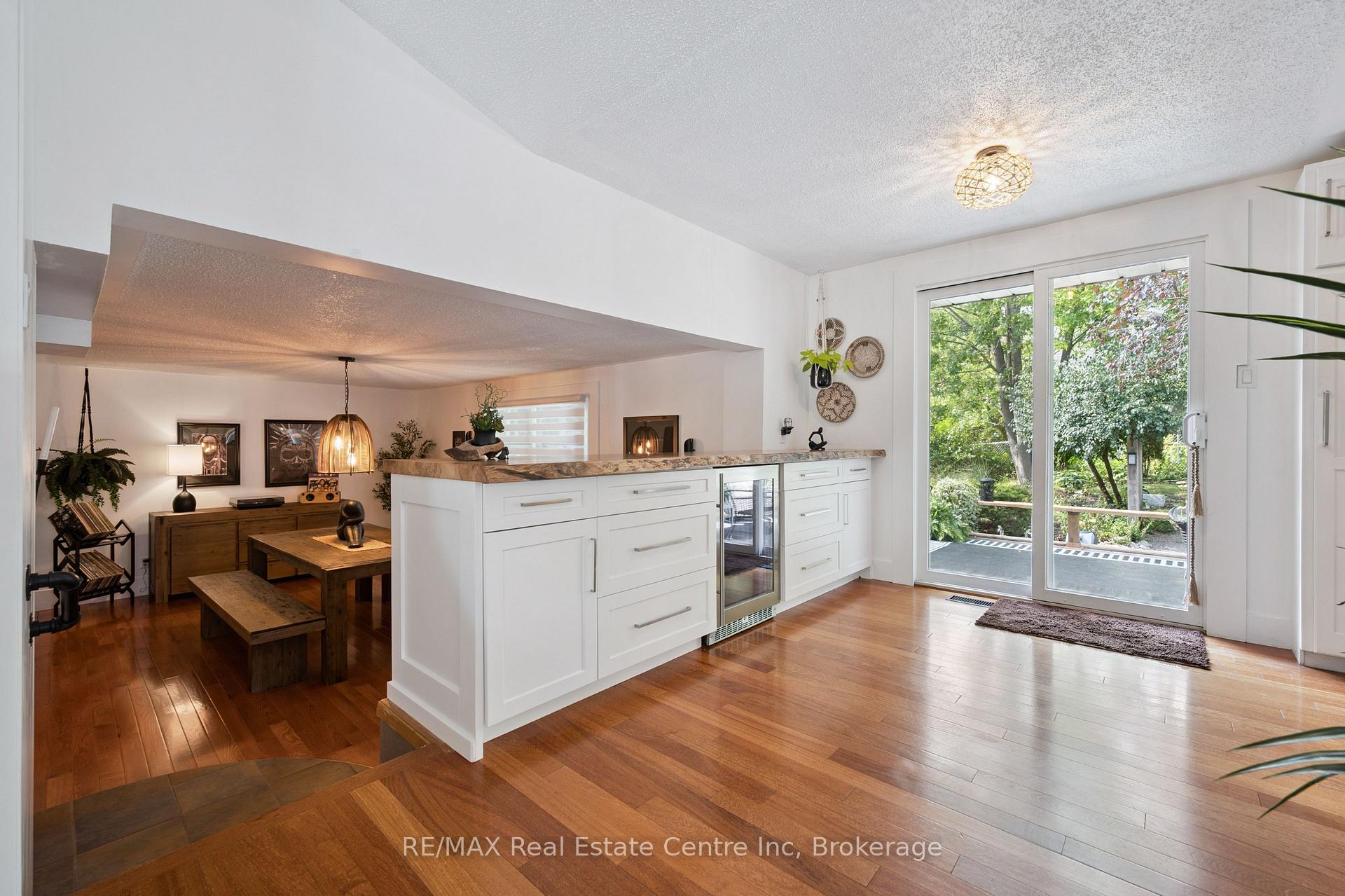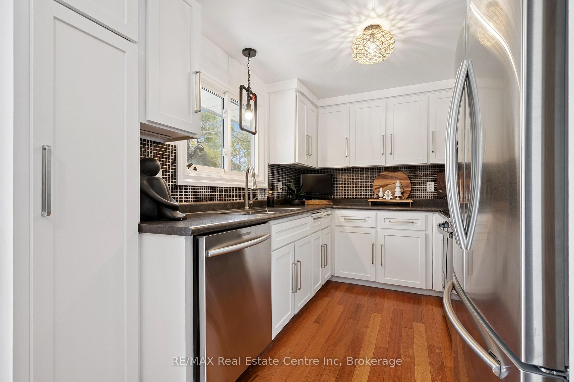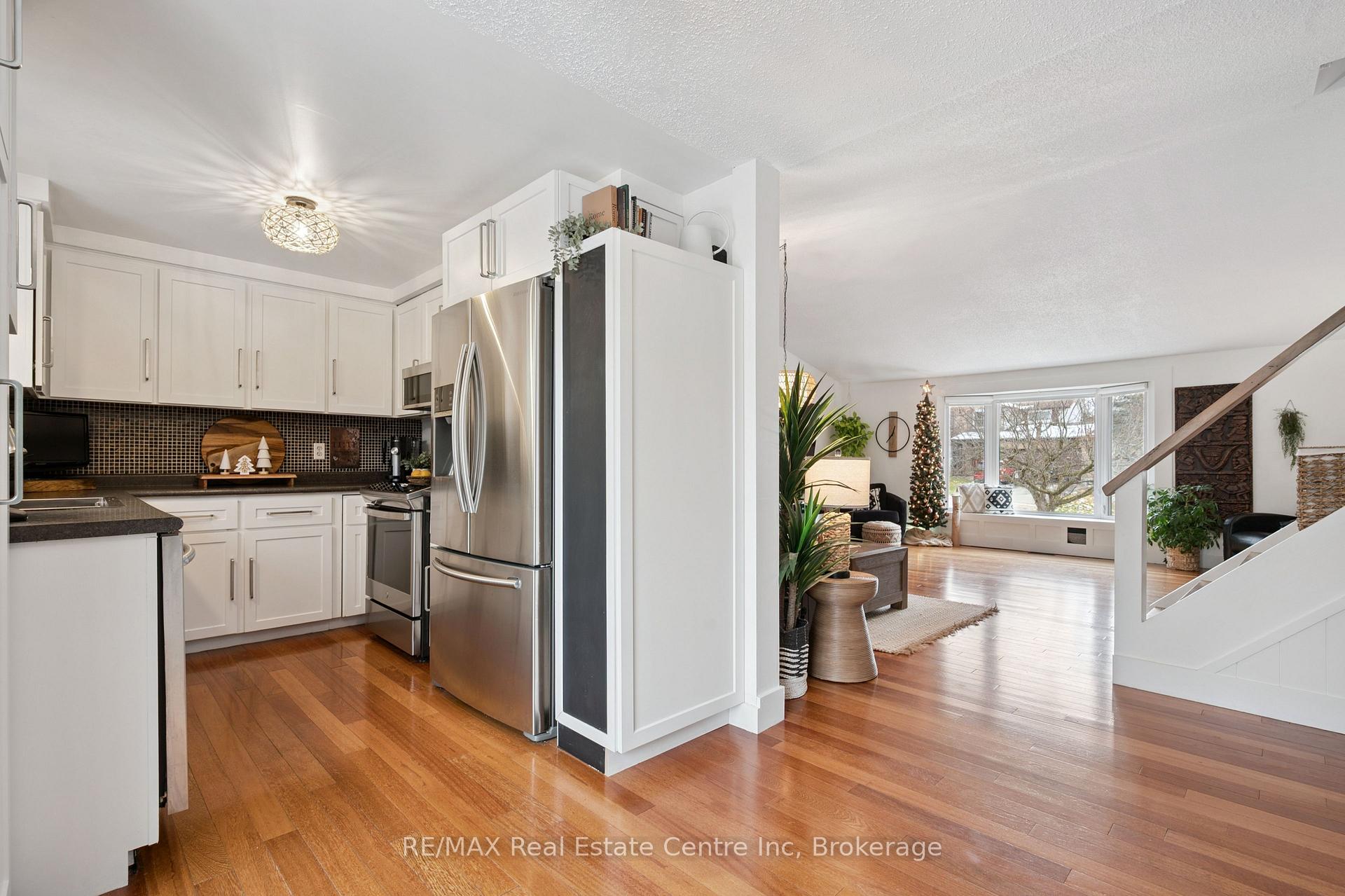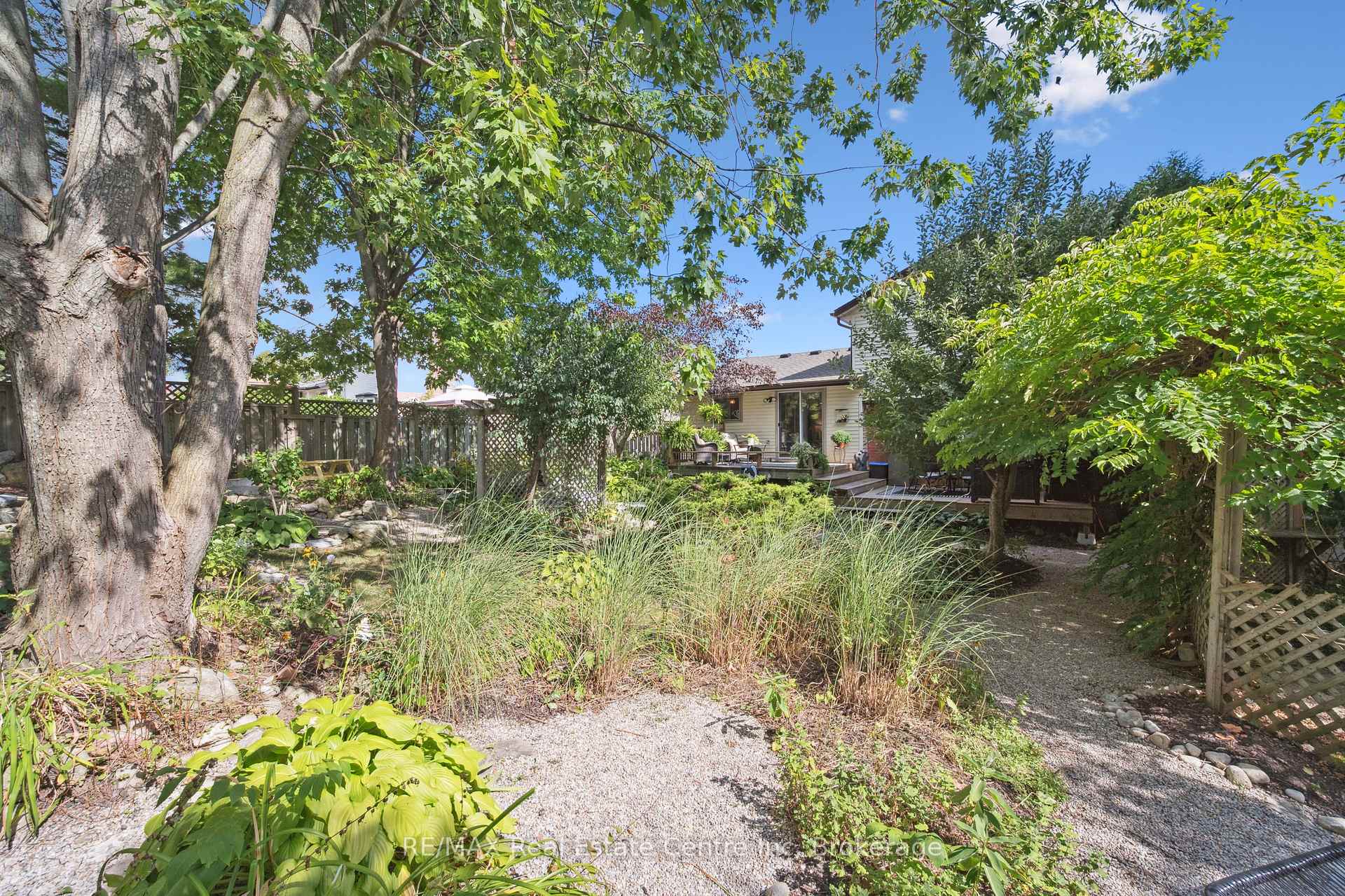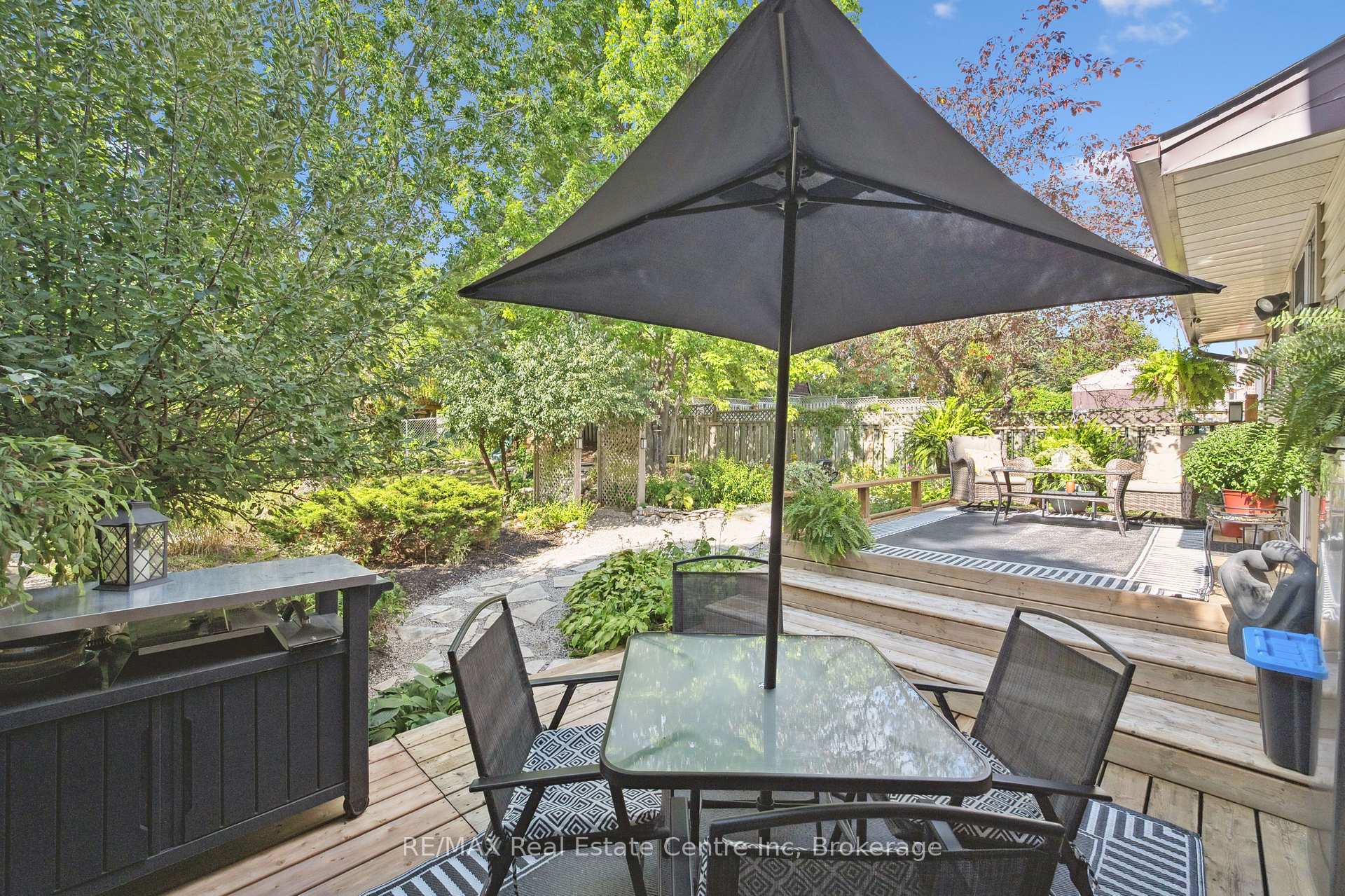 Welcome to 53 Rochelle Drive, a side split that blends thoughtful updates with a backyard retreat, which has been part of the Guelph Horticultural Society home tours and still could be, is a wonderful accolade. The curb appeal is warm and inviting, leading to a foyer with a convenient powder room. The open concept main level will impress with cathedral ceilings and gleaming hardwood floors, an ideal space for hosting and family gatherings. The bright kitchen has been modernized with new cabinetry, hardwood flooring, updated appliances, a live edge counter, and a bar fridge, which overlooks the dining area and with sliders to the back deck. It keeps everyone connected, whether entertaining inside or out. Upstairs, three bedrooms and a 4 piece skylit bath await, including a primary suite with a 3 piece ensuite and custom door. The lower level expands your living space with a large recreation room, craft room, workshop with laundry plumbing, a rough-in for an additional bath, and ample storage.. Outside, the two tier deck opens to a whimsical yard featuring perennial gardens, a vegetable plot, a spacious shed, and a brand new two level treehouse for the kids. All of this comes in a family friendly location just a short walk to Taylor Evans Public School. Everyday amenities, shopping, dining, and major commuter routes are close by, while nearby parks and trails provide endless recreation. From the welcoming curb appeal to the whimsical yard, every detail of 53 Rochelle Drive has been crafted with family living in mind. This is a home ready to be cherished for years to come…