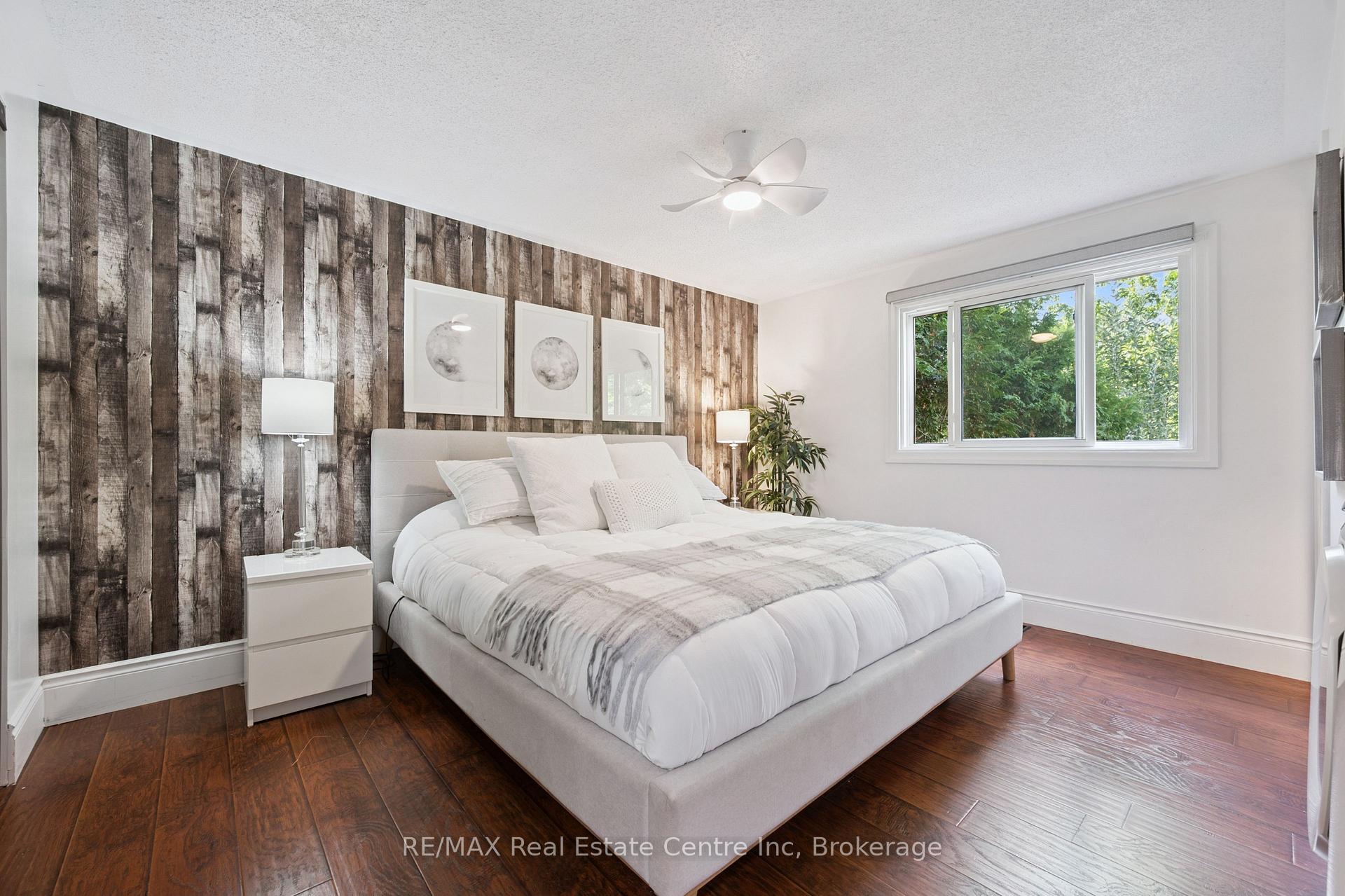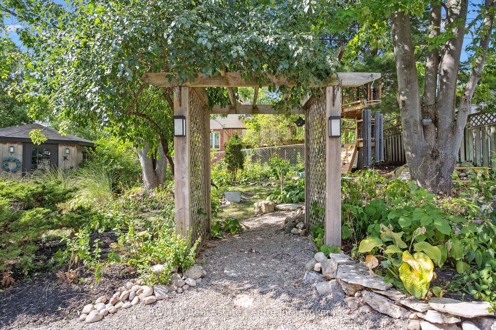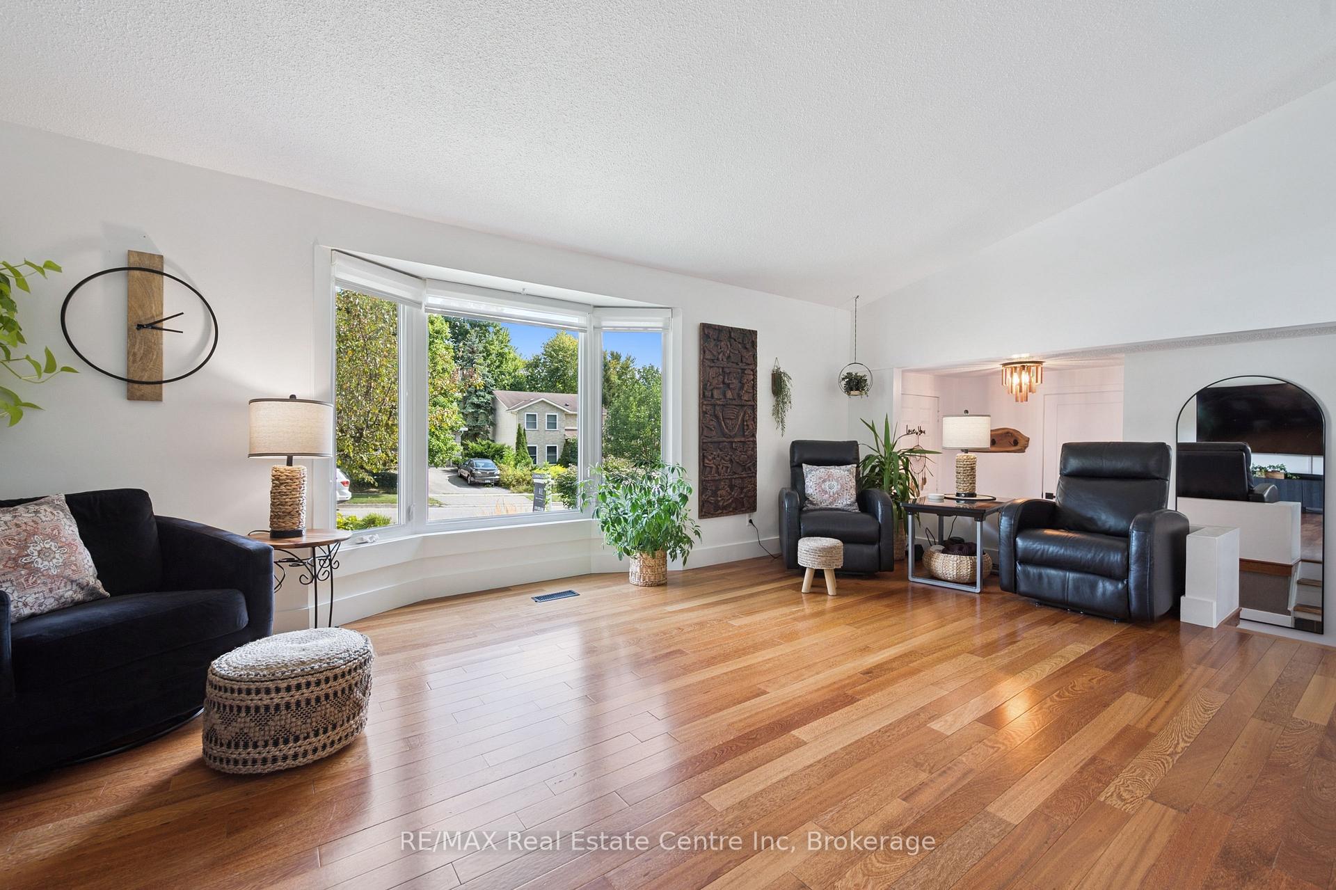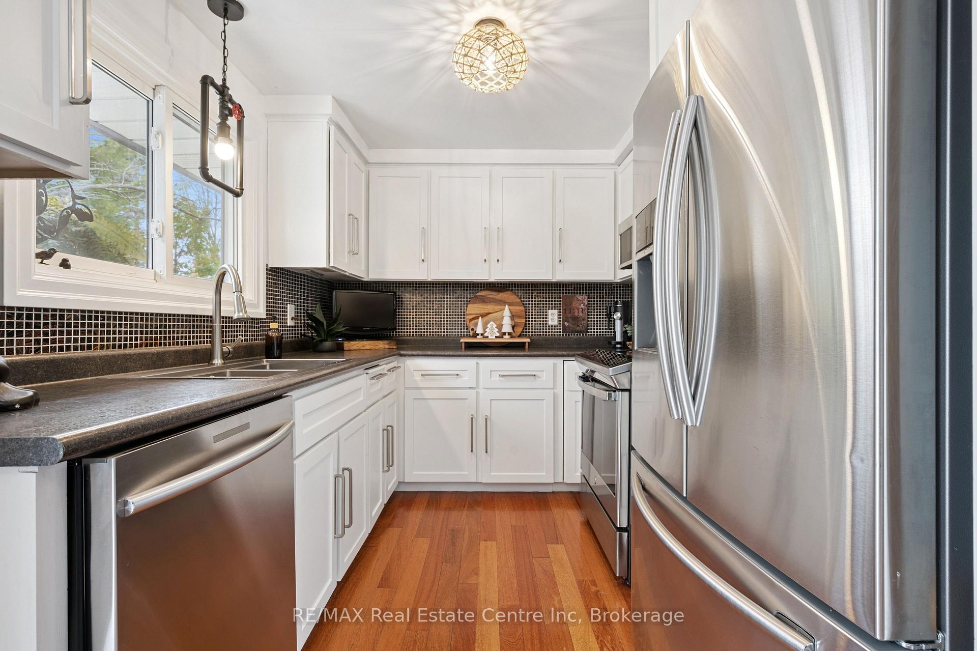 Welcome to 53 Rochelle Drive, a side split that blends thoughtful updates with a backyard retreat, which has been part of the Guelph Horticultural Society home tours and still could be, is a wonderful accolade. The curb appeal is warm and inviting, leading to a foyer with a convenient powder room. The open concept main level will impress with cathedral ceilings and gleaming hardwood floors, an ideal space for hosting and family gatherings. The bright kitchen has been modernized with new cabinetry, hardwood flooring, updated appliances, a live edge counter, and a bar fridge, which overlooks the dining area and with sliders to the back deck. It keeps everyone connected, whether entertaining inside or out. Upstairs, three bedrooms and a 4 piece skylit bath await, including a primary suite with a 3 piece ensuite and custom door. The lower level expands your living space with a large recreation room, craft room, workshop with laundry plumbing, a rough-in for an additional bath, and ample storage.. Outside, the two tier deck opens to a whimsical yard featuring perennial gardens, a vegetable plot, a spacious shed, and a brand new two level treehouse for the kids. All of this comes in a family friendly location just a short walk to Taylor Evans Public School. Everyday amenities, shopping, dining, and major commuter routes are close by, while nearby parks and trails provide endless recreation. From the welcoming curb appeal to the whimsical yard, every detail of 53 Rochelle Drive has been crafted with family living in mind. This is a home ready to be cherished for years to come…