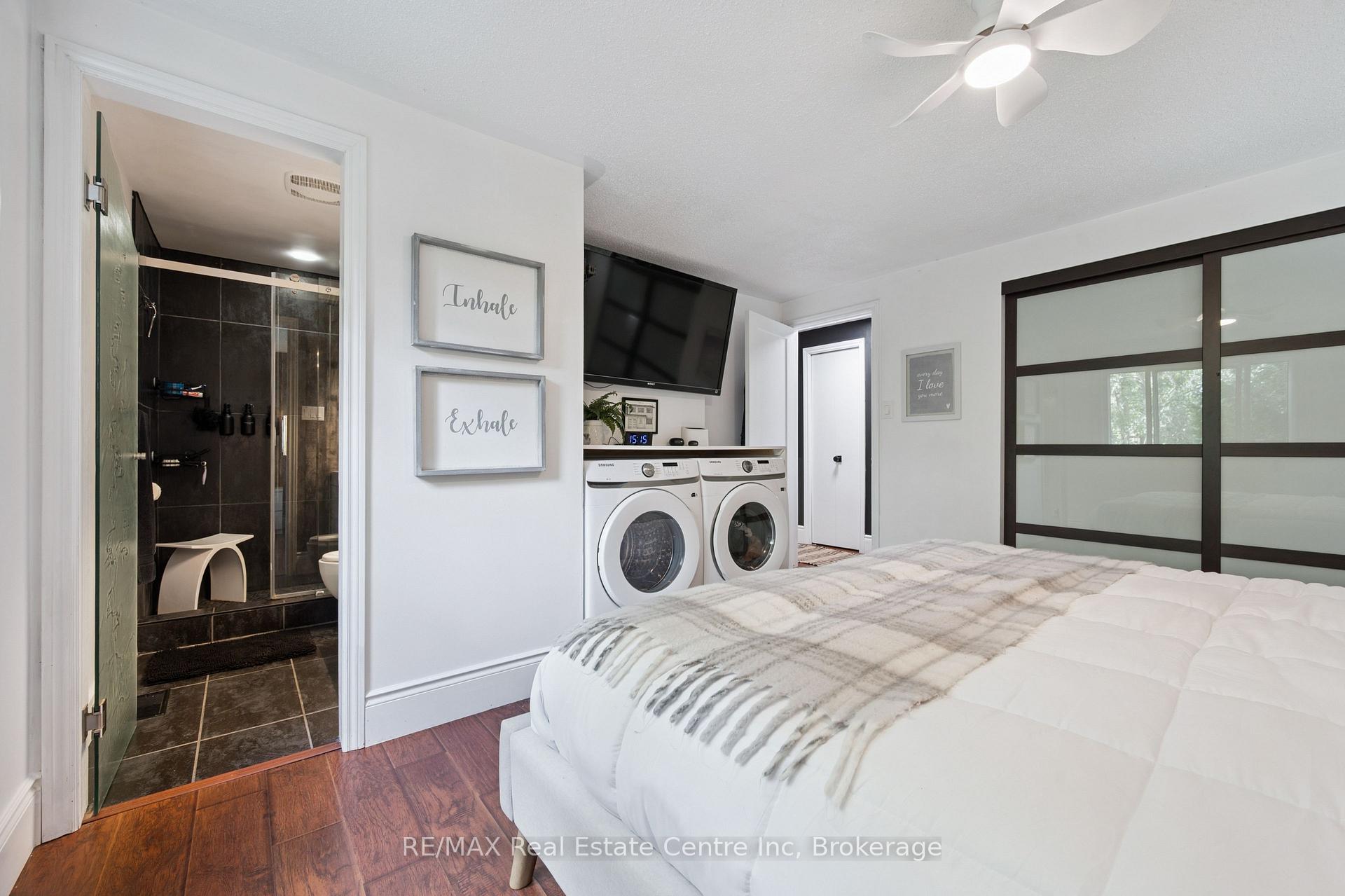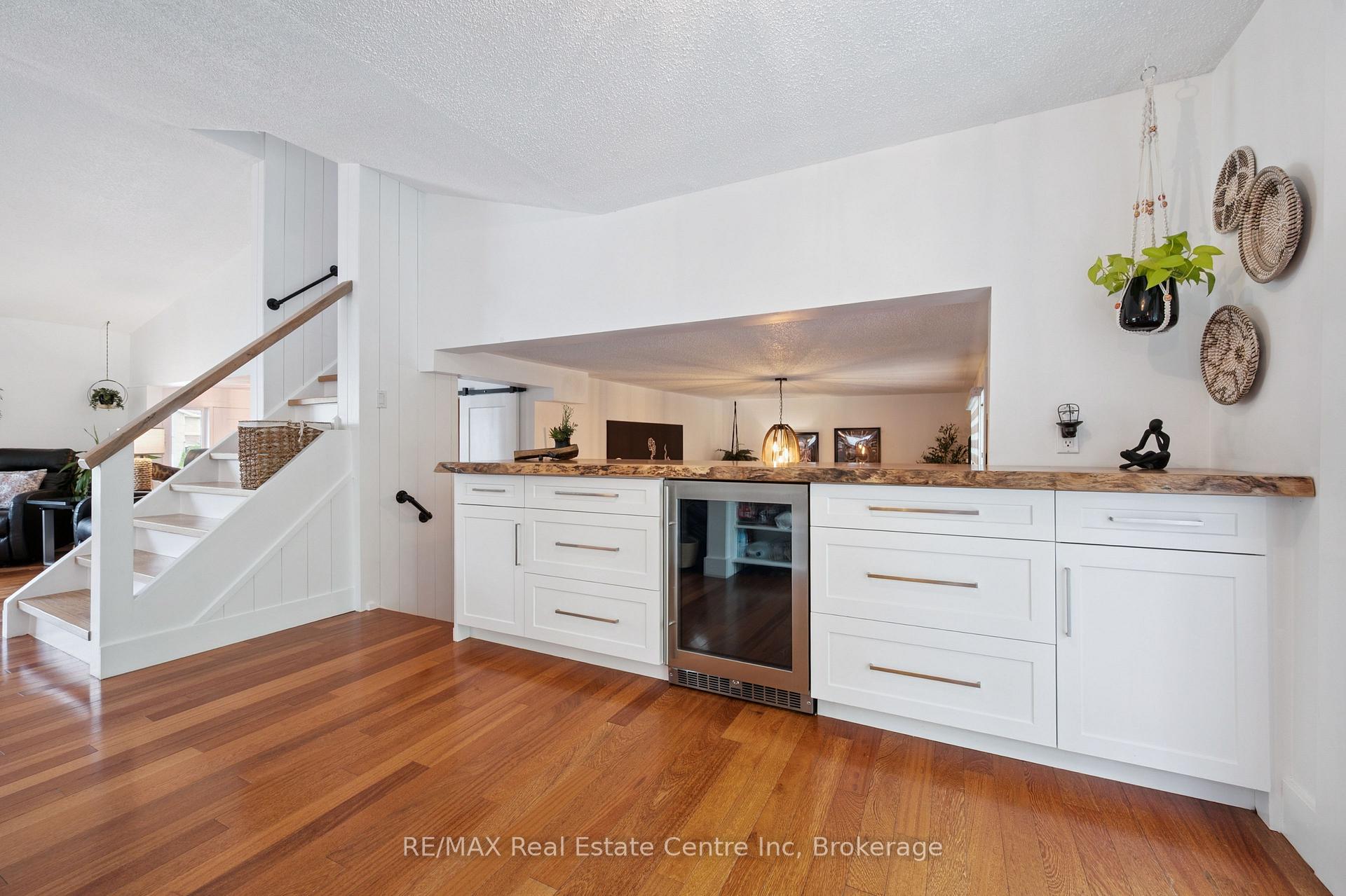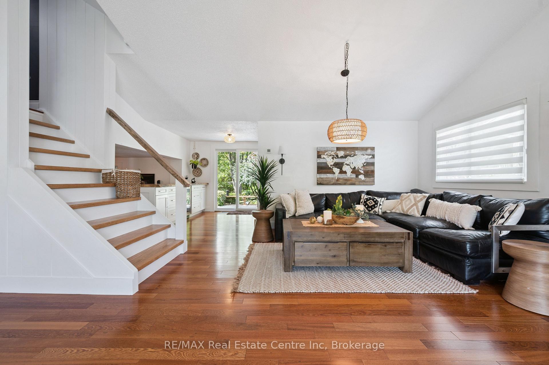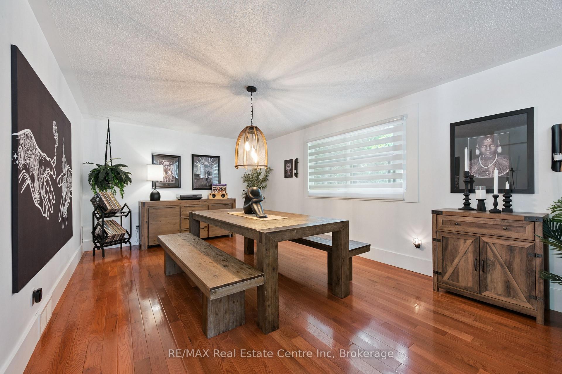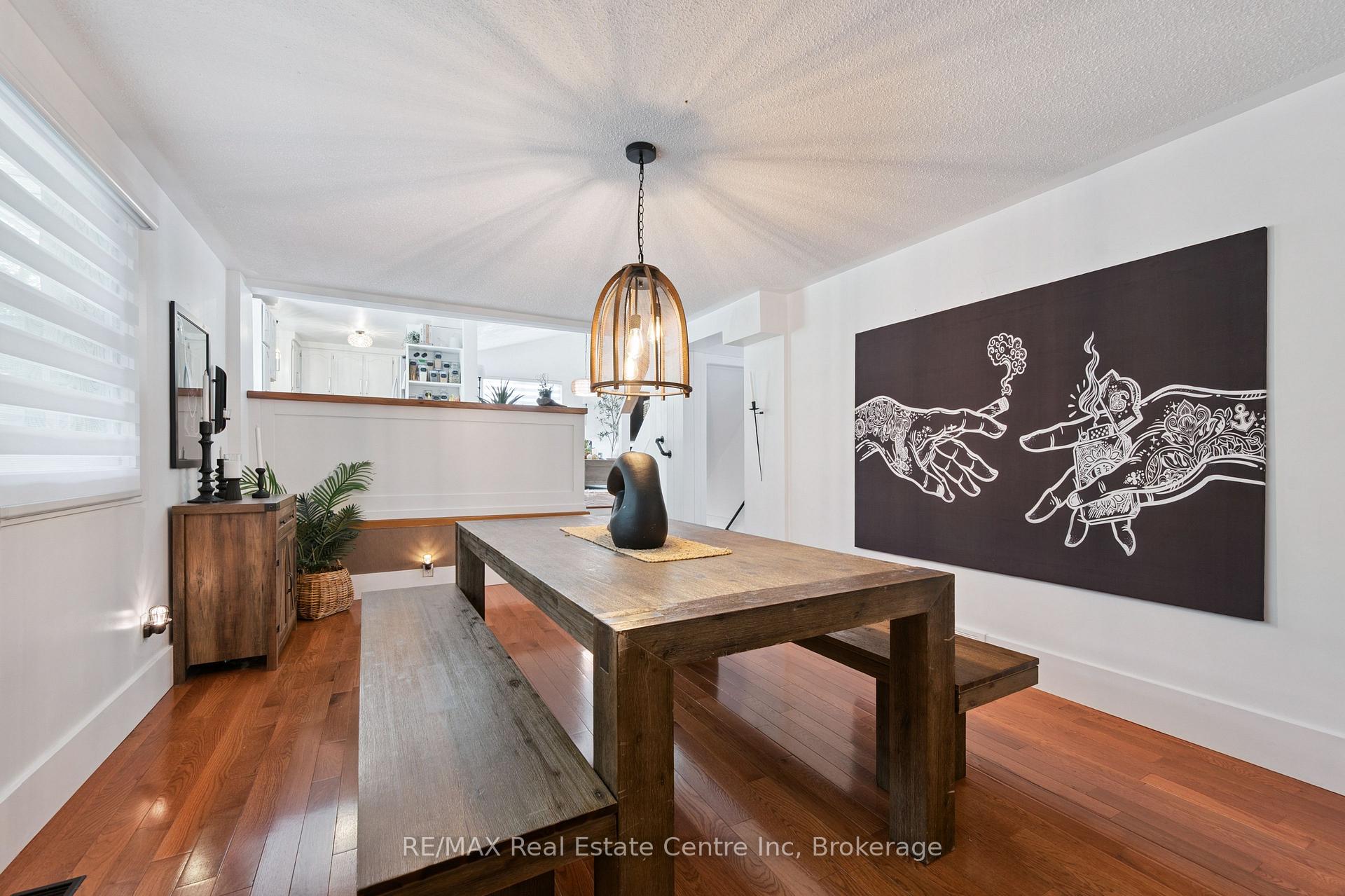 Welcome to 53 Rochelle Drive, a side split that blends thoughtful updates with a backyard retreat, which has been part of the Guelph Horticultural Society home tours and still could be, is a wonderful accolade. The curb appeal is warm and inviting, leading to a foyer with a convenient powder room. The open concept main level will impress with cathedral ceilings and gleaming hardwood floors, an ideal space for hosting and family gatherings. The bright kitchen has been modernized with new cabinetry, hardwood flooring, updated appliances, a live edge counter, and a bar fridge, which overlooks the dining area and with sliders to the back deck. It keeps everyone connected, whether entertaining inside or out. Upstairs, three bedrooms and a 4 piece skylit bath await, including a primary suite with a 3 piece ensuite and custom door. The lower level expands your living space with a large recreation room, craft room, workshop with laundry plumbing, a rough-in for an additional bath, and ample storage.. Outside, the two tier deck opens to a whimsical yard featuring perennial gardens, a vegetable plot, a spacious shed, and a brand new two level treehouse for the kids. All of this comes in a family friendly location just a short walk to Taylor Evans Public School. Everyday amenities, shopping, dining, and major commuter routes are close by, while nearby parks and trails provide endless recreation. From the welcoming curb appeal to the whimsical yard, every detail of 53 Rochelle Drive has been crafted with family living in mind. This is a home ready to be cherished for years to come…