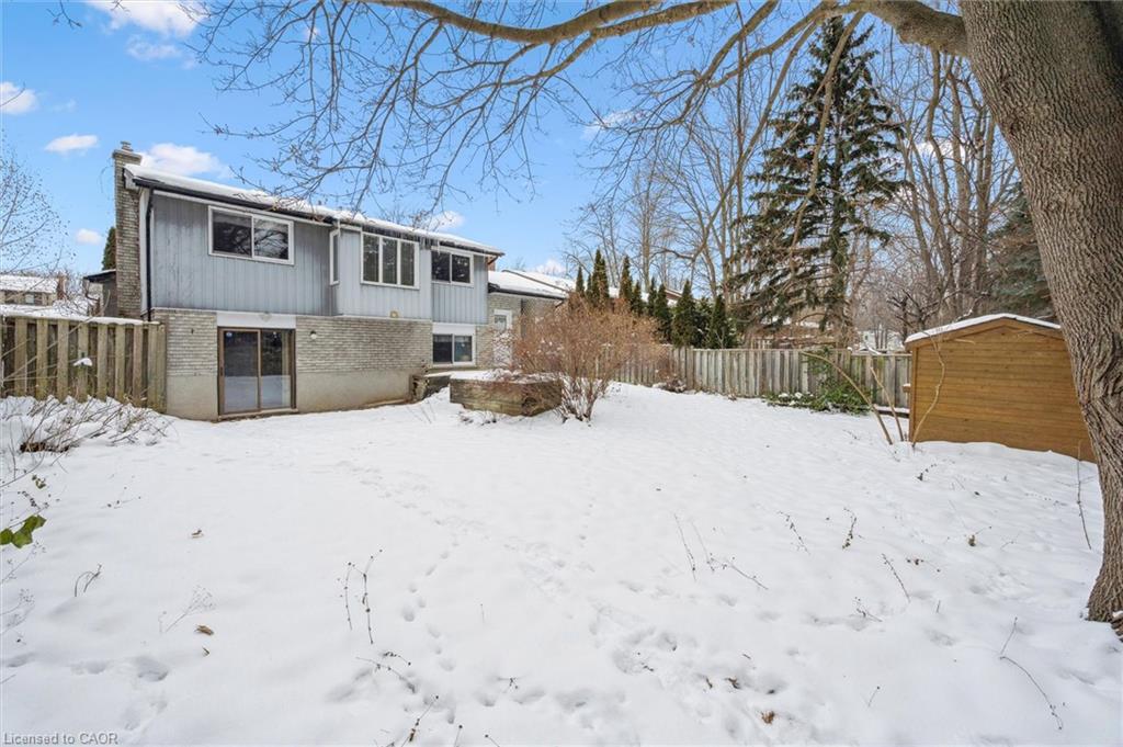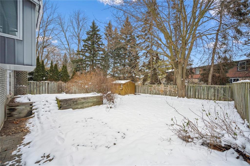 garden shed for extra storage. The mature landscaping and quiet setting make this an ideal space for relaxing, entertaining, or family time. Perfectly situated close to schools, parks, shopping, and the Hanlon Expressway for easy commuting, this home is also just steps to scenic nature trails and a short walk to Margaret Greene Park with its soccer fields, baseball diamonds, tennis courts, playground, cricket field, and off-leash dog area. A popular tobogganing hill behind Westwood Public School is also nearby and well-loved by local families in the winter months. Bright, warm, and thoughtfully maintained, this home is an excellent option for first-time buyers, downsizers, or anyone seeking a move-in-ready home with outstanding potential in one of Guelph’s most family-friendly neighbourhoods. Get in touch with your realtor and book your private viewing today!