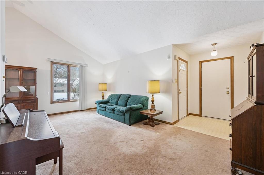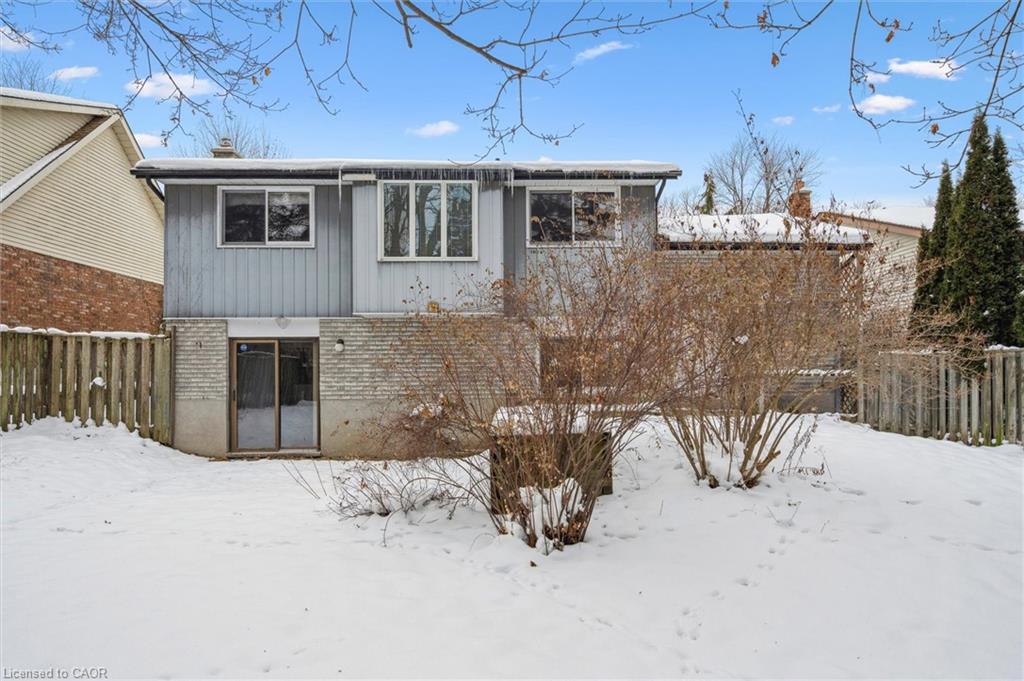 Welcome to 53 Wimbledon Rd – a well-cared-for and mechanically sound backsplit located in the highly desirable Sugarbush neighbourhood of Guelph. This home presents a fantastic opportunity for buyers looking for a solid property with great bones and the chance to add their own cosmetic touches over time, while still being completely move-in ready. Offering a functional and spacious layout with formal dining and sitting area and a large kitchen, the home also features 3 bedrooms (two on the upper level and one on the lower ground level), 2 full bathrooms, and a warm, homey living room highlighted by a cozy gas fireplace and patio doors that lead directly to the backyard. Downstairs features a separate laundry area, a partially finished rec room, and a large crawl space for additional storage. An attached 1-car garage adds everyday convenience, and the double-wide driveway provides ample parking for multiple vehicles. Set on a generous 54′ x 109′ lot, the large backyard is framed by mature trees for added privacy and includes a