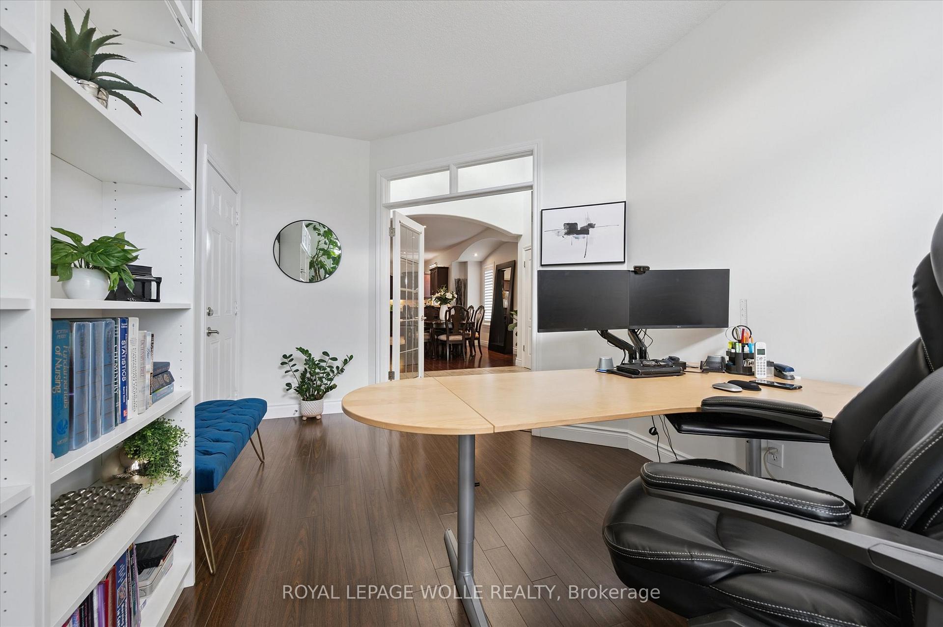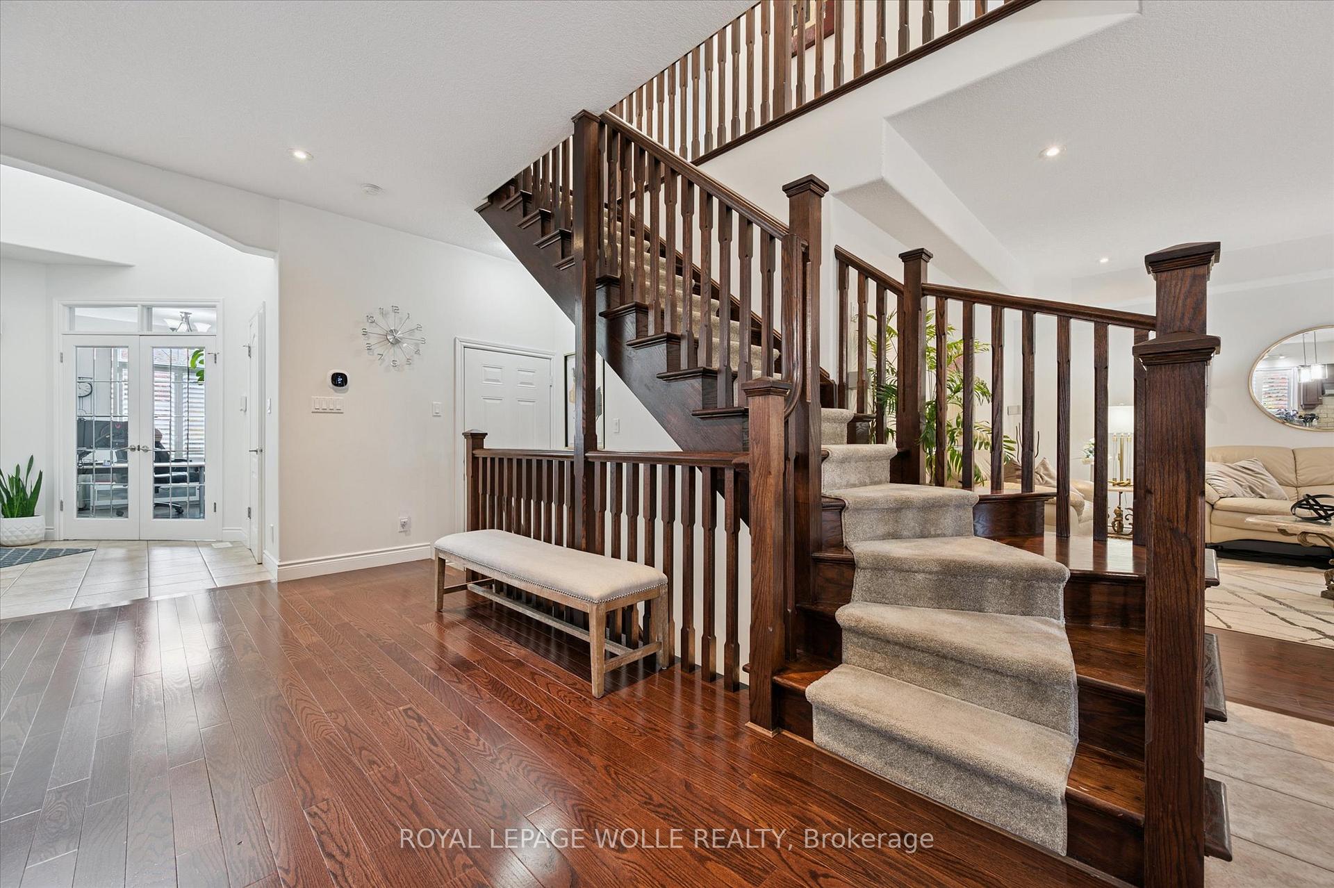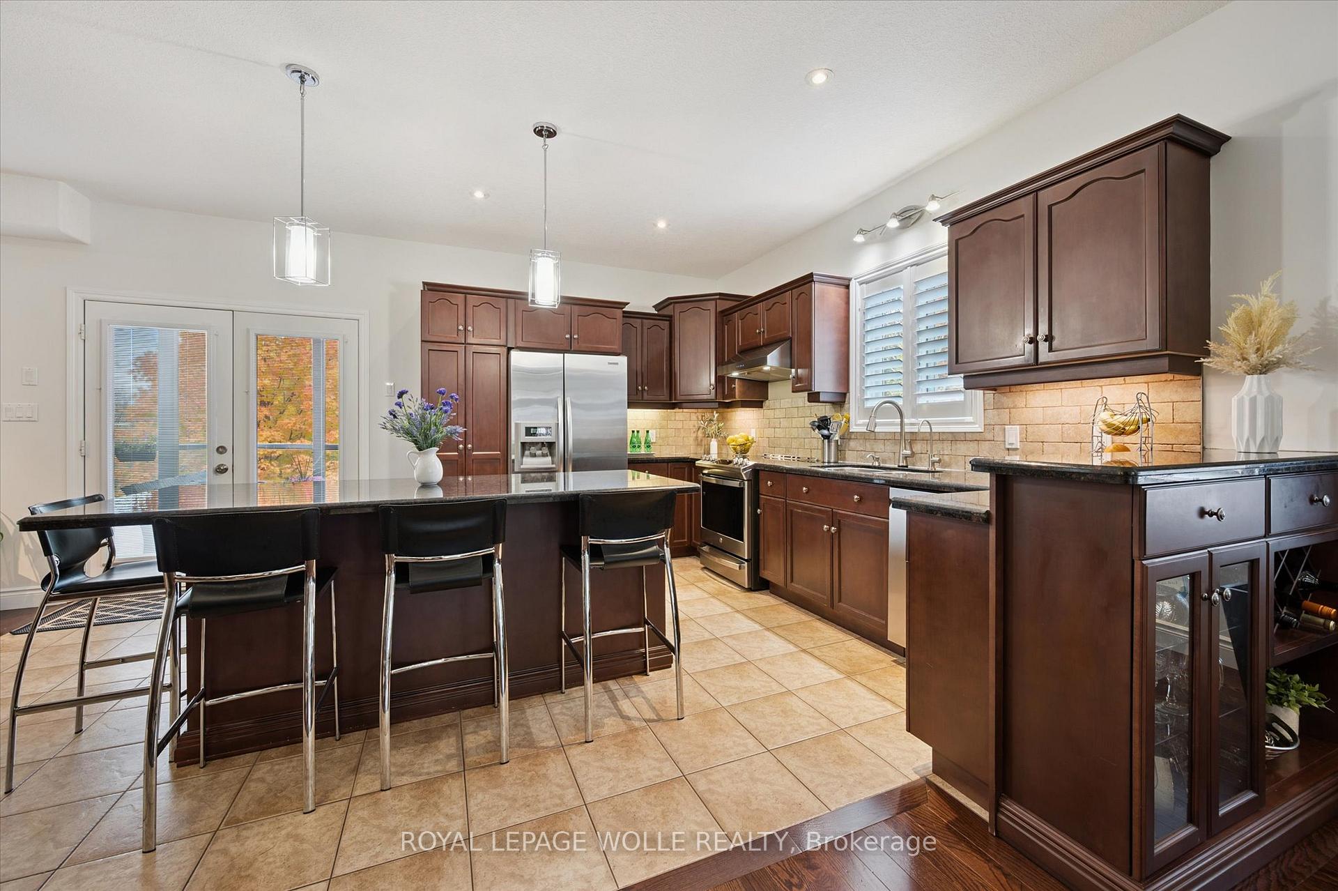 Your dream home awaits! Welcome to 531 WOOD NETTLE WAY, a spectacular CUSTOM-BUILT HOME on a premium PIE-SHAPED LOT (0.17 ACRES) in the highly sought-after neighbourhood of LAURELWOOD. From the moment you arrive, the grand DOUBLE-WIDE PAVER DRIVEWAY and wrap-around walkway create an unforgettable first impression, leading you to the elegant front entrance. Step inside this PROFESSIONALLY DESIGNED, OPEN-CONCEPT MASTERPIECE, where soaring 18-FOOT CEILINGS in the foyer welcome you home. Host unforgettable gatherings in the FORMAL DINING ROOM complete with a BUILT-IN WINE RACK, before moving into the stunning EAT-IN KITCHEN featuring GRANITE COUNTERTOPS and a SPACIOUS ISLAND & STAINLESS APPLIANCES. The OPEN-CONCEPT LIVING ROOM, featuring a cozy GAS FIREPLACE and elegant FRENCH DOORS, flows seamlessly out to the COVERED PRIVATE DECK-a serene retreat crafted with CUSTOM COMPOSITE DECKING and a GLASS RAILING SYSTEM. Need a workspace? Discover the luxurious MAIN-FLOOR OFFICE, filled with natural sunlight and its own private entrance. This level also boasts 9-FOOT CEILINGS, POT LIGHTING, and a convenient TWO-PIECE POWDER ROOM. The grandeur continues upstairs, where the PRIMARY BEDROOM offers a HUGE WALK-IN CLOSET and a luxurious 5PC ENSUITE with JACUZZI TUB and TILED SHOWER. Two additional bedrooms both feature WALK-IN CLOSETS, one with a CHEATER ENSUITE, plus a LAUNDRY ROOM with sink, shelving, and cabinetry. The LOWER LEVEL reveals incredible potential with a LARGE REC & GAMES ROOM with walkout to a STONE PATIO, plus a 3PC BATH WITH HEATED FLOORING. The massive 30X20 BONUS ROOM is an untouched canvas for your dream theatre, hobby space, or rink. The DOUBLE GARAGE includes two inside entries and a FULLY EQUIPPED WORKSHOP-a handyman or handywoman’s dream. Surrounded by PARKS, TRAILS, AND TOP-RATED SCHOOLS, this one-of-a-kind home is minutes from COSTCO, THE BOARDWALK, YMCA PROGRAMS, and LAUREL CREEK CONSERVATION AREA.