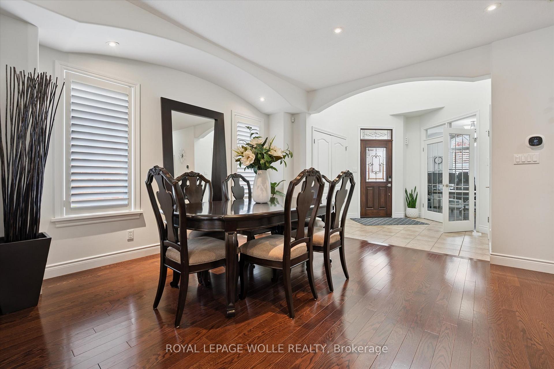 Your dream home awaits! Welcome to 531 WOOD NETTLE WAY, a spectacular CUSTOM-BUILT HOME on a premium PIE-SHAPED LOT (0.17ACRES) in the highly sought-after neighbourhood of LAURELWOOD. From the moment you arrive, the grand DOUBLE-WIDE PAVER DRIVEWAYand wrap-around walkway create an unforgettable first impression, leading you to the elegant front entrance. Step inside this PROFESSIONALLYDESIGNED, OPEN-CONCEPT MASTERPIECE, where soaring 18-FOOT CEILINGS in the foyer welcome you home. Host unforgettable gatherings inthe FORMAL DINING ROOM complete with a BUILT-IN WINE RACK, before moving into the stunning EAT-IN KITCHEN featuring GRANITECOUNTERTOPS and a SPACIOUS ISLAND & STAINLESS APPLIANCES. The OPEN-CONCEPT LIVING ROOM, featuring a cozy GAS FIREPLACE andelegant FRENCH DOORS, flows seamlessly out to the COVERED PRIVATE DECK-a serene retreat crafted with CUSTOM COMPOSITE DECKING anda GLASS RAILING SYSTEM. Need a workspace? Discover the luxurious MAIN-FLOOR OFFICE, filled with natural sunlight and its own privateentrance. This level also boasts 9-FOOT CEILINGS, POT LIGHTING, and a convenient TWO-PIECE POWDER ROOM. The grandeur continuesupstairs, where the PRIMARY BEDROOM offers a HUGE WALK-IN CLOSET and a luxurious 5PC ENSUITE with JACUZZI TUB and TILED SHOWER.Two additional bedrooms both feature WALK-IN CLOSETS, one with a CHEATER ENSUITE, plus a LAUNDRY ROOM with sink, shelving, andcabinetry. The LOWER LEVEL reveals incredible potential with a LARGE REC & GAMES ROOM with walkout to a STONE PATIO, plus a 3PC BATHWITH HEATED FLOORING. The massive 30X20 BONUS ROOM is an untouched canvas for your dream theatre, hobby space, or rink. The DOUBLEGARAGE includes two inside entries and a FULLY EQUIPPED WORKSHOP-a handyman or handywoman’s dream. Surrounded by PARKS, TRAILS,AND TOP-RATED SCHOOLS, this one-of-a-kind home is minutes from COSTCO, THE BOARDWALK, YMCA PROGRAMS, and LAUREL CREEKCONSERVATION AREA.