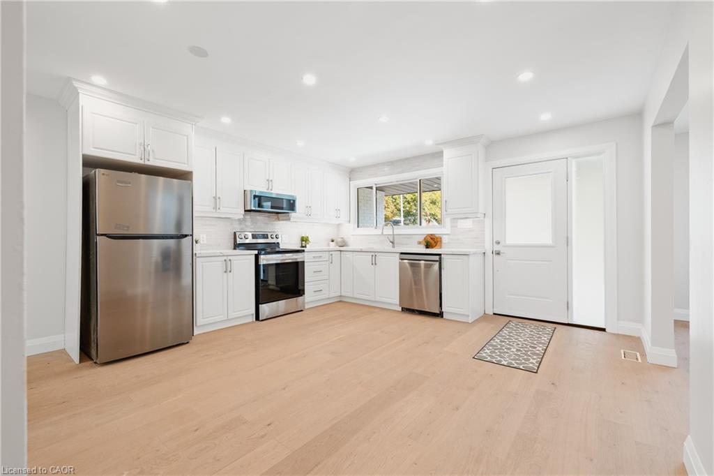 Welcome to 537 Glen Manor Blvd, a beautifully renovated home in one of Waterloo’s most desirable neighbourhoods. This stunning property has been completely transformed from top to bottom, offering modern finishes, thoughtful design, and an abundance of living space. With 5 bedrooms, 2 full bathrooms, and 2 kitchens, it’s an exceptional opportunity for families, multi-generational living, or investors. Step inside to discover a home that has been fully gutted and rebuilt. Major renovations include all new flooring, insulation, drywall, and a brand-new kitchen on the main floor with sleek modern finishes. The main level also features 3 spacious bedrooms, a newly added full bathroom, and a standout sunroom that fills the home with natural light while providing a perfect space to relax year-round. The finished basement is a true highlight, complete with a separate side entrance, a second kitchen, 2 additional bedrooms, a large living area, its own laundry room, and a full bathroom. This level doubles the home’s living space and offers incredible flexibility for extended family, rental potential, or a private suite setup. Outside, the property sits on a generous 57’ x 115’ lot (0.15 acres) with an amazing private backyard that has no rear neighbours, ensuring a peaceful setting for outdoor enjoyment. The attached garage, new garage doors, additional driveway parking, and recently installed AC add even more convenience.