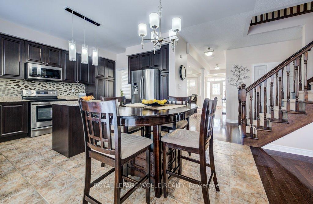 Welcome to 538 Thomas Slee Drive, a bright and spacious two storey detached home in the highly sought after Doon South neighbourhood. This property offers wonderful curb appeal with its inviting covered porch and two car garage. Step inside to find a well designed main floor featuring a comfortable living room, a dedicated dining room, a family room with a cozy gas fireplace, and a breakfast area filled with natural light. The kitchen boasts extensive cabinetry and an island, and is open to both the family room and breakfast area. A walkout leads to a private backyard complete with a deck, patio, gazebo, fenced yard, and storage shed. A main floor laundry with garage access and a two piece bathroom add everyday convenience. Upstairs you will find four spacious bedrooms, including an impressive primary suite with a walk in closet, soaker tub, oversized glass shower with a built in bench, and dual vanities. An additional ensuite in a secondary bedroom as well as another four piece main bath provide comfort for family and guests. The finished lower level adds even more living space with a generous recreation room, a second fireplace, a projector and screen for movie nights, a bar area, large storage, and a two piece bathroom. Ideally located in one of Kitchener’s most desirable neighbourhoods, this home is close to golf courses, top rated schools, parks, walking trails, and is just minutes from Highway 401 and Conestoga College. A fantastic location for commuters and families alike.
