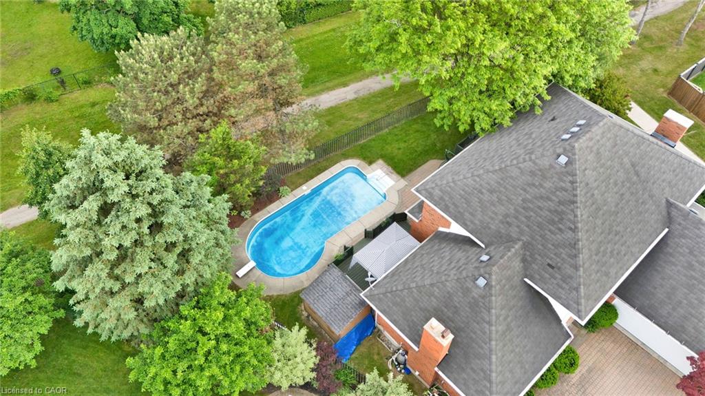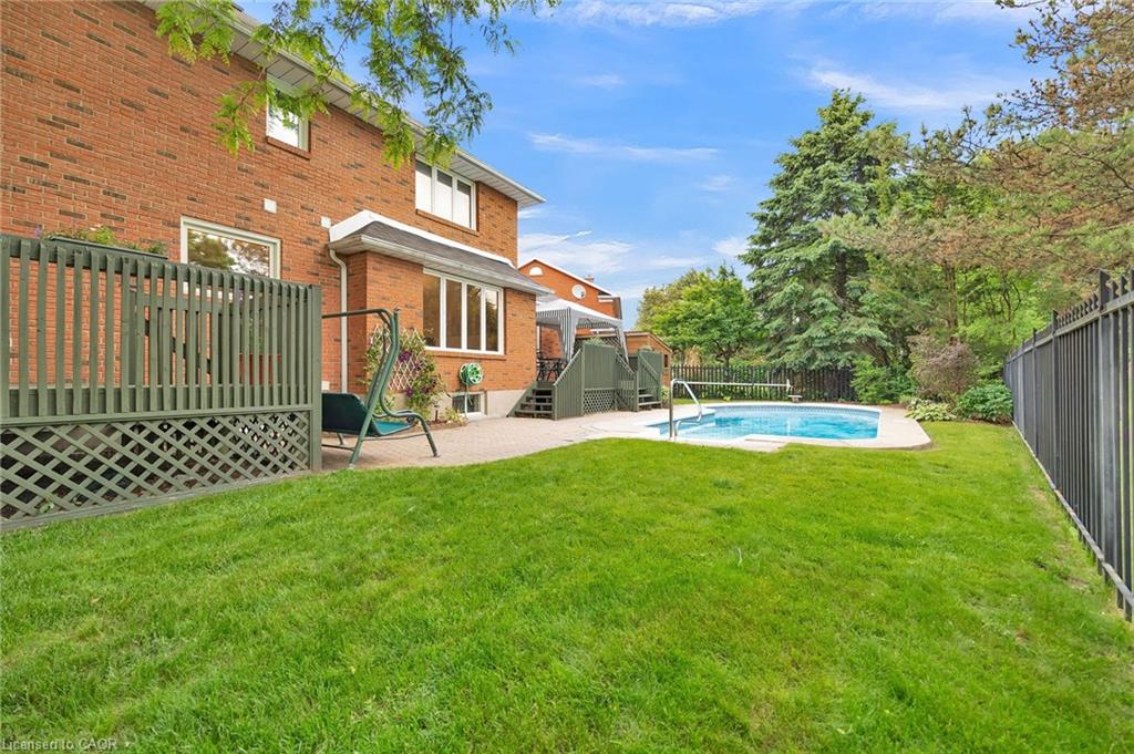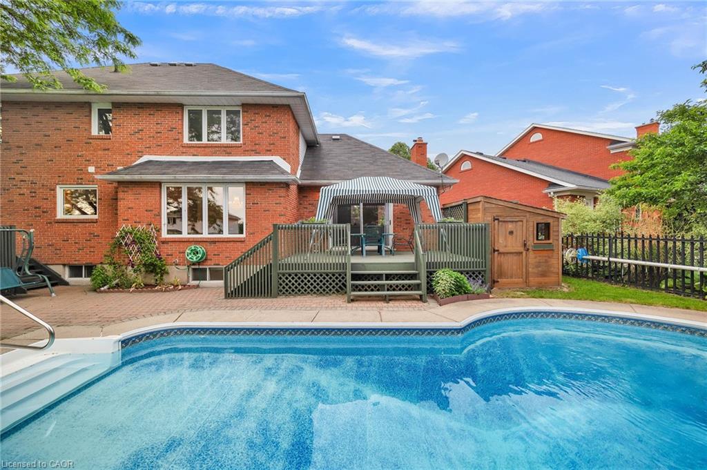 Welcome to 54 Burnt Ember Drive! This large, well-maintained four-bedroom home offers over 2800+ sq ft of finished living space, including a finished basement, an in-ground pool, and direct access to nearby walking trails.The main floor offers an ideal layout for both day-to-day living and entertaining. The bright, spacious living room features large patio doors that open directly onto the deck and pool area, along with a gas fireplace to anchor the space. The kitchen includes a central island, plenty of storage, and flows easily into the dining room. A front sitting room adds flexibility for a home office or playroom. Main floor laundry and a two-piece bathroom add convenience right where you need it. Upstairs, the large primary suite is a true retreat! Complete with a recently added skylight, a spacious walk-in closet, and a large ensuite bathroom featuring a jacuzzi tub, separate shower, and double vanity. Three additional bedrooms and a full 3-piece bathroom offer ample space for family or guests, with large closets and natural light throughout. The finished basement adds even more functional living space with a large rec room, a full bar, a private office, and exceptional storage options! Outside, the fully fenced backyard is designed for relaxation and play. The large deck overlooks the in-ground pool, and mature trees add privacy. At the back of the property, you’ll find direct access to walking trails – a unique bonus that connects you to nature right from your backyard.