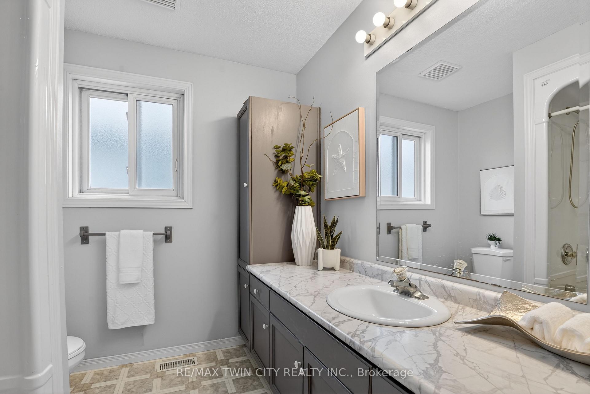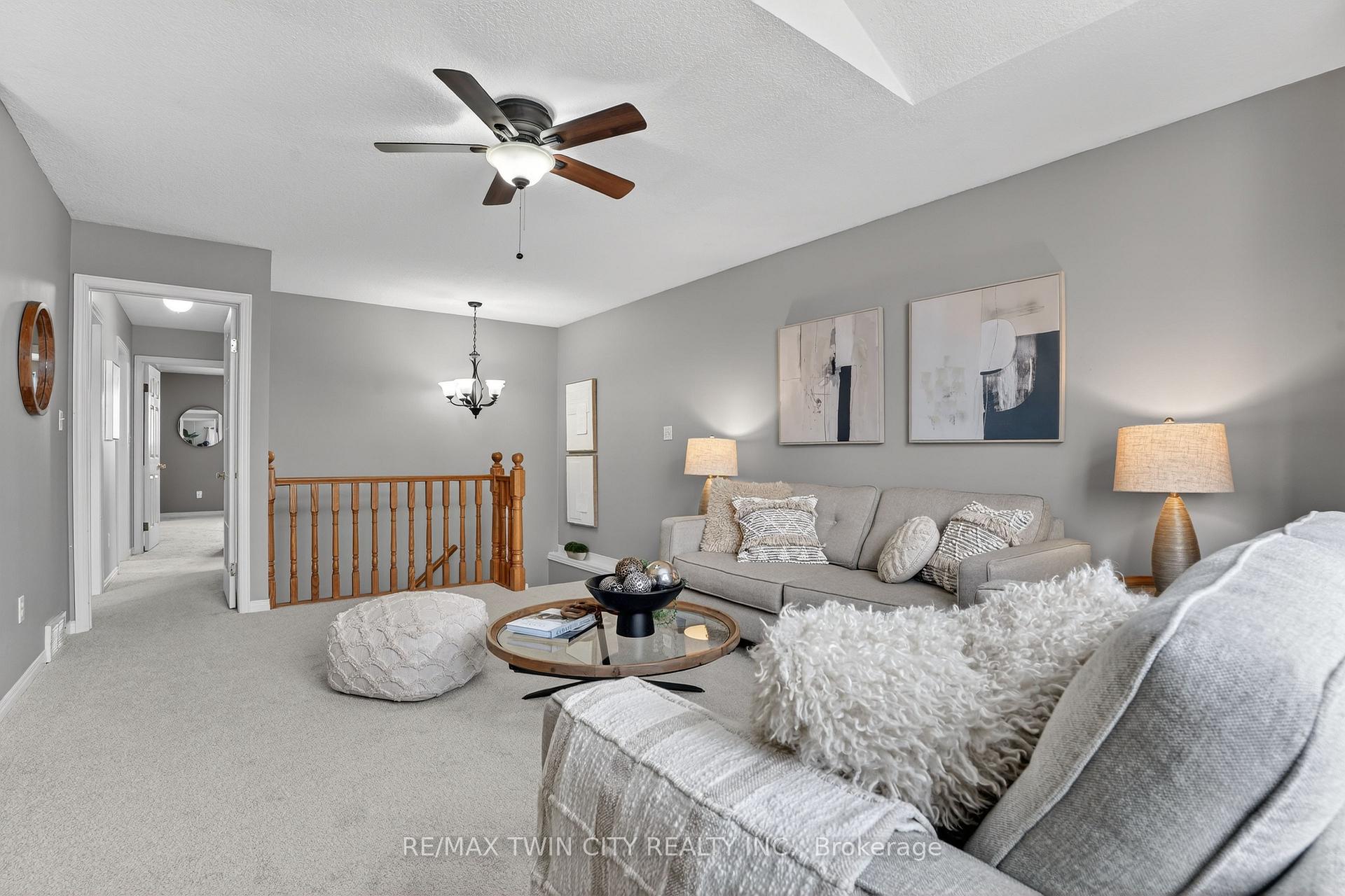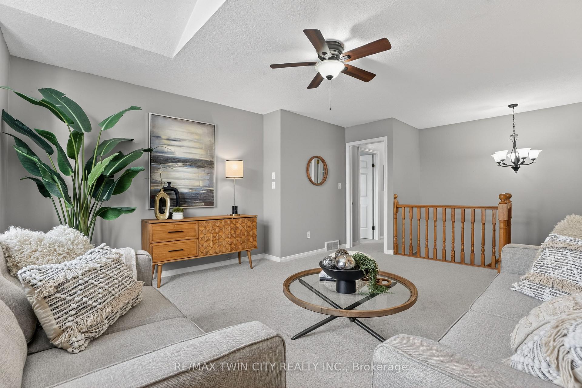A much desired Grand River North location! Fantastic family home nestled on a quiet court with great neighbours. With over 2,130 sq.ft. of finished living area offers enough room for you now and into the future. Finished on all 3 levels offering a spacious layout, bright Living/Dining room, white Kitchen with abundance of cabinets, counter space, pantry, gas stove & opens to a spacious Dinette with sliders to a large 2 tiered deck and fenced yard for outdoor relaxation. Convenient main floor Laundry & 2 piece Powder room. Upstairs features a fabulous Family room, 3 good sized Bedrooms, 2 Bathrooms including large Primary Suite with his & hers closets and 4 piece Ensuite. The lower level is finished and offers a great Recroom with wet bar, lots of storage, cold cellar & 2 piece Bathroom rough-in. Updates include furnace (2015), AC (2024), dishwasher (2023), range hood (2025), new carpet upstairs & basement (2025), roof (2012). 2 car garage & double driveway. Short walk to Westchester Park, Bluespring Woods, Walter Bean Trail and the Grand River. Close to Chicopee Ski & Summer Resort, schools, shopping & transit. Quick access to Guelph, Waterloo, Cambridge, Highway 7, 8 & 401. Perfect neighbourhood for young families & commuters.