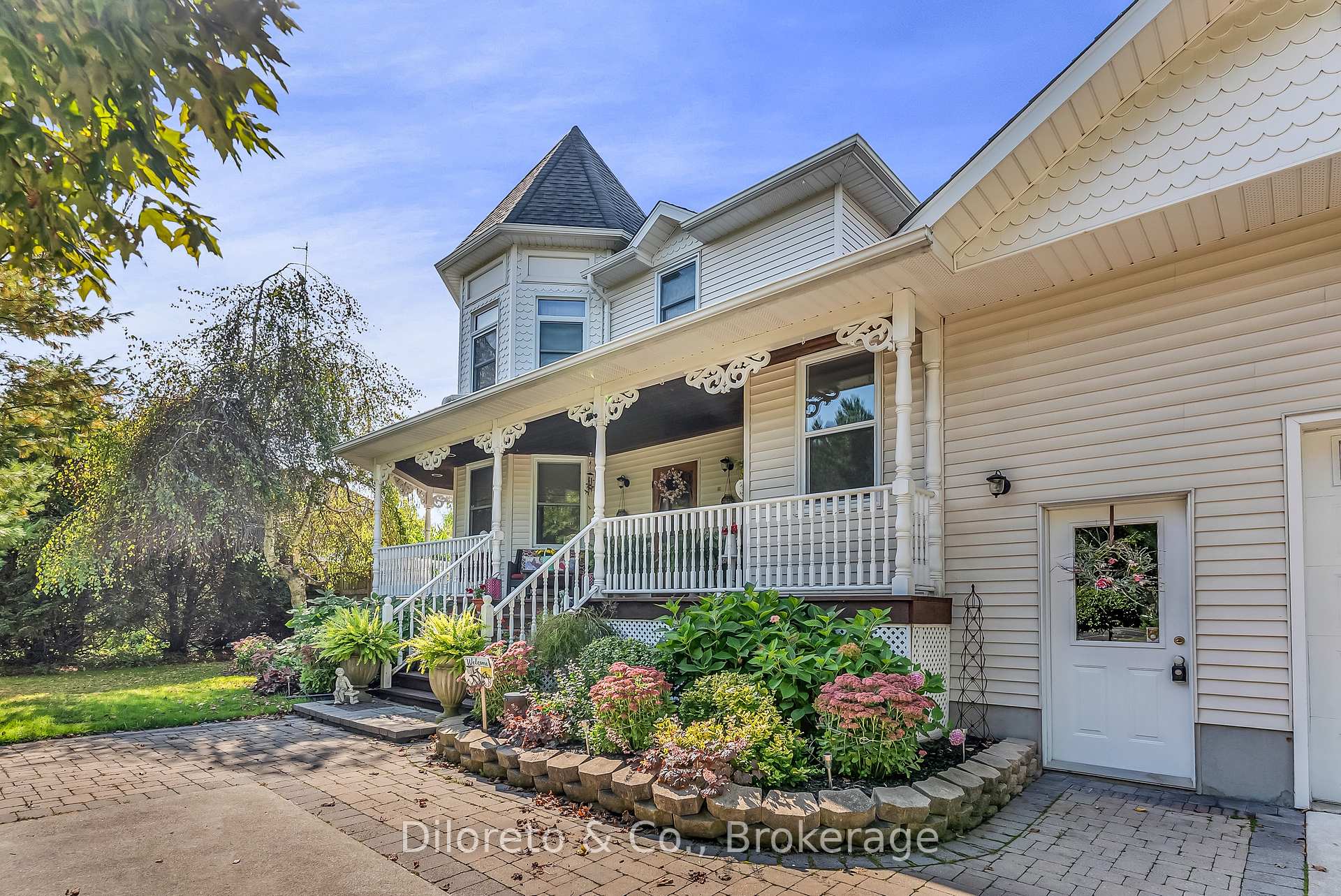 Welcome to 5408 Wellington Rd 29, a one-of-a-kind property that offers a rare blend of character, functionality, and rural charm just minutes from Guelph. This unique home is unlike anything else on the market, featuring sun-drenched interiors and incredible Victorian-style architectural details, a wrap-around porch, spacious living areas, and a finished basement with in-law suite potential. Nestled on a generous lot providing the perfect balance of privacy and convenience, with cement driveway w. parking for 12. The spacious 1000+ sq ft main floor is bright and airy throughout, offering a den or quiet sitting room, a gorgeous custom kitchen with stainless steel appliances, granite countertops, plenty of storage space, a raised breakfast bar & country-style kitchen door that opens up to the gorgeous wrap around porch, a feature that is hard to come by. The attached living room overlooks stunning greenery & walks out to the backyard deck, surrounded by mature trees & landscaped grounds. A laundry room, 2pc bathroom, hardwood floors & garage access complete the main floor. Travel upstairs & find 3 generous bedrooms, including a refined primary suite in the upper turret surrounded by windows & a private ensuite with bidet. The well-appointed 4 pc main bathroom w. jacuzzi tub serves the additional bedrooms, enhancing comfort for family & guests alike. The finished basement with rec room, family room, one bedroom & 3pc bathroom offers rental potential, this versatile space can be used as an in-law suite or secondary living space with separate entrance through the garage. Another standout feature is the detached heated 25 x 35 workshop, ideal for hobbyists, entrepreneurs, or anyone looking for a creative space. Perfectly situated in the Guelph/Eramosa area, this exceptional property offers the rare luxury of countryside tranquility with city conveniences just minutes away. Enjoy easy access to Guelphs east end, conservation areas, walking trails, & multiple golf courses.