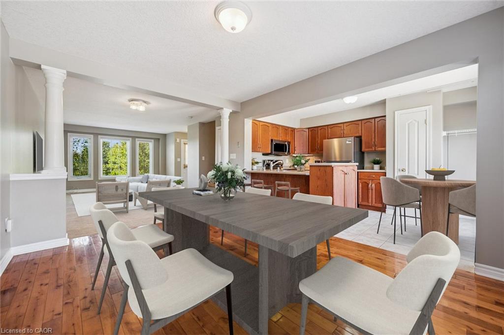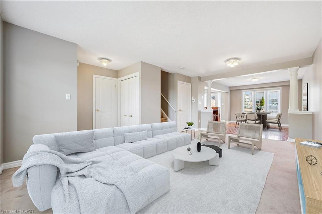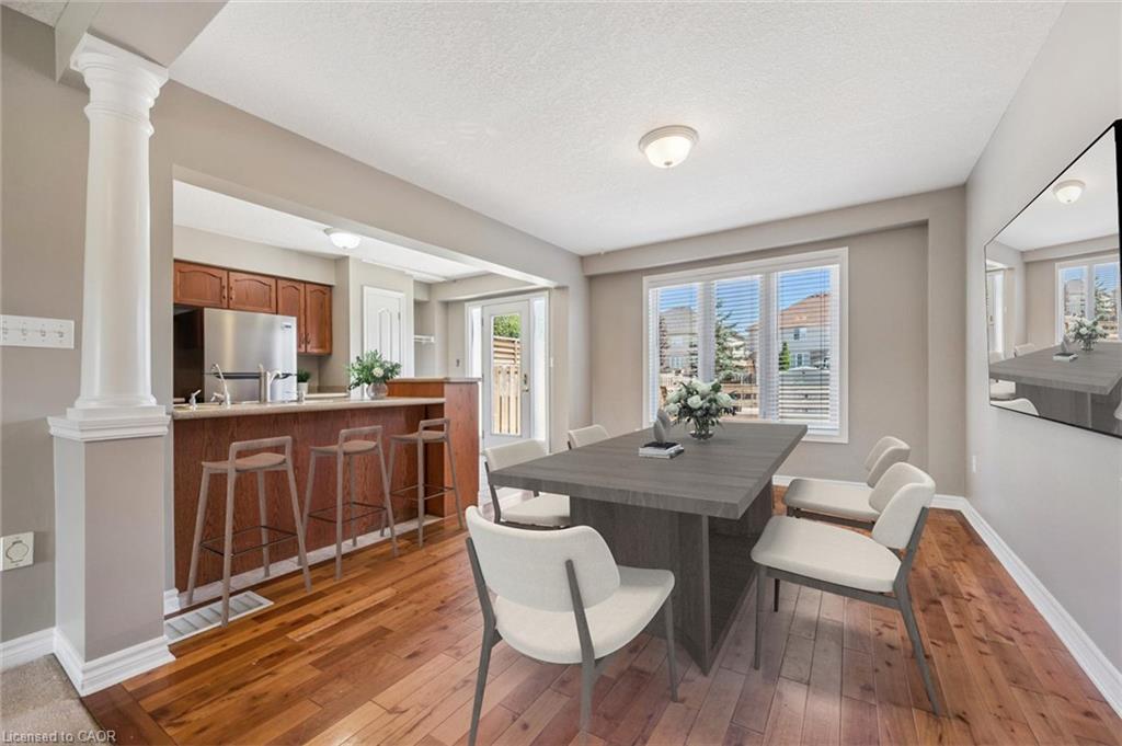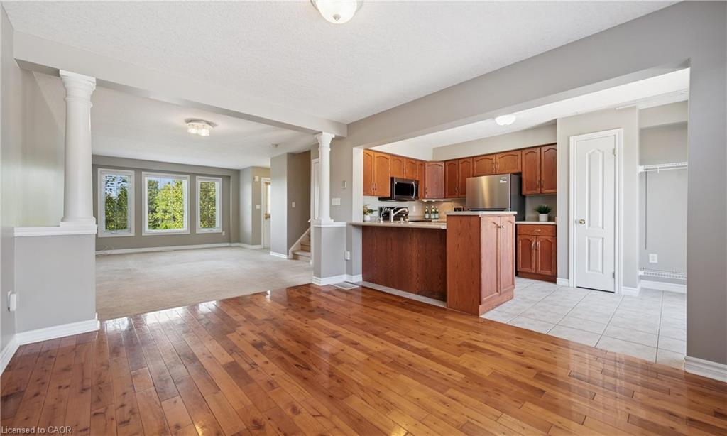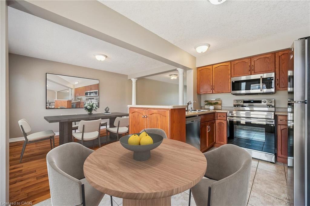 Discover this stylish 3-bedroom, 3-bathroom freehold townhome in Guelph’s desirable North End, offering over 2,000 sq. ft. of modern living space with no condo fees! The open-concept main floor features a bright living room, spacious dining area, and a modern eat-in kitchen with brand-new stainless steel appliances and a breakfast bar. A convenient 2-piece powder room completes the level. Upstairs, enjoy a primary suite with double closets and a 4-piece ensuite, two additional bedrooms, a 4-piece main bathroom, and upper-level laundry. The fully finished basement includes ample storage, space for a potential 4th bedroom, and a bathroom rough-in.