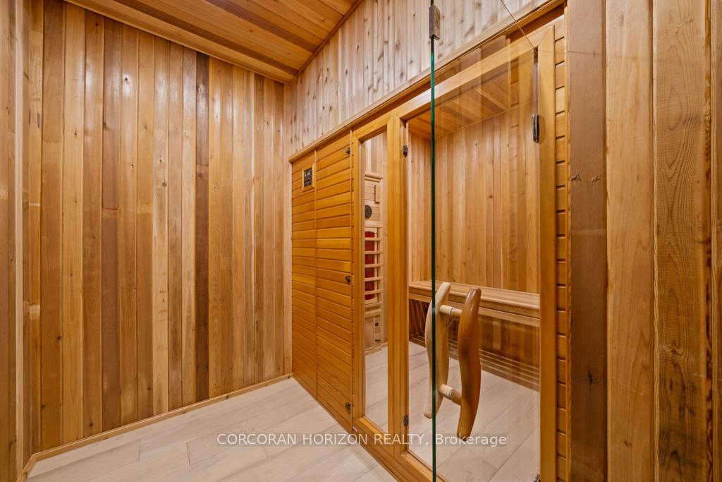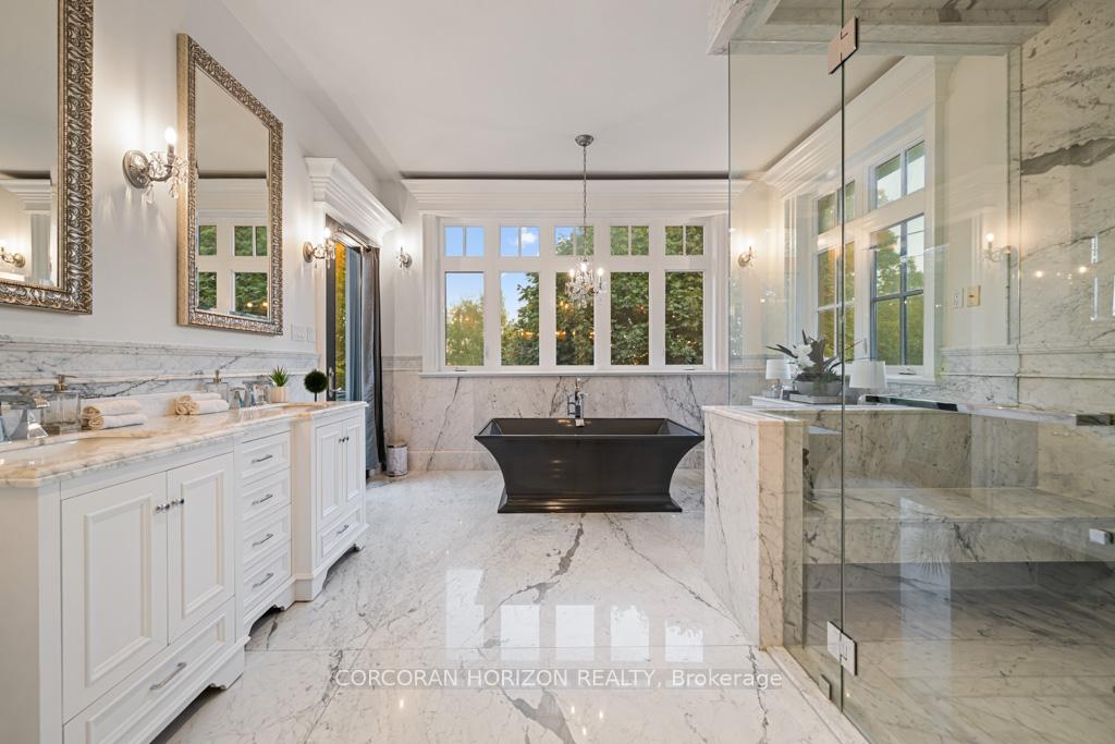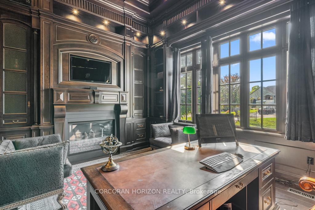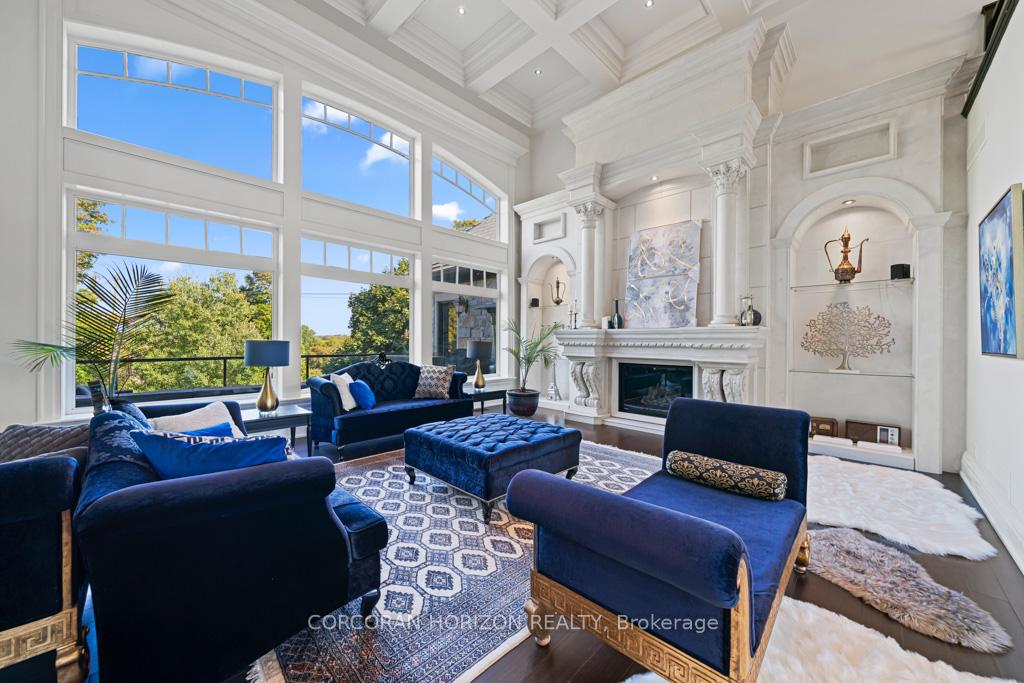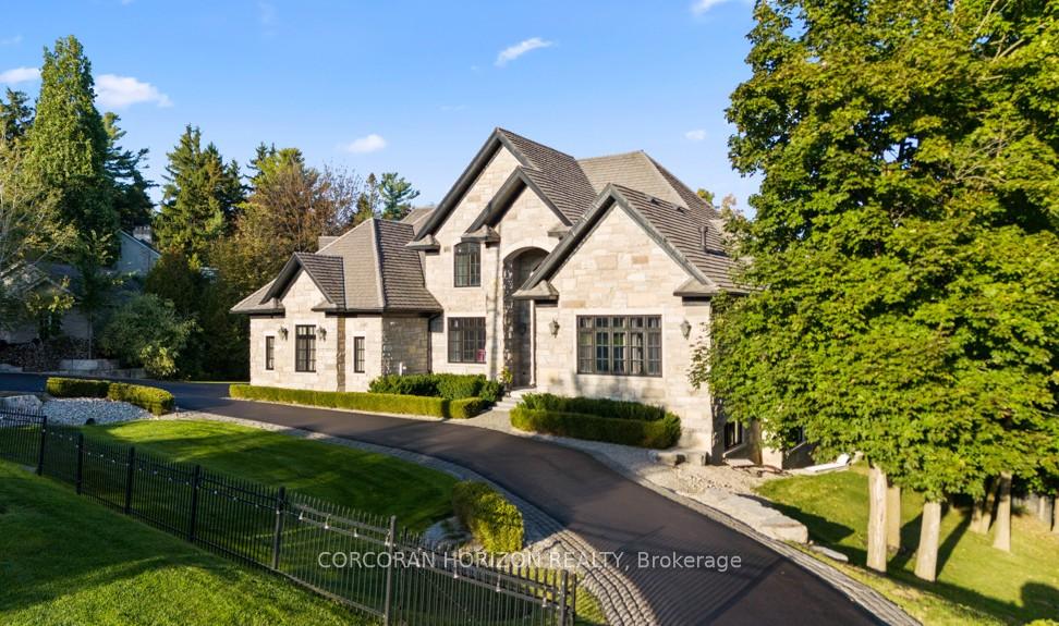 A Masterpiece of Craftsmanship and Permanence! Nestled beside a protected natural landscape with scenic year-round views of the Grand River, 546 Woolwich Place offers artistry, luxury, and privacy. With direct private access to the Grand River Trail from its gated yard, this home stands as a true legacy estate. The exterior features hand-chiseled Indiana limestone, an Enviroshake hurricane-rated roof, and a custom 9′ African Mahogany front door. Professionally designed lighting highlights the architecture, while mature landscaping boxwoods, maples, and walnuts thrives under a six-zone irrigation system. Two driveways add rare functionality. Inside, every detail reflects craftsmanship. Solid wood architraves, 9.25″ baseboards, and solid wood doors with platinum hardware set the tone. Exotic Red Laurel and Cocobolo hardwood floors flow throughout, anchored by a grand maple staircase with wrought iron railings. Radiant floor heating provides year-round comfort. Elegant plaster crown mouldings, Swarovski Schonbek chandeliers, and natural gas fireplaces enhance the ambiance. The primary suite is a spa-like retreat with book-matched Carrara marble, steam shower with body jets, two-person tub with Rubinet Swarovski crystal fixtures, and a linear fireplace set in Turkish stone. The powder room shines with platinum-infused Italian tiles and Swarovski sconces. A custom cherrywood study, crafted by artisans who built for notable successful Canadians, features 13′ coffered ceilings and a Texas Longhorn leather-inset desk. All cabinets throughout the kitchen, laundry, and primary bedroom are Downsview cabinets. Wellness amenities include a Western Red Cedar sauna with cold plunge. A heated 900 sq. ft. triple-car garage with insulated cedar doors, smart home monitoring, and a Viessmann boiler system complete this extraordinary home, where timeless craftsmanship meets modern luxury amid unobstructed river and waterfront views.