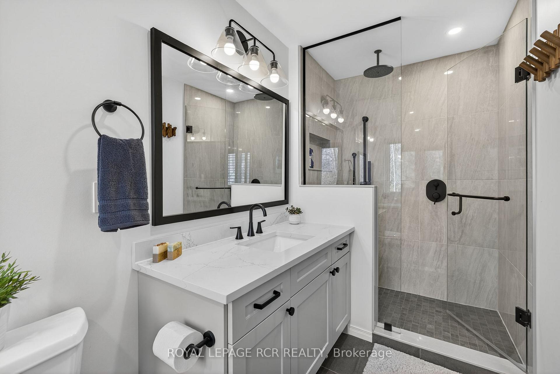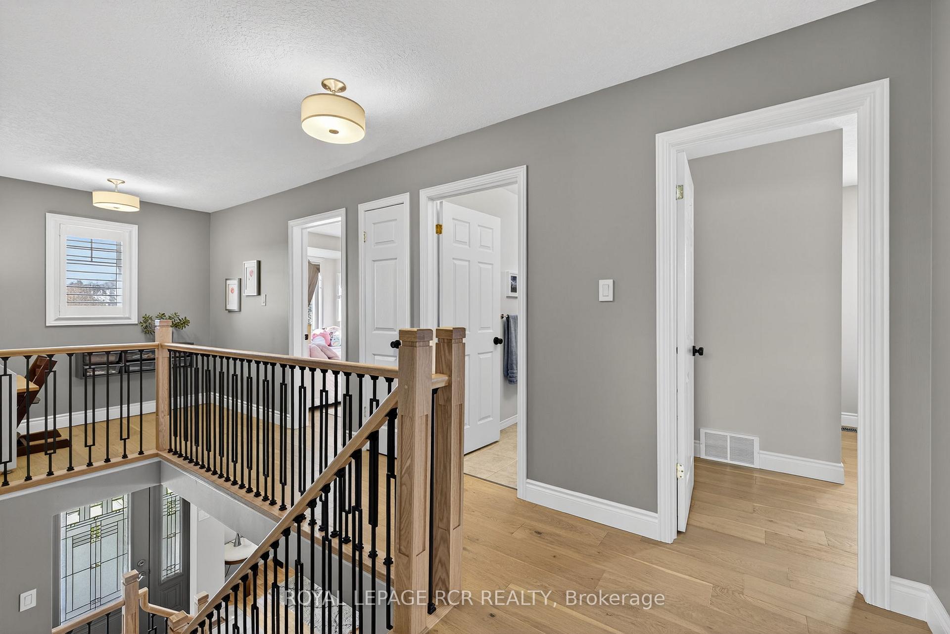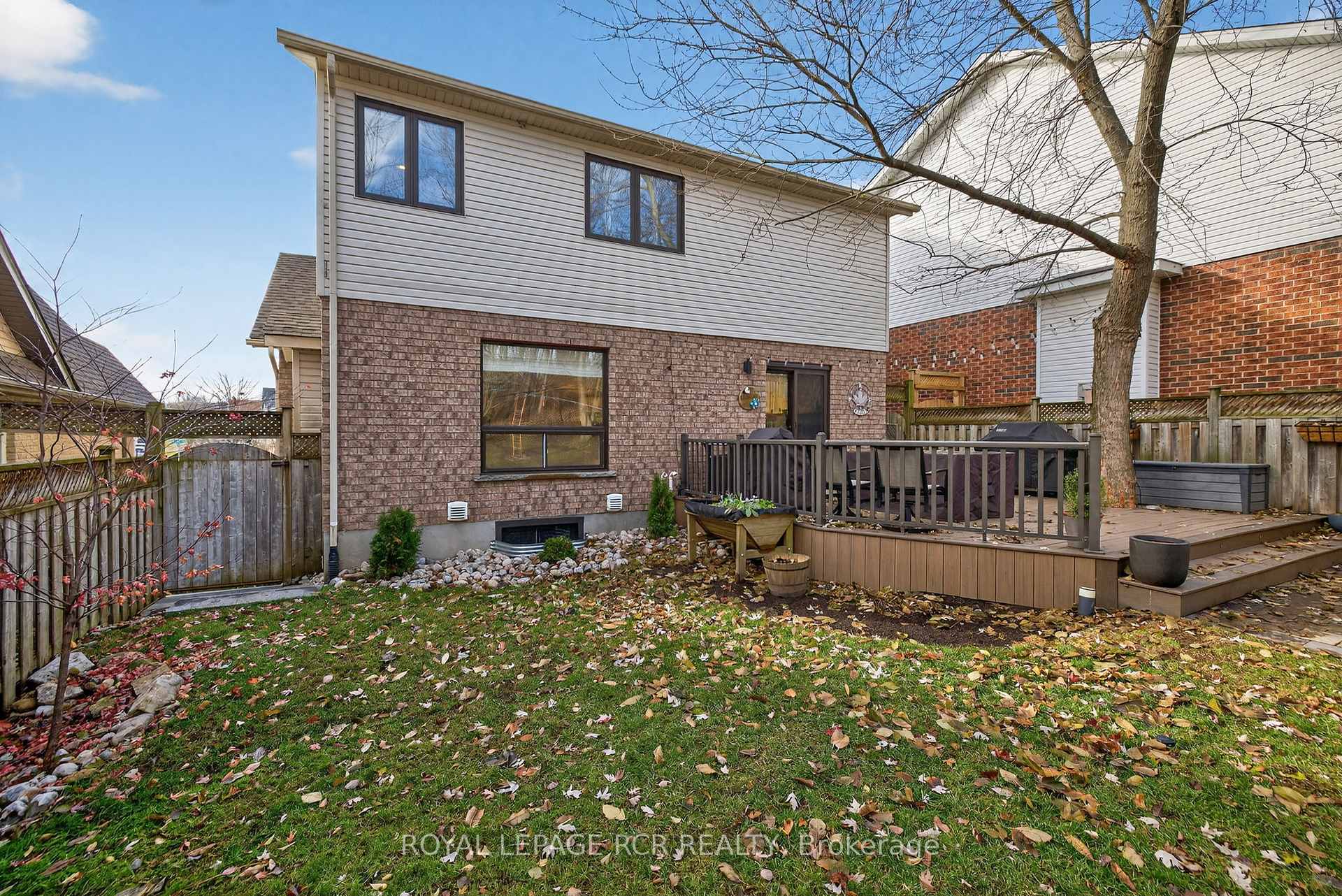 Welcome to Settlers Creek, one of the most desirable west end neighbourhoods in the area. The stunning detached 2-storey home is a true standout with over 2,250 sq ft of total living space. Backing onto protected greenspace, you’ll enjoy backyard privacy, direct access to a tranquil forest, and over $170,000 in high-end upgrades completed over the past 8 years. Inside, the upgrades shine – from hardwood floors on both levels to a fully renovated primary ensuite, kitchen remodel (with new quartz counters and backsplash), and professional closet systems throughout. You’ll also find custom window treatments, a refinished staircase with new balusters, updated light fixtures, pot lights in the kitchen, and sleek commercial grade vinyl flooring with subfloor underlay in the basement and laundry area. With a beautifully finished basement space, this home offers comfort, style and functionality in every corner. The landscaped backyard, complete with composite deck, stone patio, river rock accents, and custom lighting, is a peaceful retreat you’ll love year-round. Major mechanicals? All done. Roof, furnace, A/C, HRV, windows, doors, water heater, water softener – all replaced and owned. Even the garage got an upgrade with a new garage door, and a Tesla charger ready to go. This is a meticulously maintained, move-in ready home where every detail has been considered. Come see the quality, the setting, and the lifestyle this home has to offer.