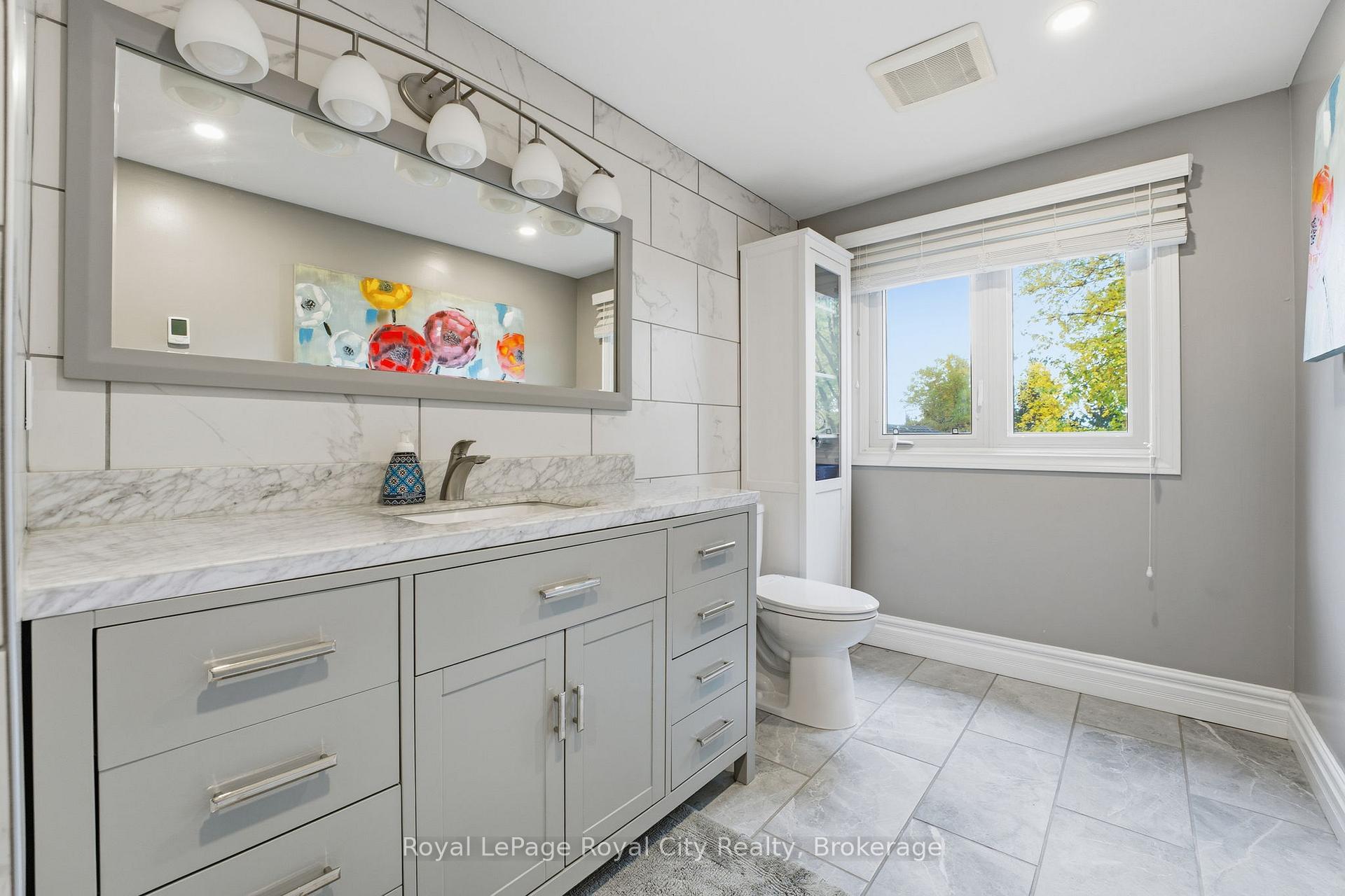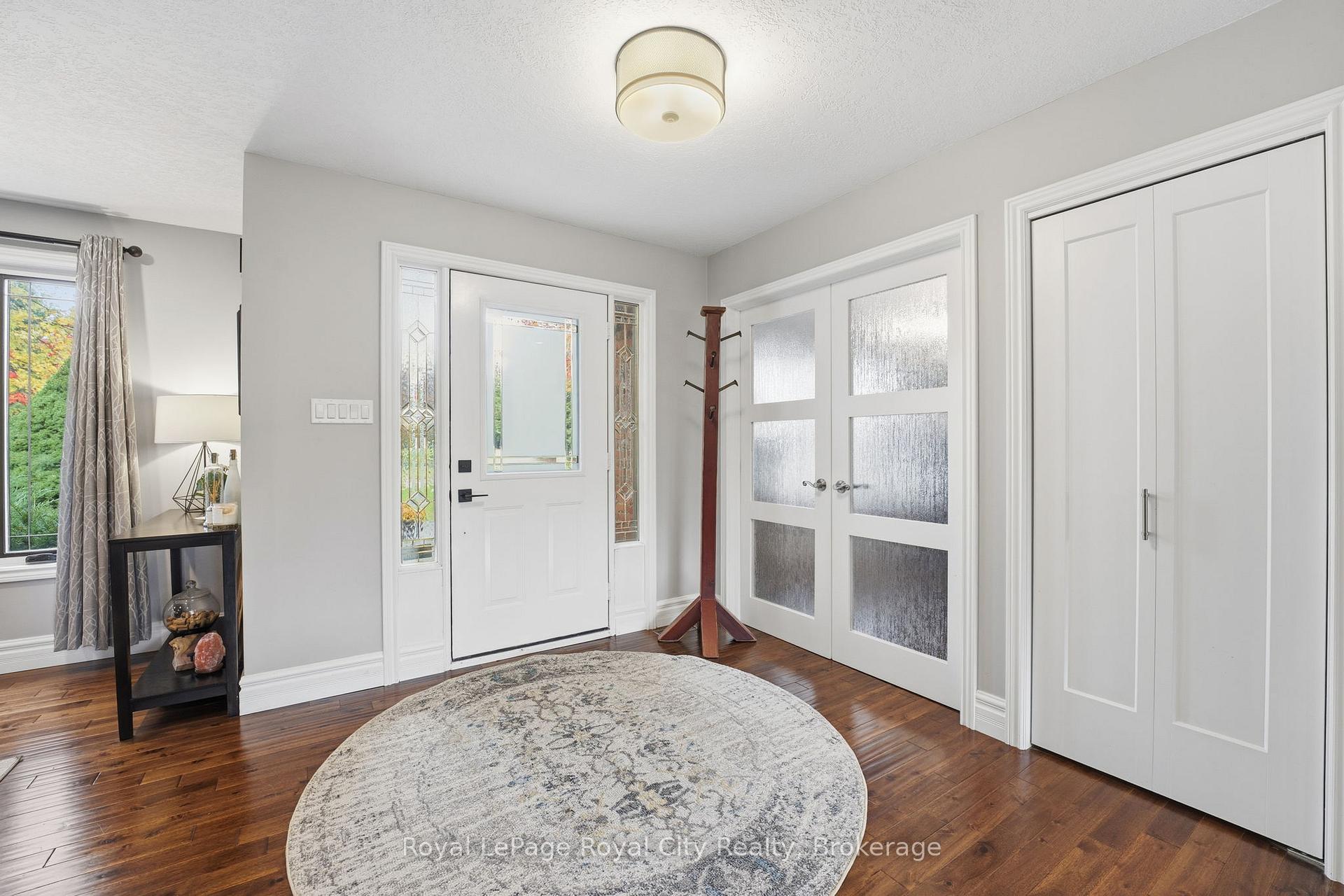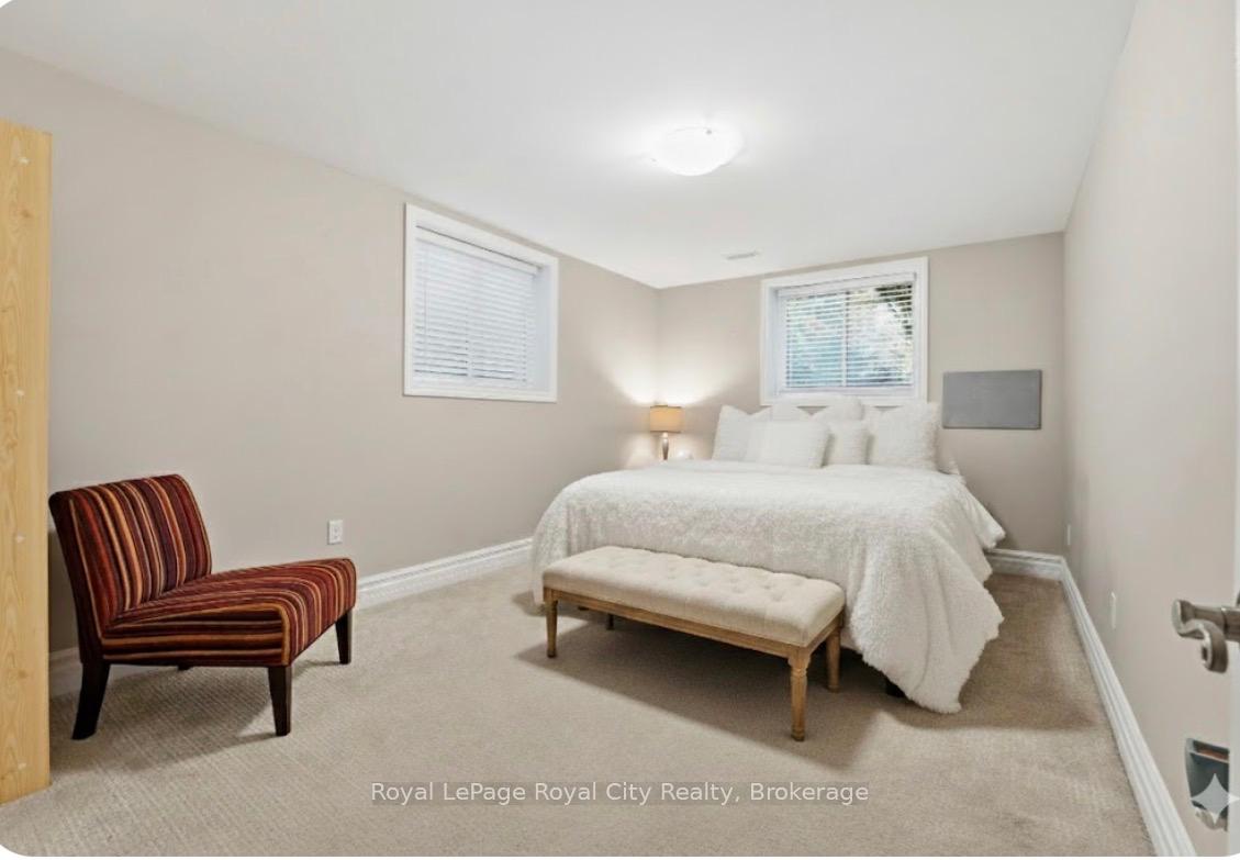 Welcome to a rare offering in one of the area’s most coveted neighbourhoods.Set on a mature, tree-lined lot with towering maples and a circular drive, this exceptional 1.5-storey home blends timeless character with refined modern living. The reclaimed brick exterior hints at the craftsmanship within, while the private, resort-style backyard is truly one of the finest in the community.Step outside and prepare to be impressed. A saltwater pool anchors the outdoor oasis, complete with a charming pool cabana featuring a gas fireplace and multiple seating areas that invite relaxation and entertaining. A two-level composite deck, newly covered by a stunning pavilion boasts a hot tub overlooking a second stone patio with firepit and gazebo. Lush perennial gardens surround the entire yard, ensuring colour and beauty year round.Inside, the home is equally impressive. The main floor is designed for both connection and comfort, open concept ,yet thoughtfully defined. Large principal rooms, framed by generous windows, fill the space with natural light. The living room features a stone fireplace handcrafted by a local mason, paired with a rich timber mantle that becomes the heart of the home.The grand main-floor primary suite is a sanctuary of its own, offering an oversized bedroom, a dedicated dressing room, and serene views of the grounds. The versatile kitchen is ideal for both everyday living and entertaining, complete with gas cooktop, double ovens, granite island, walk-in pantry, and a beverage station. Upstairs, two additional bedrooms share a full bath.The fully finished walk-up basement adds exceptional functionality with a billiards area, bar for entertaining, TV/media space, games room, and three additional bedrooms-perfect for extended family or guests.A rare opportunity to own a home that combines craftsmanship, luxury, and resort-style outdoor living all minutes to the amenities and conveniences of the South End of Guelph and quick access for commuters. Impressive.