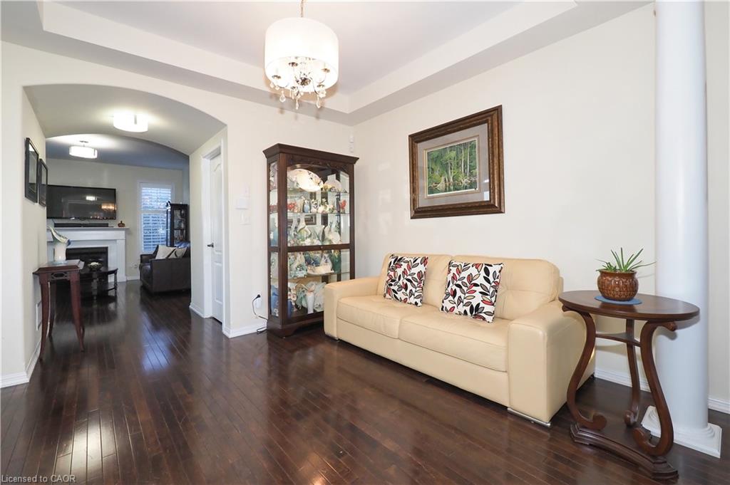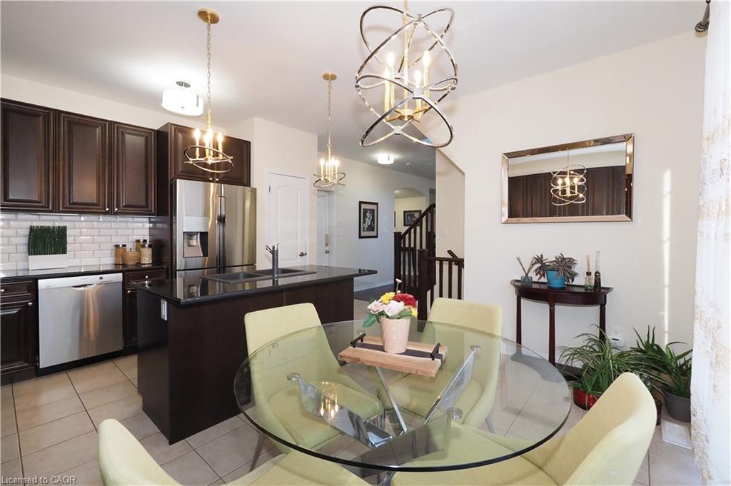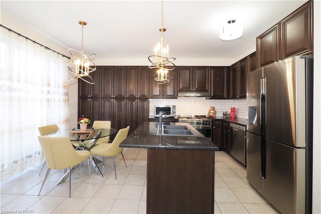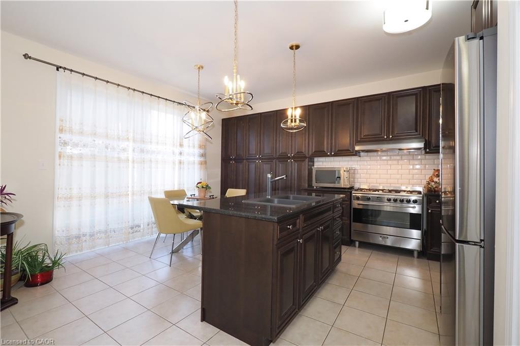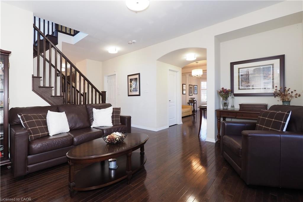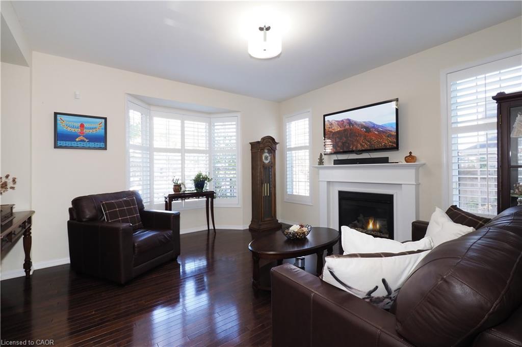 Welcome to Millpond one of Cambridges most desirable communities where this beautifully built Mattamy home combines timeless style, thoughtful upgrades, and modern convenience. Step inside and you’ll immediately notice the 9-foot ceilings and custom hardwood flooring that flows throughout both the main and upper levels completely carpet-free living. The open-concept main floor features elegant archways, a coffered ceiling, and a gas fireplace that anchors the family room. The spacious kitchen offers an abundance of maple cabinetry, granite countertops, a center island, pantry, and a gas/electric hookup ready for the oversized 36 gas stove perfect for any home chef. A bright dinette walks out to the fully fenced, beautifully landscaped backyard, ideal for relaxing or entertaining outdoors. Upstairs, discover three generously sized bedrooms, a versatile den, library or office area, and a convenient laundry room with washer and dryer included. The primary suite features a large walk-in closet and a luxurious ensuite with a soaker tub and separate shower your private retreat after a long day. The finished basement extends your living space with two recreation areas with many recessed lights and luxury vinyl floors and a two-piece bath perfect for a home gym, office, or games room. Additional highlights include a 200-amp electrical service, alarm system that is not currently monitored, double garage with built-in storage and garage door opener, and a garden shed for outdoor storage. Located steps from walking trails, schools are within walking distance, and just minutes from shopping, restaurants, and highway access, 15 minutes to Kitchener or Guelph this is the perfect place to call home. Don’t miss your opportunity to live in Millpond where comfort, quality, and community come together.