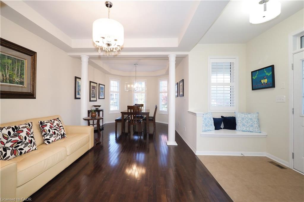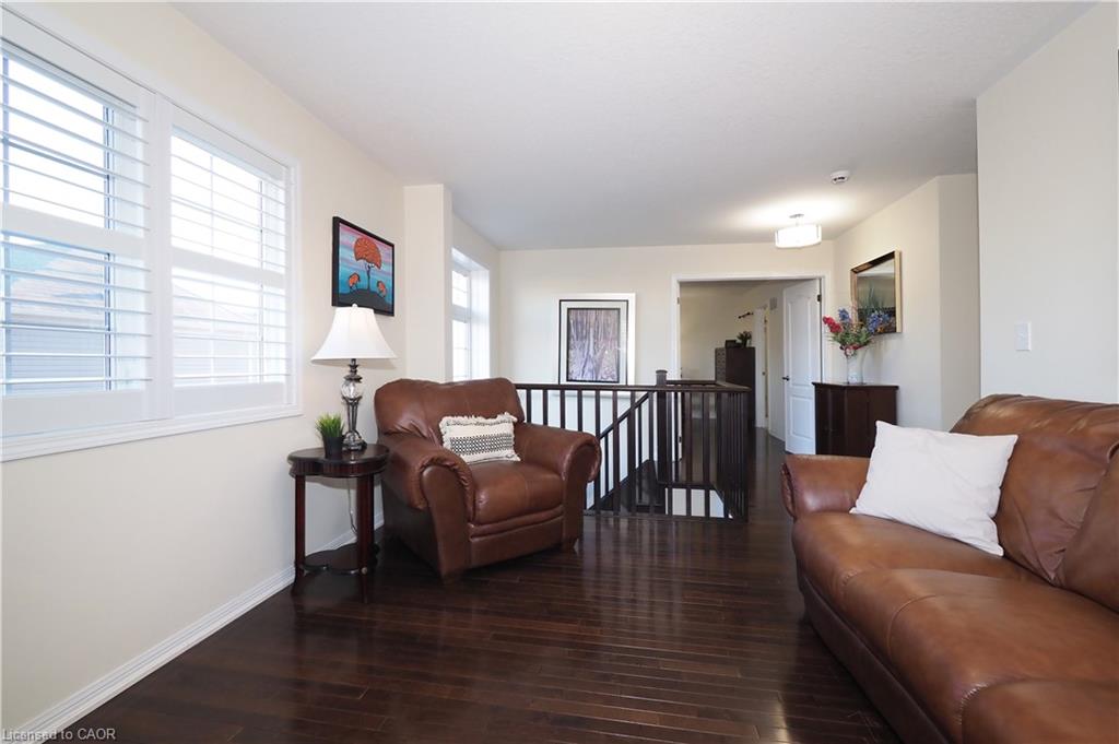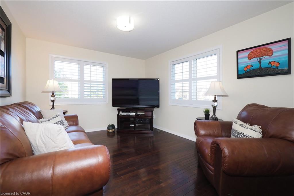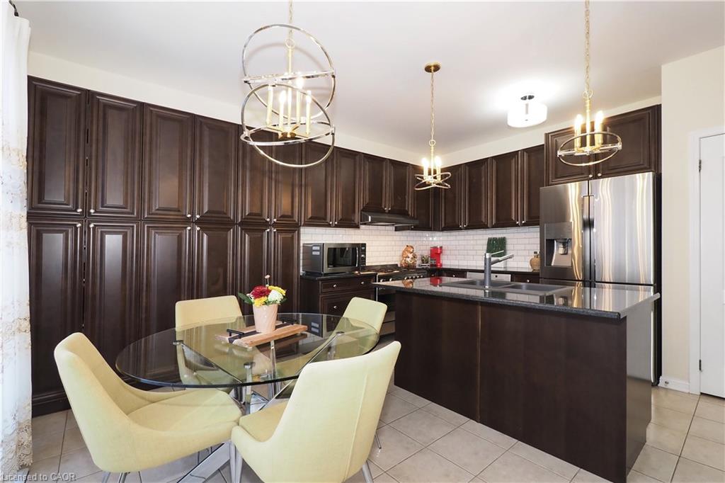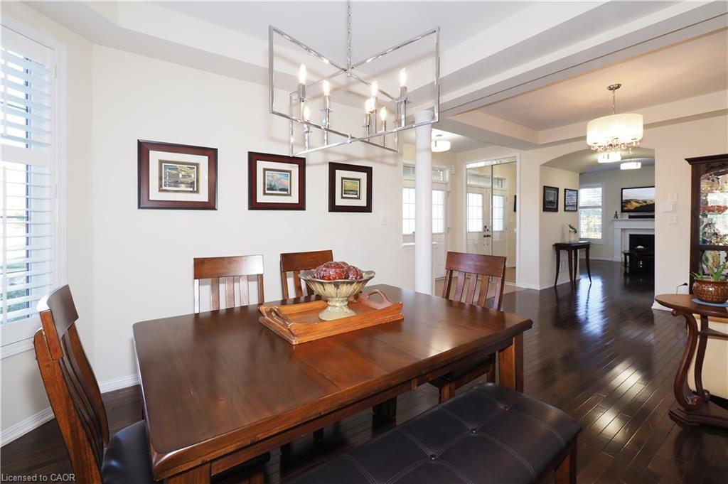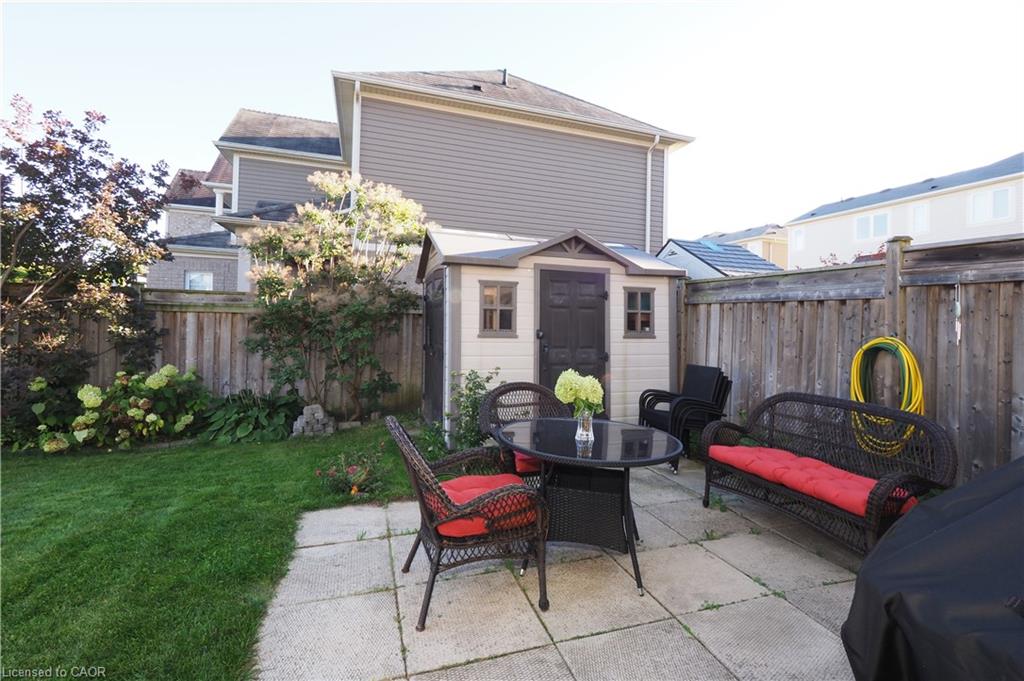 Welcome to Millpond one of Cambridges most desirable communities where this beautifully built Mattamy home combines timeless style, thoughtful upgrades, and modern convenience. Step inside and you’ll immediately notice the 9-foot ceilings and custom hardwood flooring that flows throughout both the main and upper levels completely carpet-free living. The open-concept main floor features elegant archways, a coffered ceiling, and a gas fireplace that anchors the family room. The spacious kitchen offers an abundance of maple cabinetry, granite countertops, a center island, pantry, and a gas/electric hookup ready for the oversized 36 gas stove perfect for any home chef. A bright dinette walks out to the fully fenced, beautifully landscaped backyard, ideal for relaxing or entertaining outdoors. Upstairs, discover three generously sized bedrooms, a versatile den, library or office area, and a convenient laundry room with washer and dryer included. The primary suite features a large walk-in closet and a luxurious ensuite with a soaker tub and separate shower your private retreat after a long day. The finished basement extends your living space with two recreation areas with many recessed lights and luxury vinyl floors and a two-piece bath perfect for a home gym, office, or games room. Additional highlights include a 200-amp electrical service, alarm system that is not currently monitored, double garage with built-in storage and garage door opener, and a garden shed for outdoor storage. Located steps from walking trails, schools are within walking distance, and just minutes from shopping, restaurants, and highway access, 15 minutes to Kitchener or Guelph this is the perfect place to call home. Don’t miss your opportunity to live in Millpond where comfort, quality, and community come together.