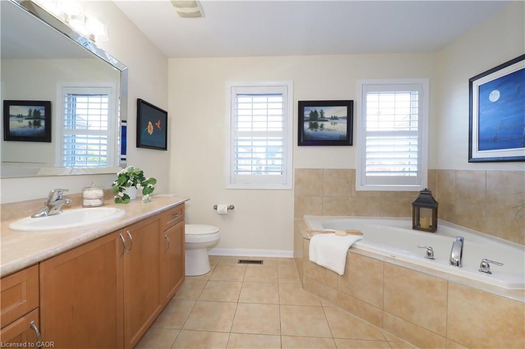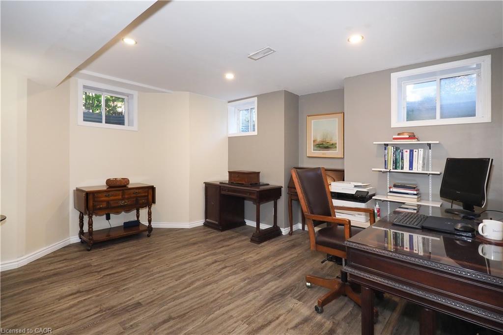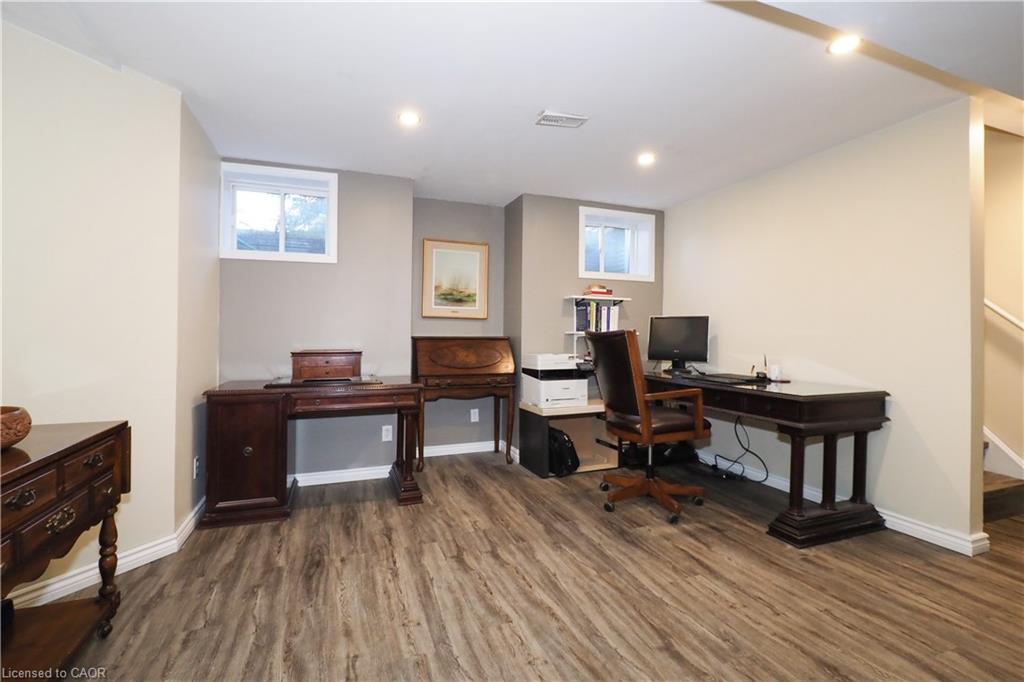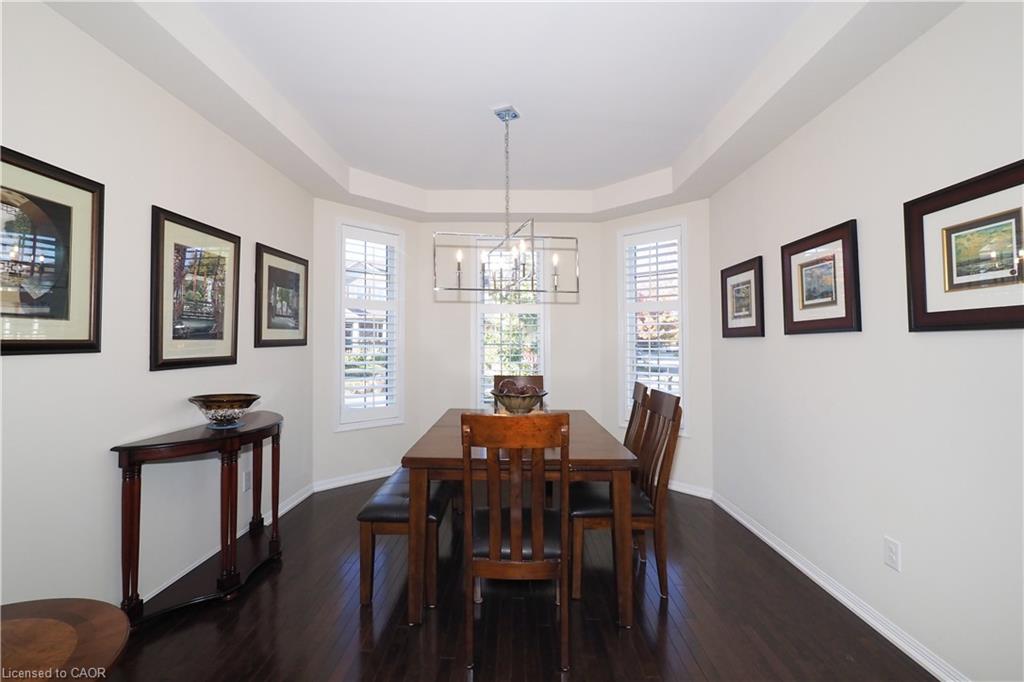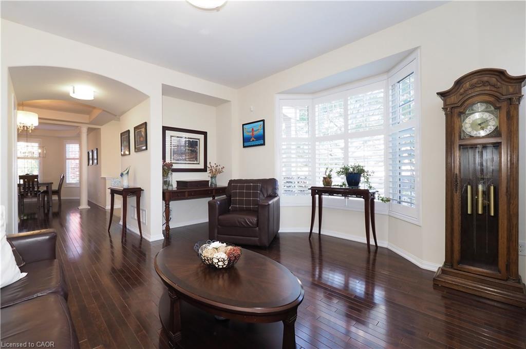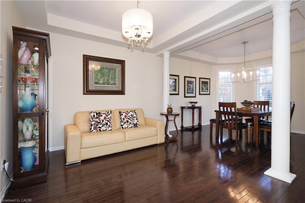 Welcome to Millpond one of Cambridges most desirable communities where this beautifully built Mattamy home combines timeless style, thoughtful upgrades, and modern convenience. Step inside and you’ll immediately notice the 9-foot ceilings and custom hardwood flooring that flows throughout both the main and upper levels completely carpet-free living. The open-concept main floor features elegant archways, a coffered ceiling, and a gas fireplace that anchors the family room. The spacious kitchen offers an abundance of maple cabinetry, granite countertops, a center island, pantry, and a gas/electric hookup ready for the oversized 36 gas stove perfect for any home chef. A bright dinette walks out to the fully fenced, beautifully landscaped backyard, ideal for relaxing or entertaining outdoors. Upstairs, discover three generously sized bedrooms, a versatile den, library or office area, and a convenient laundry room with washer and dryer included. The primary suite features a large walk-in closet and a luxurious ensuite with a soaker tub and separate shower your private retreat after a long day. The finished basement extends your living space with two recreation areas with many recessed lights and luxury vinyl floors and a two-piece bath perfect for a home gym, office, or games room. Additional highlights include a 200-amp electrical service, alarm system that is not currently monitored, double garage with built-in storage and garage door opener, and a garden shed for outdoor storage. Located steps from walking trails, schools are within walking distance, and just minutes from shopping, restaurants, and highway access, 15 minutes to Kitchener or Guelph this is the perfect place to call home. Don’t miss your opportunity to live in Millpond where comfort, quality, and community come together.