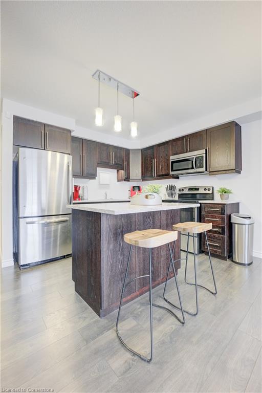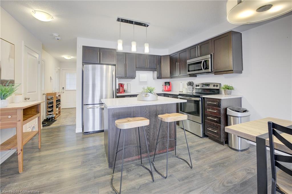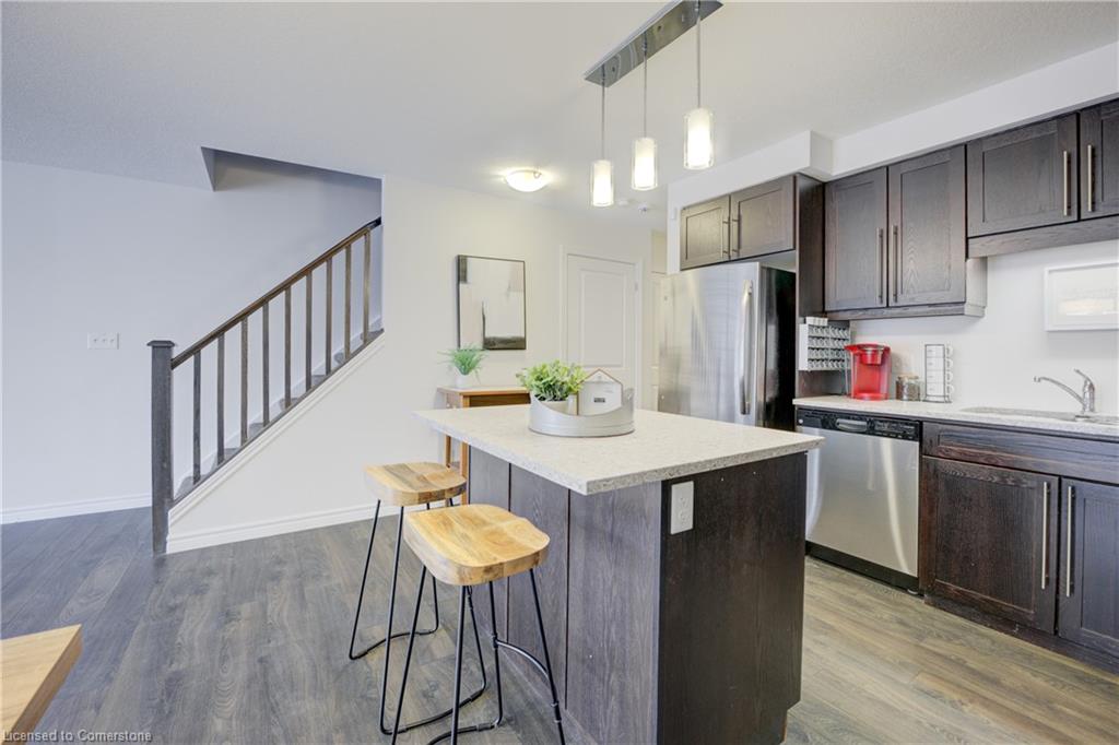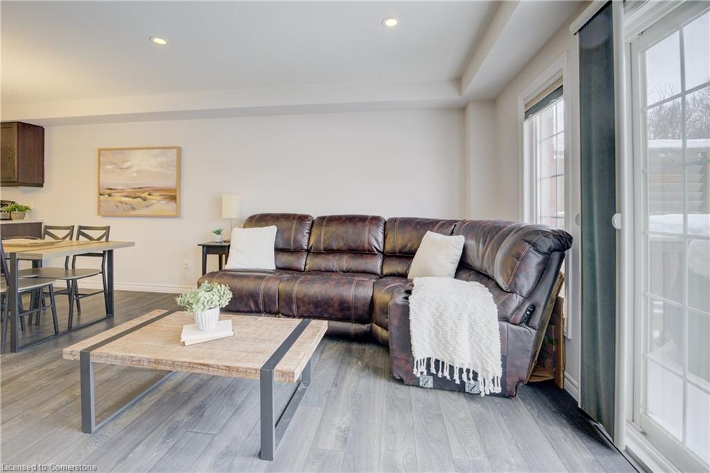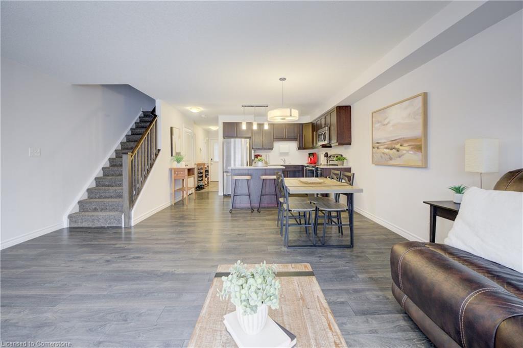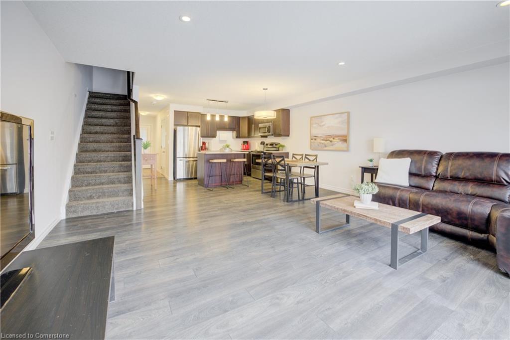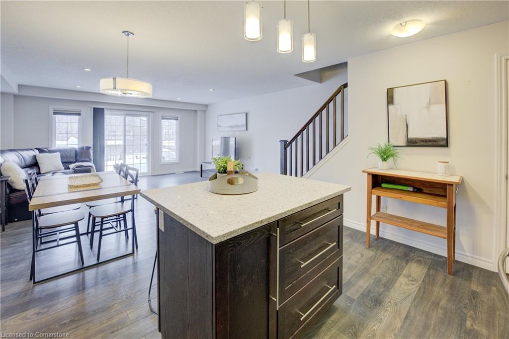 Welcome to 55 Meadowridge Street! This 3 bedroom, 3 bath freehold townhome is nestled in the highly sought-after Doon South community! Offering 1,469 sq. ft. of thoughtfully designed living space, this home is sure to impress! Step inside to find modern laminate flooring throughout, a bright and open concept living space, and a kitchen featuring quartz countertops, Island and stainless-steel appliances. Enjoy the outdoors on the great sized deck, with peaceful views of a tree lined backyard and hiking trail, ideal for morning walks or evening relaxation. Upstairs you will find 3 spacious bedrooms filled with natural light and ample storage. The large primary bedroom boasts a 3-piece ensuite with glass shower, and a large walk-in closet. The unfinished basement with a 3-piece rough-in is filled with untapped potential and is ready for you to make it your own. Located just minutes from highways, schools, parks, and all essential amenities, this home truly has it all. Don’t miss your chance to own in this prime location!