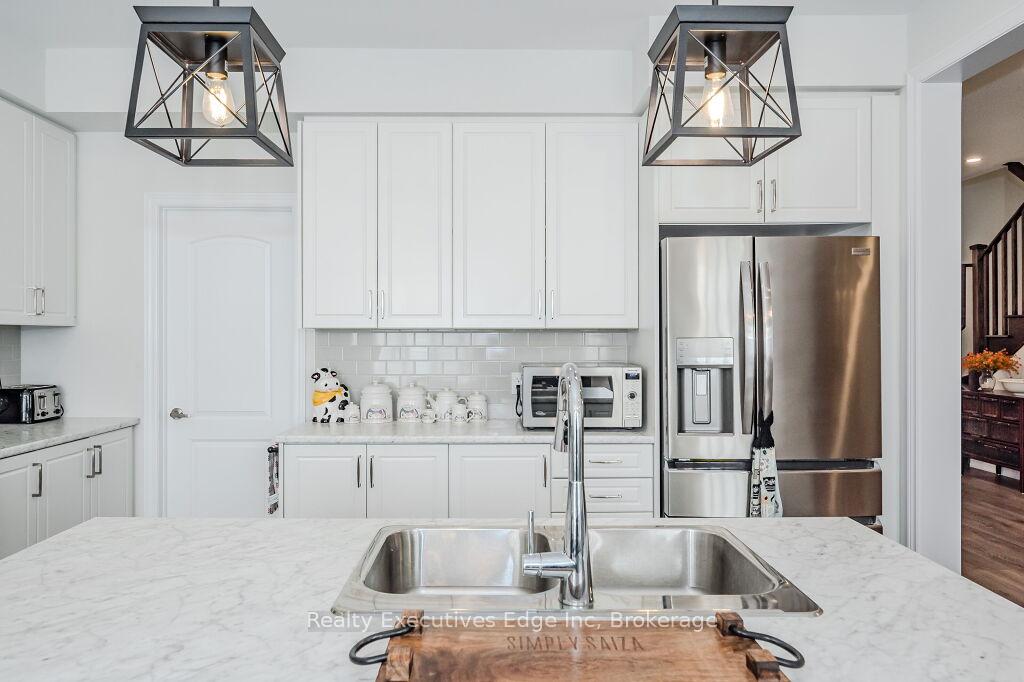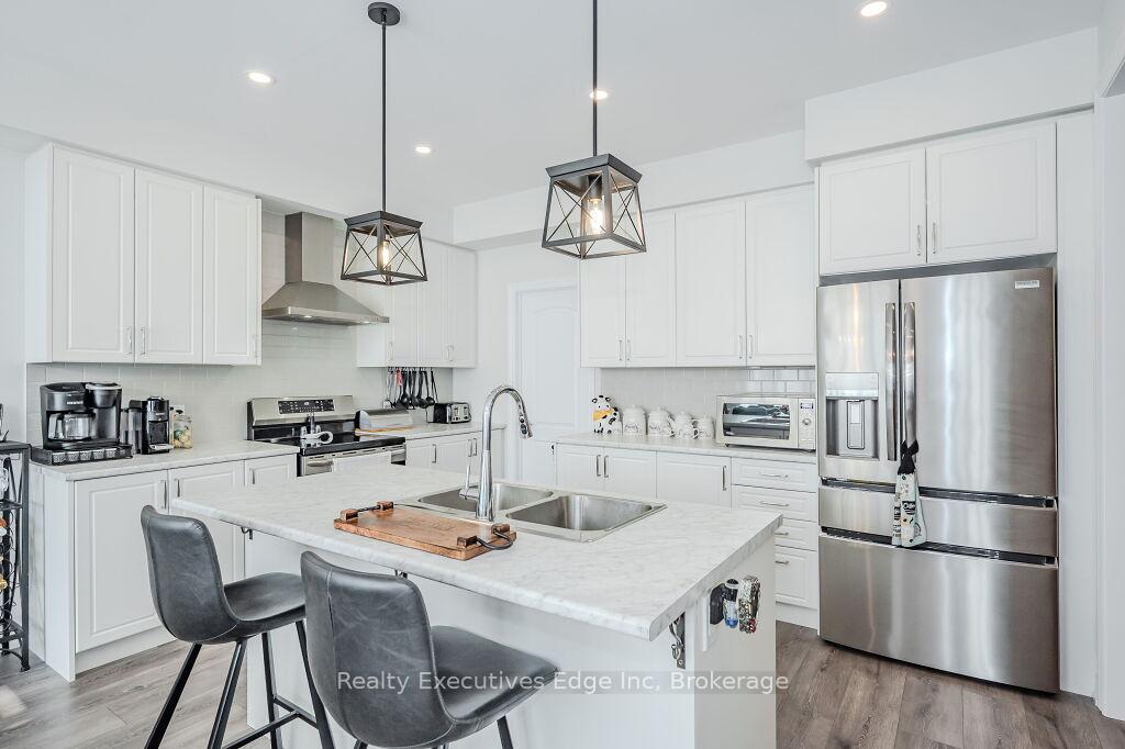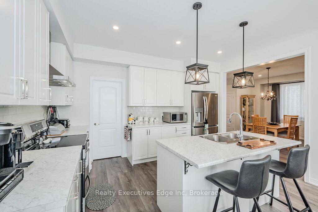 Presenting a magnificent 4-bedroom residence, situated in an enviable location, offering an impressive 2,700 square feet of total refined living space. This extraordinary “pet-free from new” property has been meticulously upgraded to cater to the most discerning of tastes. This exceptional property has undergone a plethora of upgrades, including a gas fireplace, an oak staircase with a maple finish, and upgraded vanities throughout. The gourmet kitchen features stainless steel canopy hood fans and under-counter lighting, perfect for any culinary enthusiast. The master ensuite boasts a luxurious tub with a handheld faucet, a spa-like shower, and upgraded features like a niche and glass enclosure. Two of the 5 bathrooms have been upgraded with one-piece toilets and modern fixtures. High-end Laminate flooring throughout the main level adds a touch of elegance, while valence mouldings on all floors complete the look. A backsplash in the kitchen, an insulated garage ceiling, and an electric TV package in the master bedroom are just a few of the many additional upgrades. The exterior features an outside gas line for a BBQ, a 200-amp service, and a house electric surge protector. The owner has supplied numerous upgrades, including appliances, a central vacuum system, and a Lennox high-efficiency central air unit. Security cameras with solar panels outside ensure peace of mind, while a stacked washer and dryer complete the picture above grade. However, this home offers even more, with a recently professionally finished basement featuring a large rec room as well as a stylish 3-piece bathroom and lastly a fully fenced back yard. You will be impressed when you see this home in person, don’t delay.