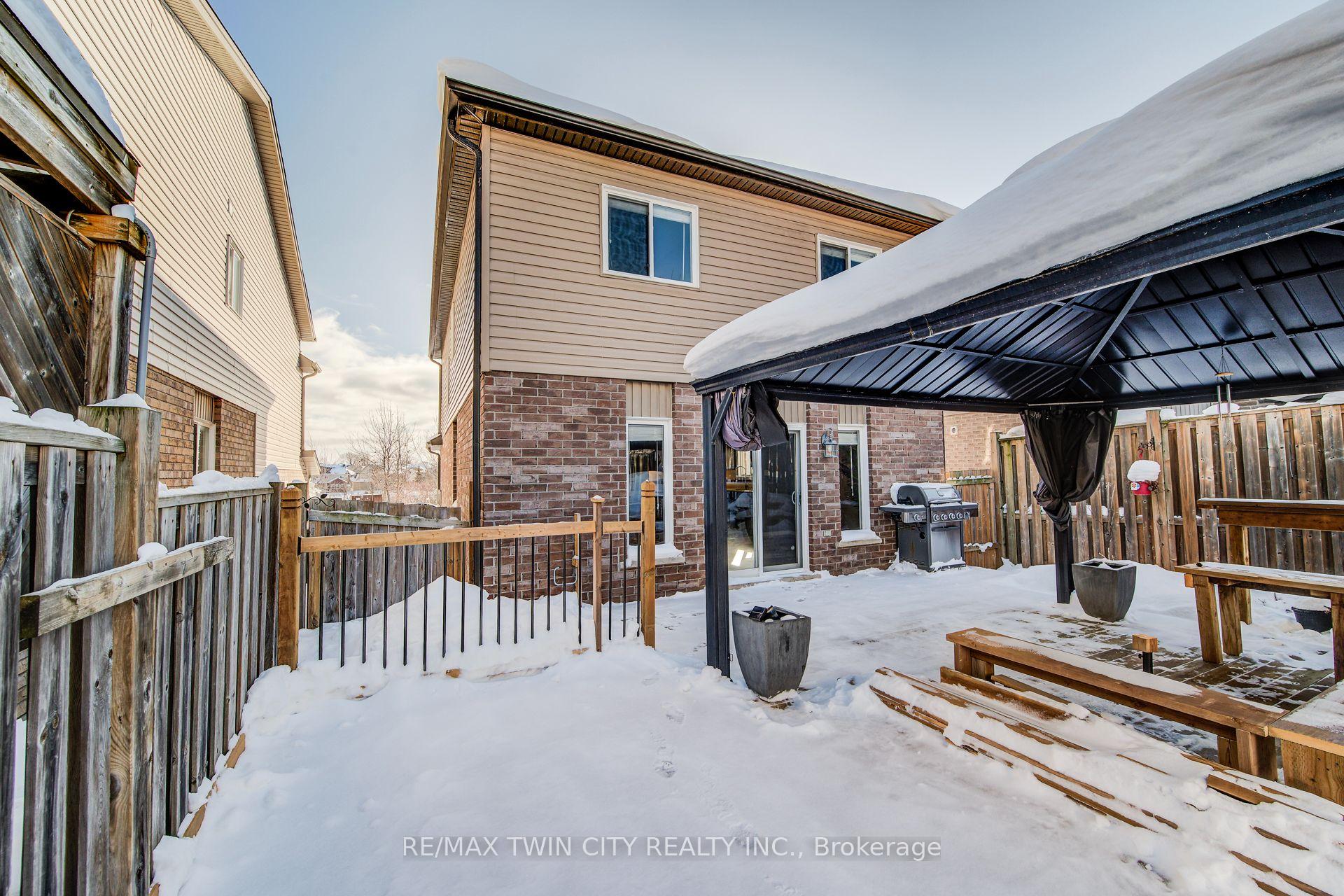 Welcome to this beautifully maintained and spacious 3 bedroom, two-storey open-concept detached family home ideally situated on a fully landscaped and fenced lot in the highly desirable Lackner Woods/Idlewood neighbourhood of Kitchener. Nestled in a family-friendly community, this home offers the perfect blend of comfort, convenience and lifestyle. Enjoy easy access to Highway 401, the Expressway, Fairview Park Mall, grocery stores, excellent schools, Chicopee Ski Hill, restaurants, and countless amenities. Step onto your inviting front porch and take in the scenic views of nearby walking and hiking trails – perfect for the outdoor enthusiasts. The single car garage & double driveway provide ample parking for your vehicles. Inside the carpet-free main floor features a bright and spacious open-concept layout designed for modern family living. The kitchen boasts newer quartz countertops (2025) , abundant cabinetry, a functional island and stainless-steel appliances (fridge, stove, built-in microwave & dishwasher). The adjacent dining area is ideal for family dinners and entertaining guests. The bright family room offers generous space for relaxing with the family or entertaining family or friends. Sliding doors lead to the fully fenced backyard oasis, complete with an extended deck (2021) and gazebo (2022) and a newer outdoor shed (2025) for additional storage – perfect for enjoying outdoor living. Upstairs, you’ll find a large primary bedroom featuring double entry doors, private ensuite with an oversized shower, a walk-in closet, & an additional bonus closet for additional storage. Two spacious secondary bedrooms and a 4- piece bathroom complete the upper level. The unspoiled lower level awaits your personal touch and offers endless possibilities for customization. Additional features include central air conditioning, washer and dryer and a newer water softener (2023). Don’t miss your opportunity to own this wonderful family home – book your private showing today!