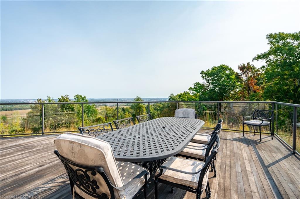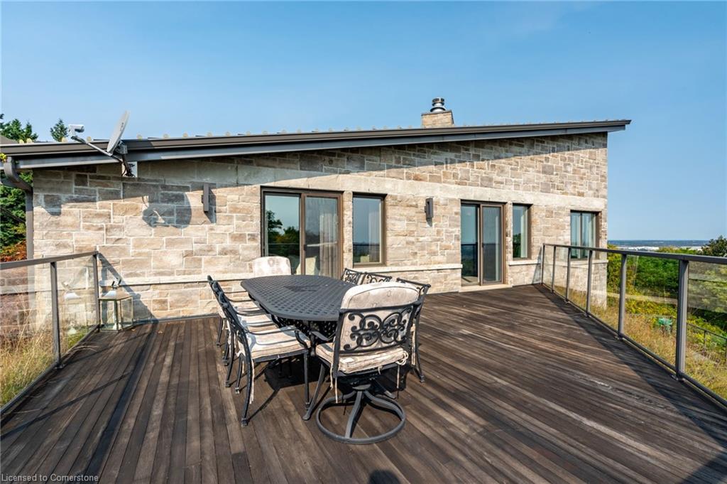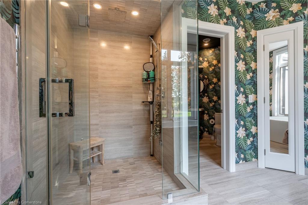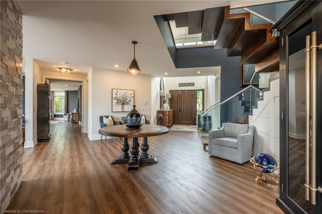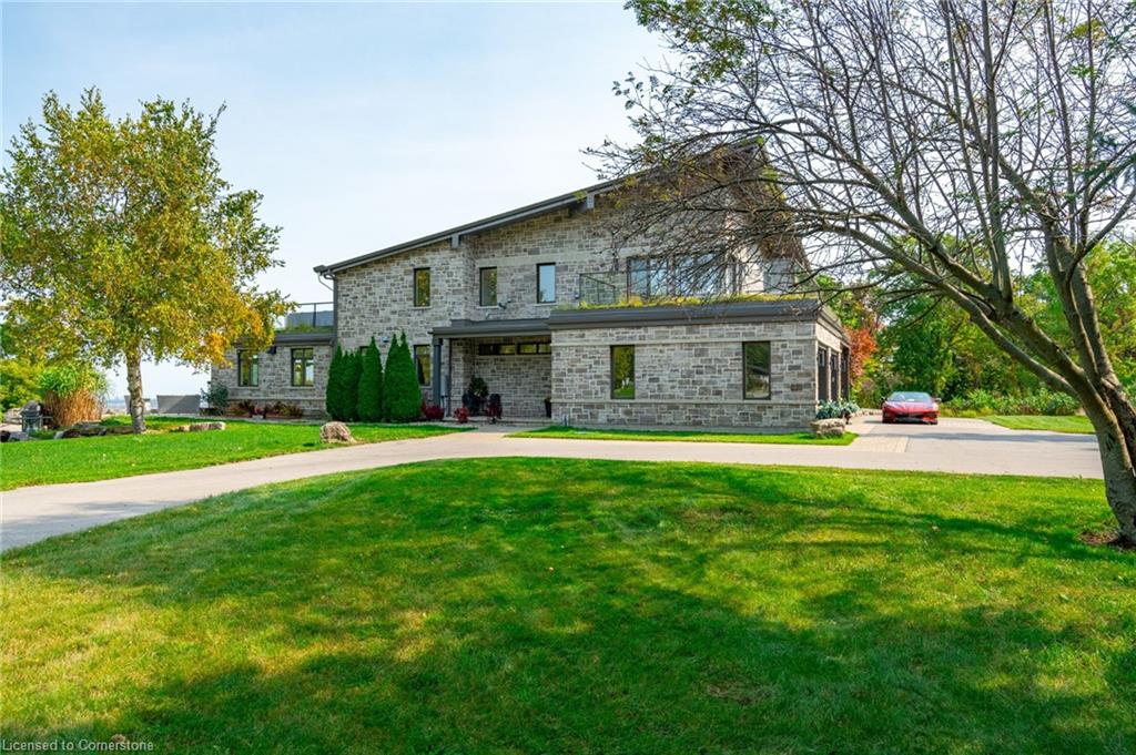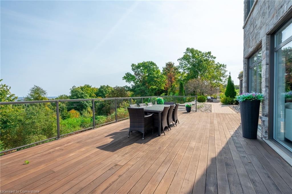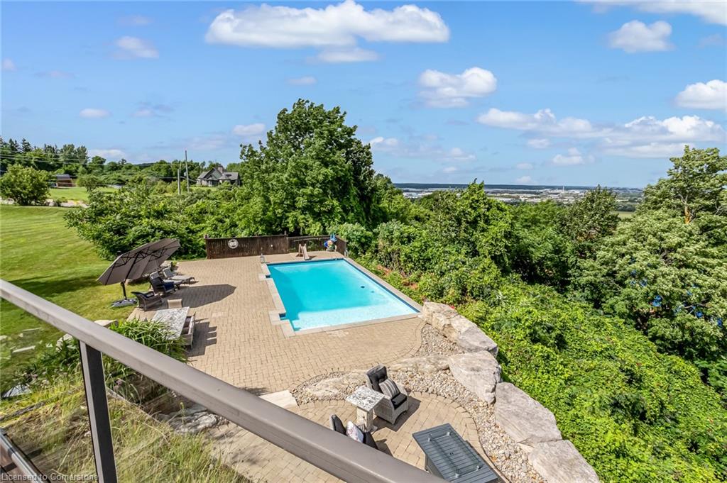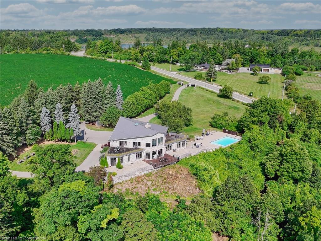 You don’t hear it at first. You feel it. The stillness. The quiet shift as you pass through the gates and life slows down. Set against the Niagara Escarpment on 13.5 acres of private forest, rolling lawns, and sunlit trails, this 6,042 sq ft modern estate is more than a home, it’s a place to exhale. A place where kids roam free, dogs lead the way, and every sunset feels like a show. Designed for real life and connection, the home blends clean-lined architecture with nature’s warmth. Soaring 24-ft ceilings and floor-to-ceiling glass flood the open interior with light and views that stretch for miles. Wide-plank floors, soft wood tones, and bold glass balance sophistication and serenity. Mornings begin barefoot on warm floors, coffee in hand, dog waiting at the door. The kitchen is sleek, spacious, built for gathering. Bake cookies at the island, host birthday dinners, or enjoy quiet Sunday mornings while kids play nearby. With five bedrooms and seven bathrooms, there’s space to spread out and come together. The main-floor suite is a sanctuary: spa-like, sunlit, tucked away. A separate guest, nanny, or in-law wing offers flexibility for multi-generational living or private hosting. Outside, ten walkouts invite you into nature: a pool framed by forest, winding trails to a stream, and Malibu-style decks with glass railings and a green roof edge. Perfect for summer BBQs, barefoot dances at dusk, or stargazing under quiet skies. Parking for guests, premium insulation for four-season comfort, and a 2.5-acre field, ready for a pony, hobby farm, or more space to roam. This isn’t just about square footage or finishes (though exceptional). It’s about what this place gives back: space to breathe. Room to grow. A slower rhythm filled with moments that matter. From sunrise coffees to starlit swims, this is a home your family will never outgrow. It’s home, in every sense of the word.