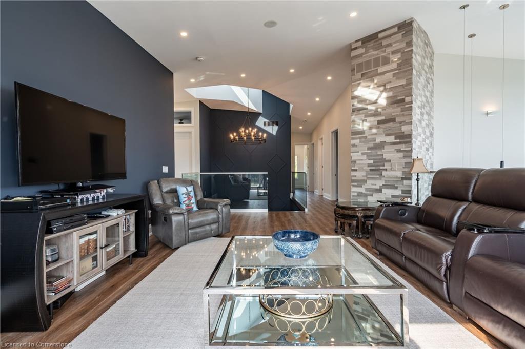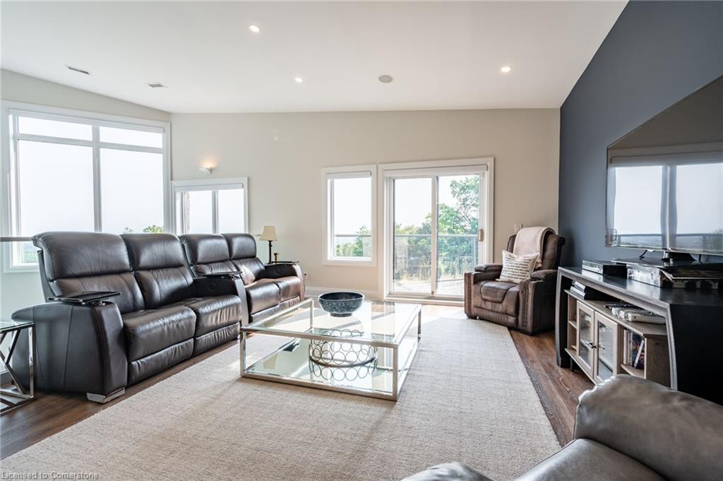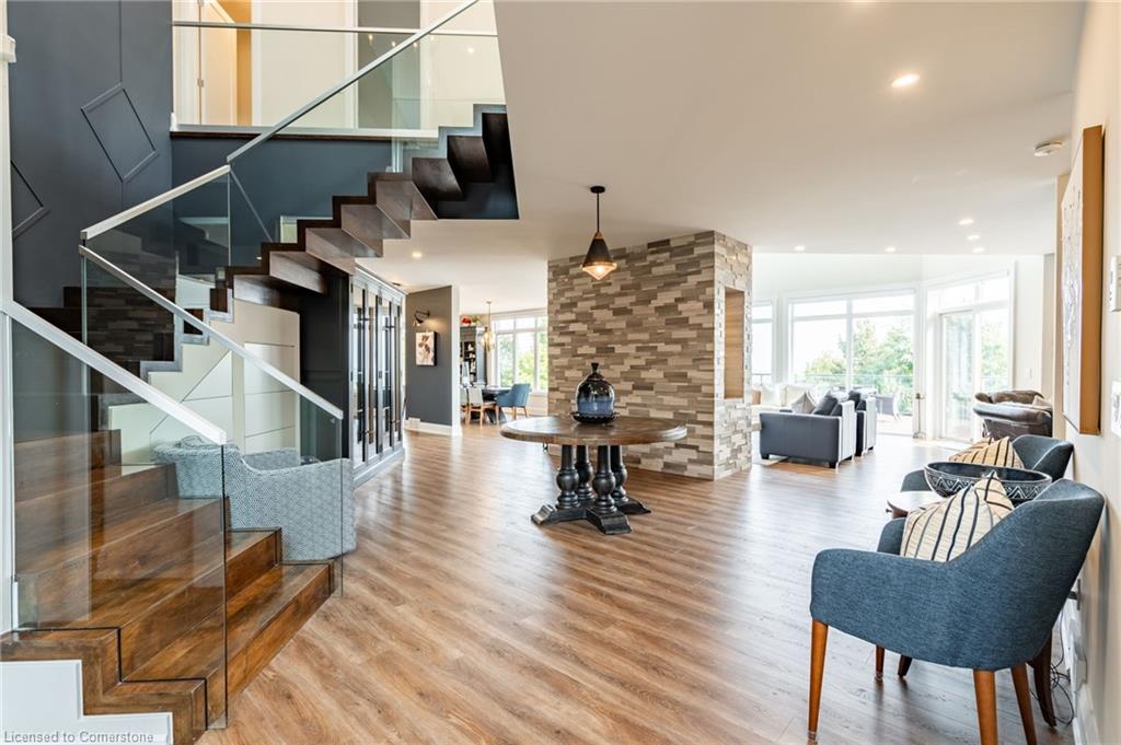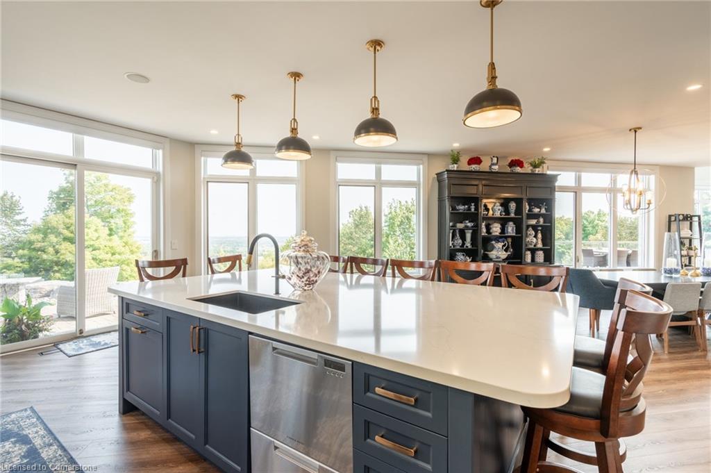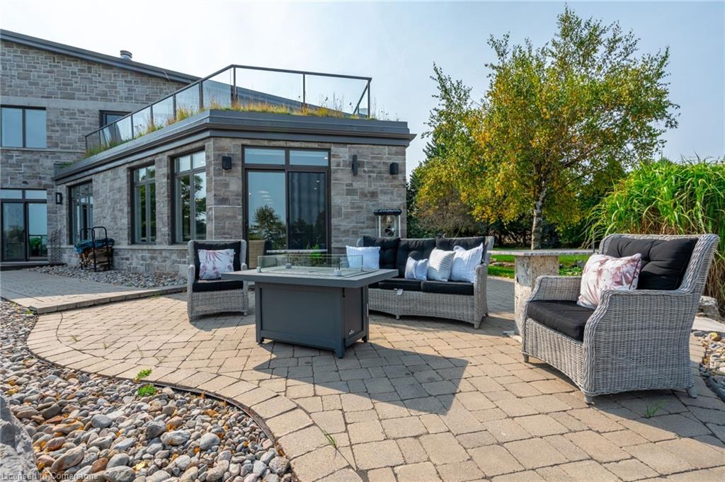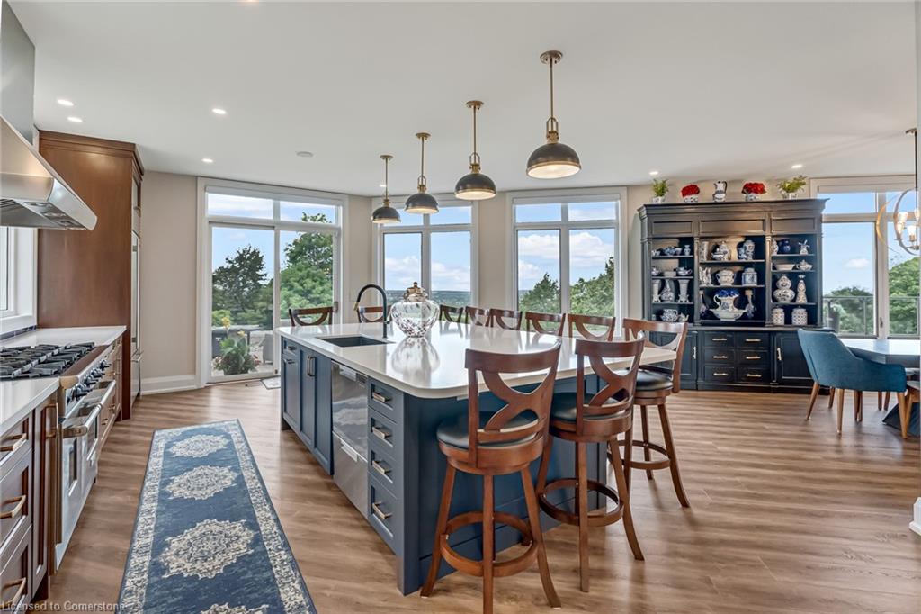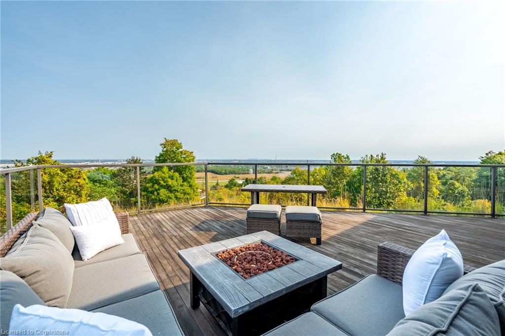 You don’t hear it at first. You feel it. The stillness. The quiet shift as you pass through the gates and life slows down. Set against the Niagara Escarpment on 13.5 acres of private forest, rolling lawns, and sunlit trails, this 6,042 sq ft modern estate is more than a home, it’s a place to exhale. A place where kids roam free, dogs lead the way, and every sunset feels like a show. Designed for real life and connection, the home blends clean-lined architecture with nature’s warmth. Soaring 24-ft ceilings and floor-to-ceiling glass flood the open interior with light and views that stretch for miles. Wide-plank floors, soft wood tones, and bold glass balance sophistication and serenity. Mornings begin barefoot on warm floors, coffee in hand, dog waiting at the door. The kitchen is sleek, spacious, built for gathering. Bake cookies at the island, host birthday dinners, or enjoy quiet Sunday mornings while kids play nearby. With five bedrooms and seven bathrooms, there’s space to spread out and come together. The main-floor suite is a sanctuary: spa-like, sunlit, tucked away. A separate guest, nanny, or in-law wing offers flexibility for multi-generational living or private hosting. Outside, ten walkouts invite you into nature: a pool framed by forest, winding trails to a stream, and Malibu-style decks with glass railings and a green roof edge. Perfect for summer BBQs, barefoot dances at dusk, or stargazing under quiet skies. Parking for guests, premium insulation for four-season comfort, and a 2.5-acre field, ready for a pony, hobby farm, or more space to roam. This isn’t just about square footage or finishes (though exceptional). It’s about what this place gives back: space to breathe. Room to grow. A slower rhythm filled with moments that matter. From sunrise coffees to starlit swims, this is a home your family will never outgrow. It’s home, in every sense of the word.