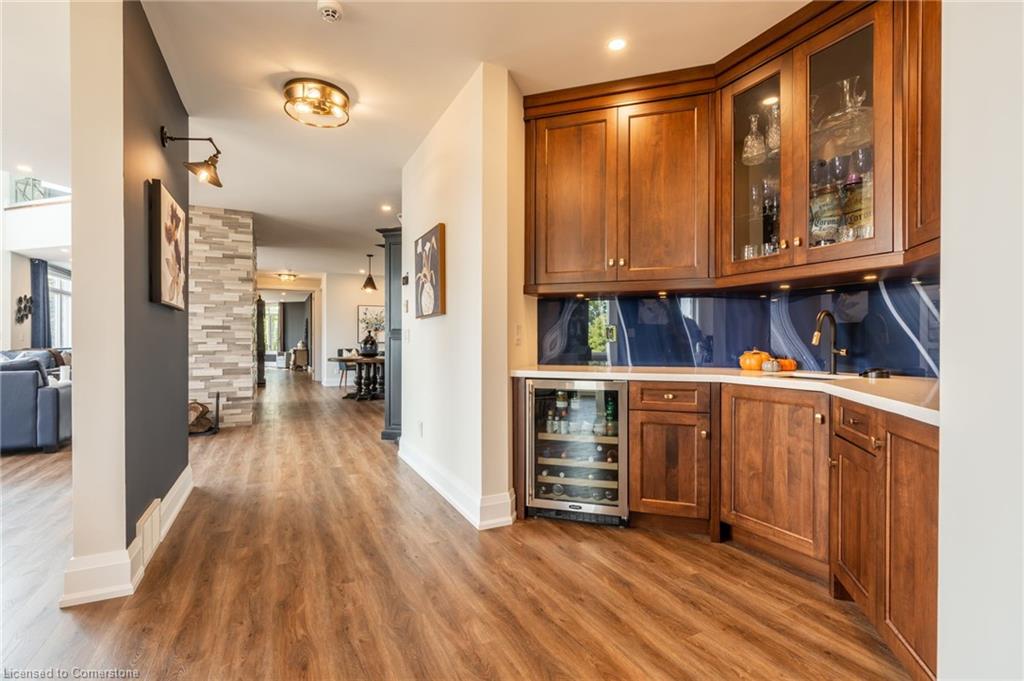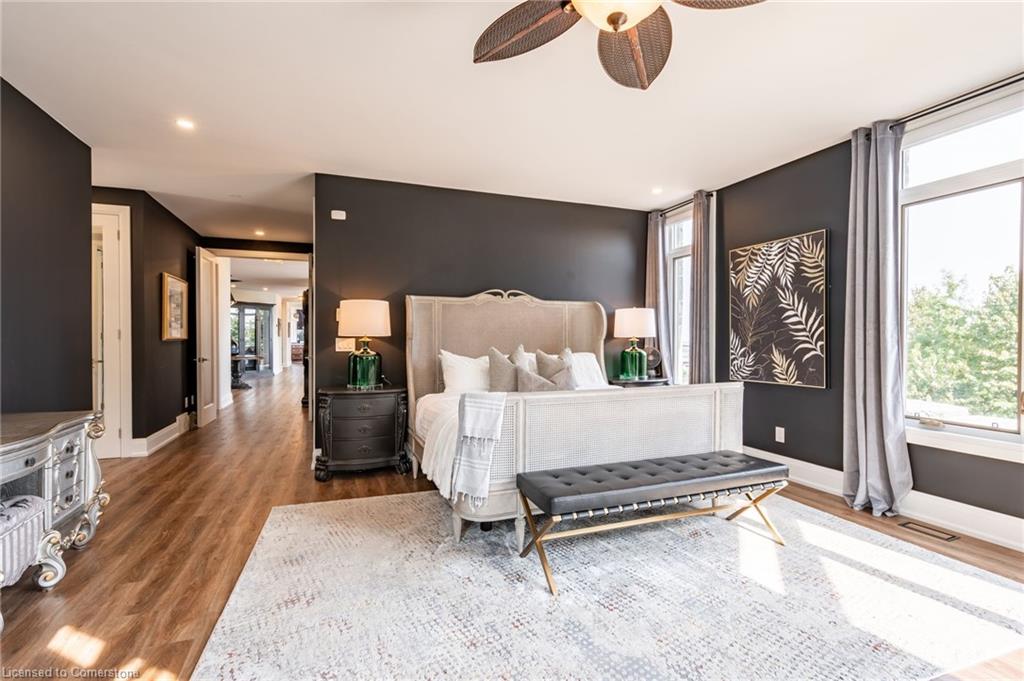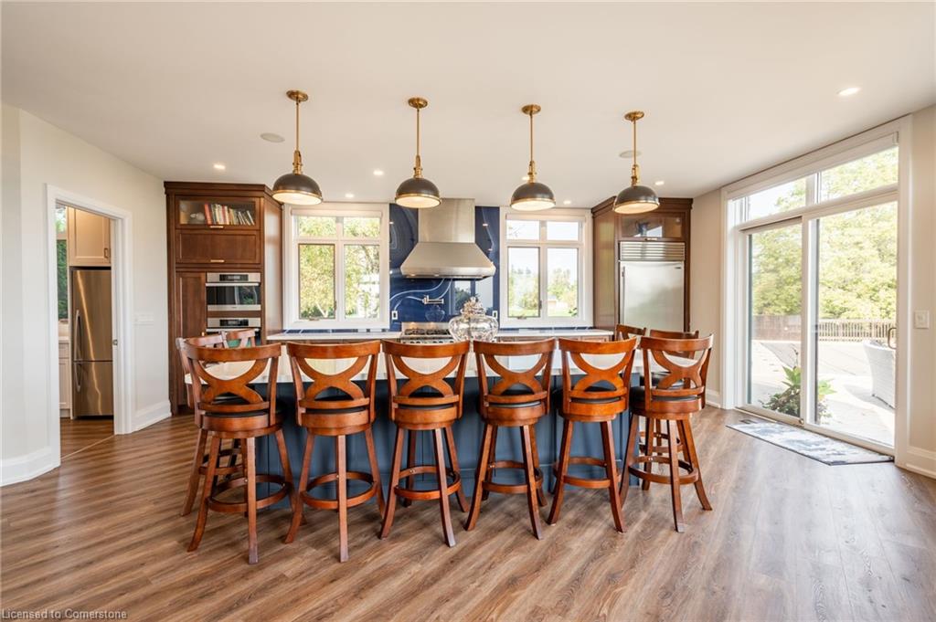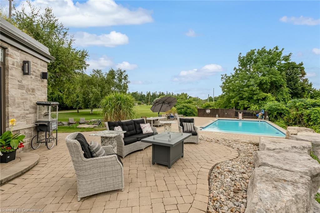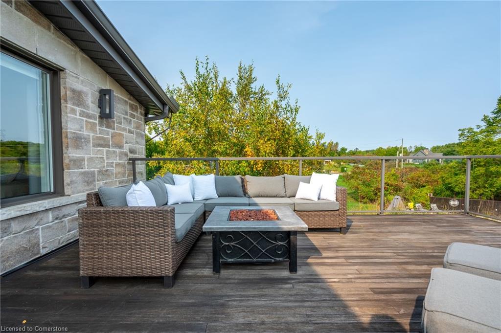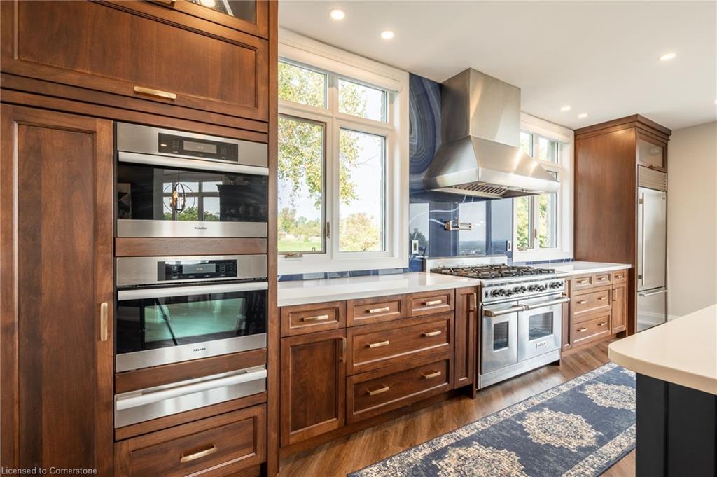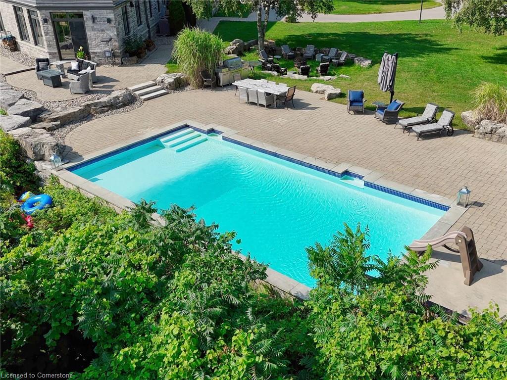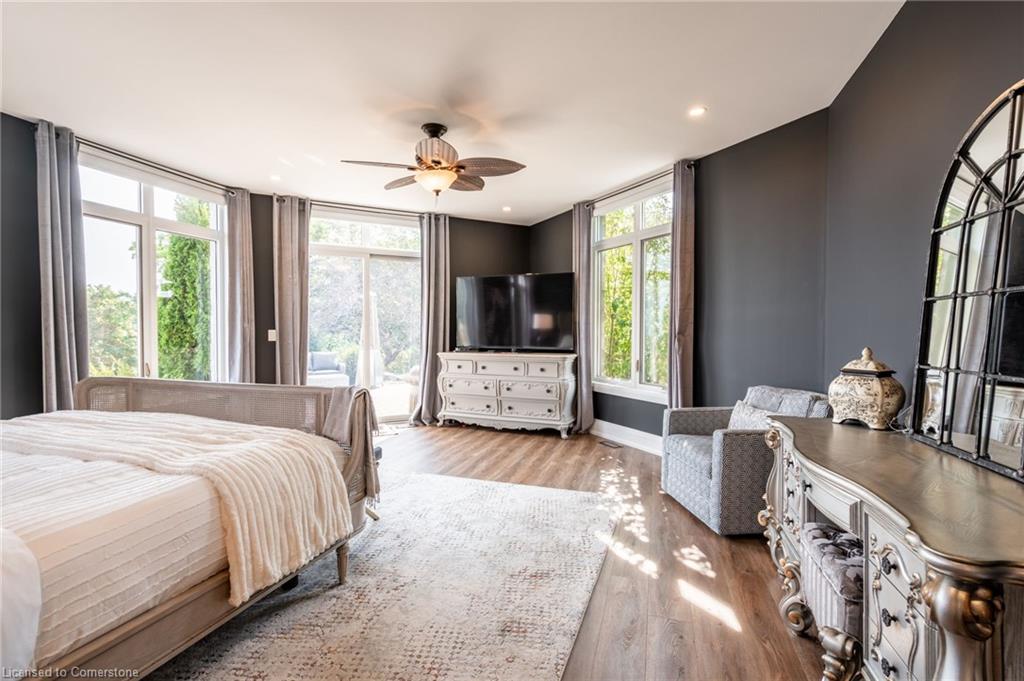 You don’t hear it at first. You feel it. The stillness. The quiet shift as you pass through the gates and life slows down. Set against the Niagara Escarpment on 13.5 acres of private forest, rolling lawns, and sunlit trails, this 6,042 sq ft modern estate is more than a home, it’s a place to exhale. A place where kids roam free, dogs lead the way, and every sunset feels like a show. Designed for real life and connection, the home blends clean-lined architecture with nature’s warmth. Soaring 24-ft ceilings and floor-to-ceiling glass flood the open interior with light and views that stretch for miles. Wide-plank floors, soft wood tones, and bold glass balance sophistication and serenity. Mornings begin barefoot on warm floors, coffee in hand, dog waiting at the door. The kitchen is sleek, spacious, built for gathering. Bake cookies at the island, host birthday dinners, or enjoy quiet Sunday mornings while kids play nearby. With five bedrooms and seven bathrooms, there’s space to spread out and come together. The main-floor suite is a sanctuary: spa-like, sunlit, tucked away. A separate guest, nanny, or in-law wing offers flexibility for multi-generational living or private hosting. Outside, ten walkouts invite you into nature: a pool framed by forest, winding trails to a stream, and Malibu-style decks with glass railings and a green roof edge. Perfect for summer BBQs, barefoot dances at dusk, or stargazing under quiet skies. Parking for guests, premium insulation for four-season comfort, and a 2.5-acre field, ready for a pony, hobby farm, or more space to roam. This isn’t just about square footage or finishes (though exceptional). It’s about what this place gives back: space to breathe. Room to grow. A slower rhythm filled with moments that matter. From sunrise coffees to starlit swims, this is a home your family will never outgrow. It’s home, in every sense of the word.