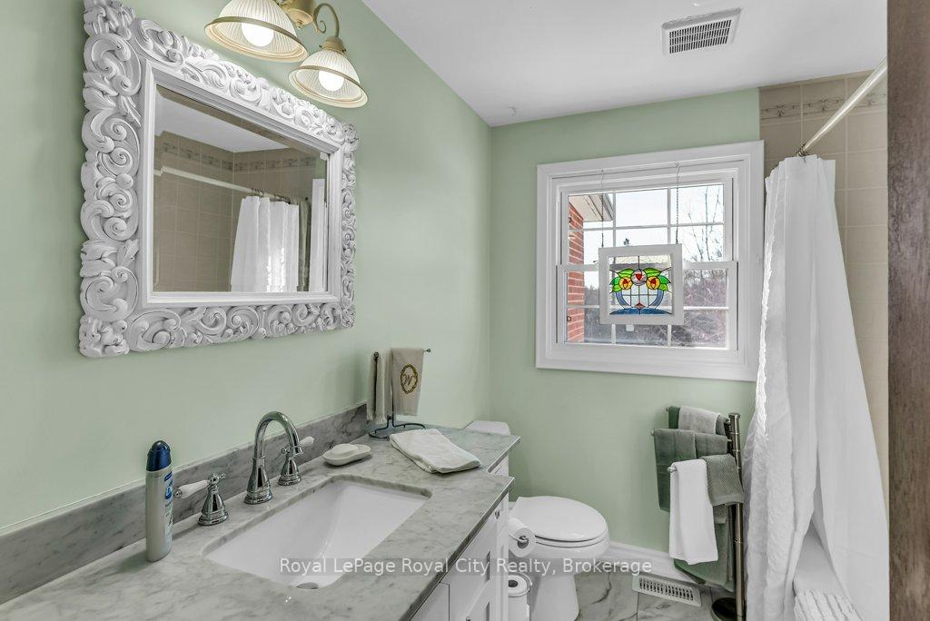 23-Acre Estate | Just East of Guelph & North of Rockwood | Experience the perfect blend of privacy and accessibility with this 23-acre country property. The Residence is Bright, Inviting & Elegant. Built in 1974, this 1,880 sq. ft. red brick two-storey home radiates timeless charm. The interior is designed for both sophisticated entertaining and cozy daily living. Main Floor Features a sunken living room and fireplace, a formal dining room for family dinners, and a sun-drenched solarium perfect for morning coffee. The Heart of the Home is a spacious kitchen and dinette with bow window plus there is a main floor family room with fireplace. The upper level offers three generous bedrooms plus a versatile fourth room-ideal as a nursery, home office, or 4th bedroom. With 3 bathrooms in total, the main bath has been recently updated with stylish new flooring and a vanity topped with a beautiful marble counter. Recent upgrades include, New Windows (2024) for enhanced efficiency and light, New built-in oven and washing machine and replaced roof on the barn. Whether you dream of a hobby farm, an equestrian retreat, or simply a private sanctuary, this property delivers, The Brick Barn is 1,000 sq. ft. structure (originally used for horses) is exceptionally versatile. With its new roof, it is ready for livestock, a workshop, or creative studio space. Roughly 9 acres of private bush await your custom trail system for hiking, riding or ATVs. The remaining acreage is currently rented and farmed, keeping your taxes low and the land well-tended. Enjoy the ultimate “best of both worlds” location. You are minutes away from the amenities of Guelph and Rockwood, yet once you turn into your driveway, the peace of the countryside takes over. This is an ideal setup for a small farm operation, horse enthusiasts, or those looking to escape the city without sacrificing convenience. Your country lifestyle awaits.