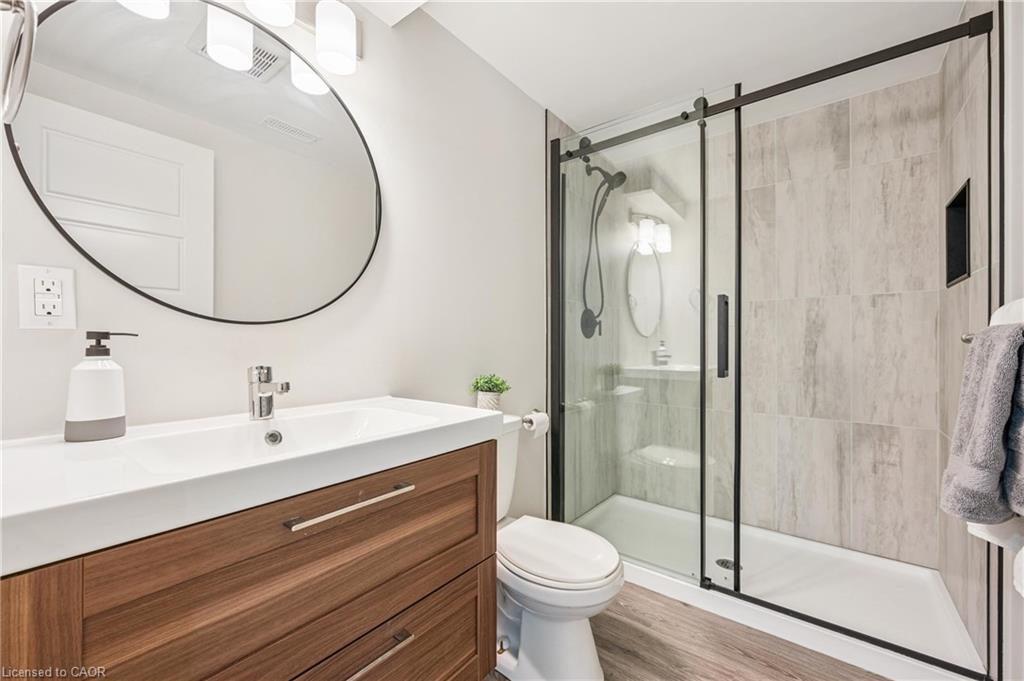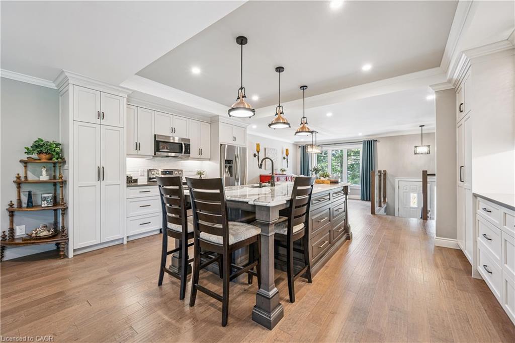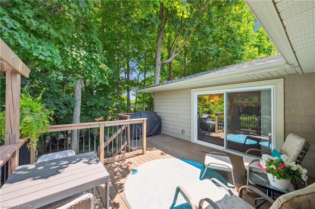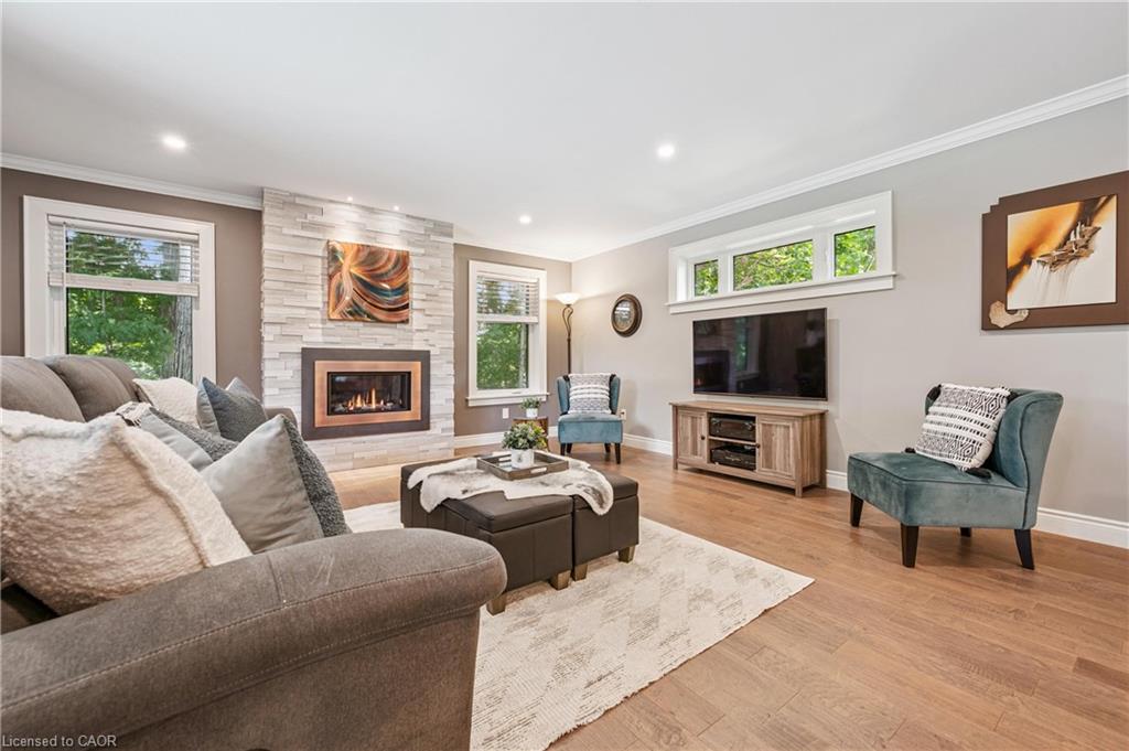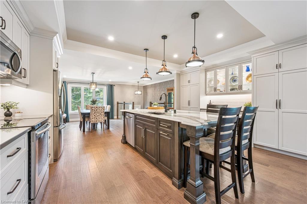 Priced To Sell! Beautifully renovated with in-law potential. This stunning 3 bedroom, 2 bathroom home with large addition is located in the heart of Lakeshore Waterloo, among many walking trails and conveniently located to all amenities including shopping & highway access. The main floor features an addition done in 2018, expanding the living & dining space. A fully custom kitchen renovation is the centerpiece of the home with large island, stone countertops & tons of cabinetry. A large dining room and living room with gas fireplace and extra wide sliders onto the private back deck make this an entertainers dream. Three bedrooms and a bathroom complete the main floor. Enjoy the flexibility of a fully finished, walk-out basement that can be accessed with no stairs through the 2 car garage or the siding doors from the back yard. The basement features a newly renovated 3 piece bathroom, laundry and more than enough space to add a kitchen, living room and bedroom if you choose. Located on a quiet court with a very private yard & tons of mature tree’s. This lovingly maintained raised bungalow has seen many improvements over the years such as Exterior doors & windows (2013 – 2018), Roof (half in 2018, the other half in 2013), Furnace (2016) A/C, Owned water heater, new siding, eaves with gutter guards & additional insulation (2018).
