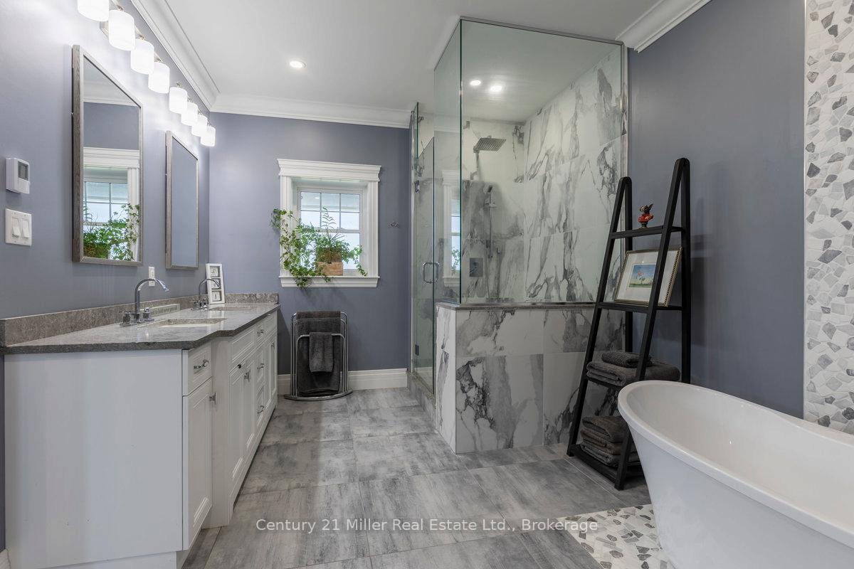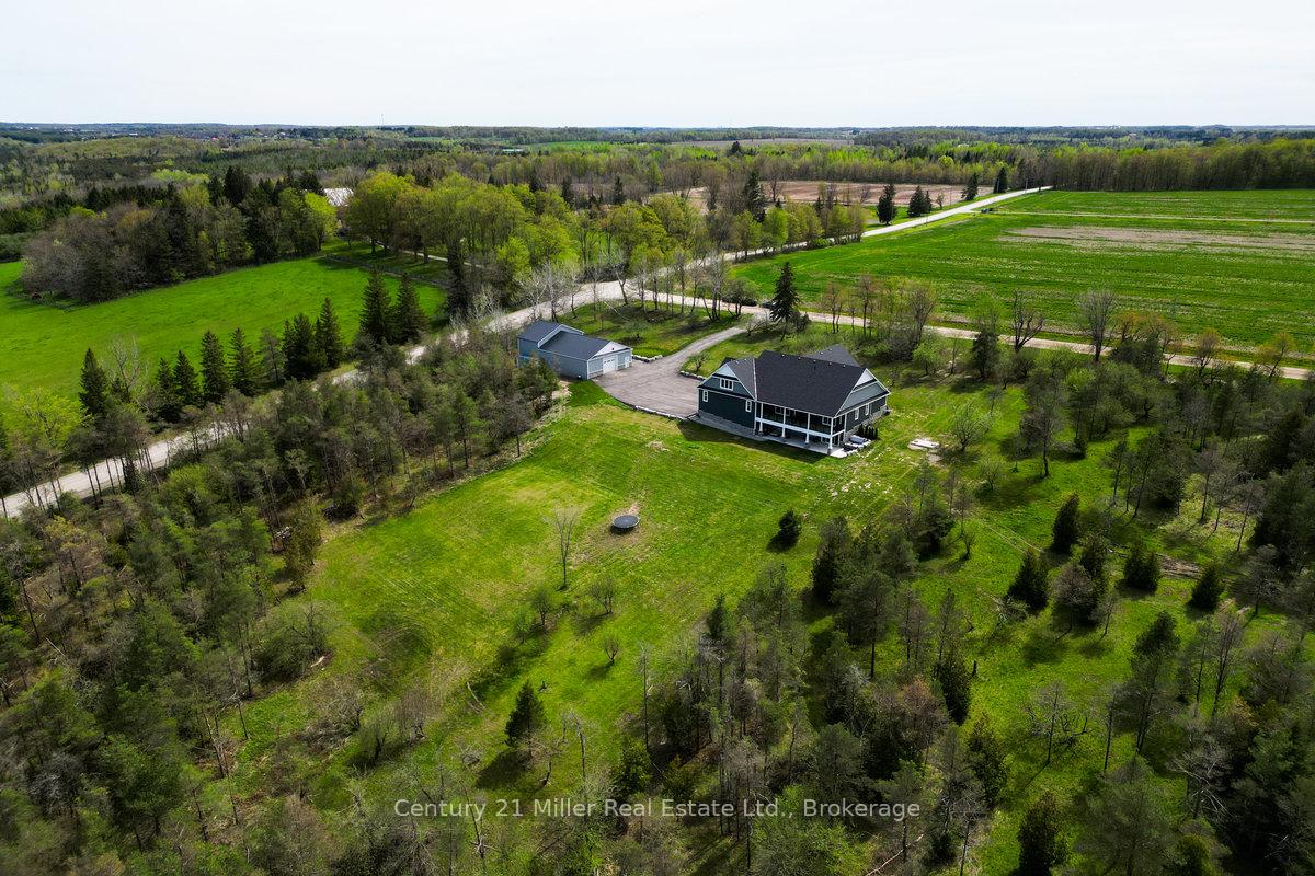 Welcome to 5583 Third Line – a stunning custom-built country estate where craftsmanship, modern luxury, and efficiency meet. Built in 2021, this exceptional bungaloft residence was built with insulated concrete form (ICF) construction for superior energy efficiency, durability, and comfort – a true standout in today’s market. The thoughtfully designed main level showcases an open-concept layout with soaring ceilings, wide-plank flooring, and abundant natural light. The gourmet kitchen features premium cabinetry, quartz countertops, a large island, and seamless flow to the dining and great room – ideal for entertaining or quiet family evenings. The main-floor primary suite offers a spa-inspired ensuite and walk-in closet, providing a luxurious retreat with views of the surrounding countryside. Upstairs, a private second-level suite includes a spacious bedroom, den, and full ensuite – perfect for guests or extended family. The fully finished lower level expands the living space with a 2-bedroom, 2-bathroom in-law suite complete with its own kitchen, living area, and walkout to the backyard. Additional lower-level highlights include a home theatre, exercise room, and ample storage. For the hobbyist or business owner, this property delivers unparalleled versatility: an attached 4-car garage with 16-foot ceilings plus a 40′ x 65′ detached shop, also constructed with ICF, featuring a loft for added workspace or storage. Set on a private, scenic lot in the rolling hills of Erin, this property combines rural tranquility with sophisticated living – just minutes from town amenities and an easy commute to the GTA, Guelph, and Georgetown. Built to the highest standards and designed for modern multi-generational living, 5583 Third Line is more than a home – it’s a lifestyle statement.