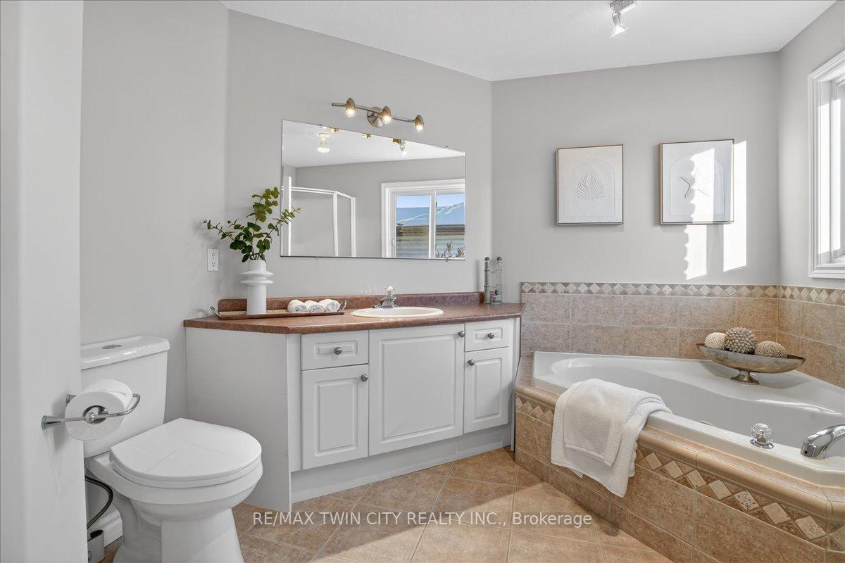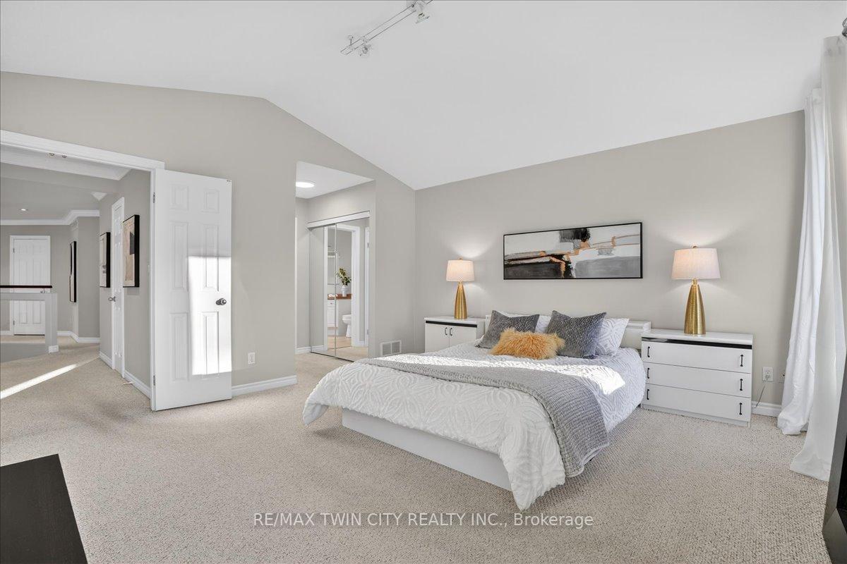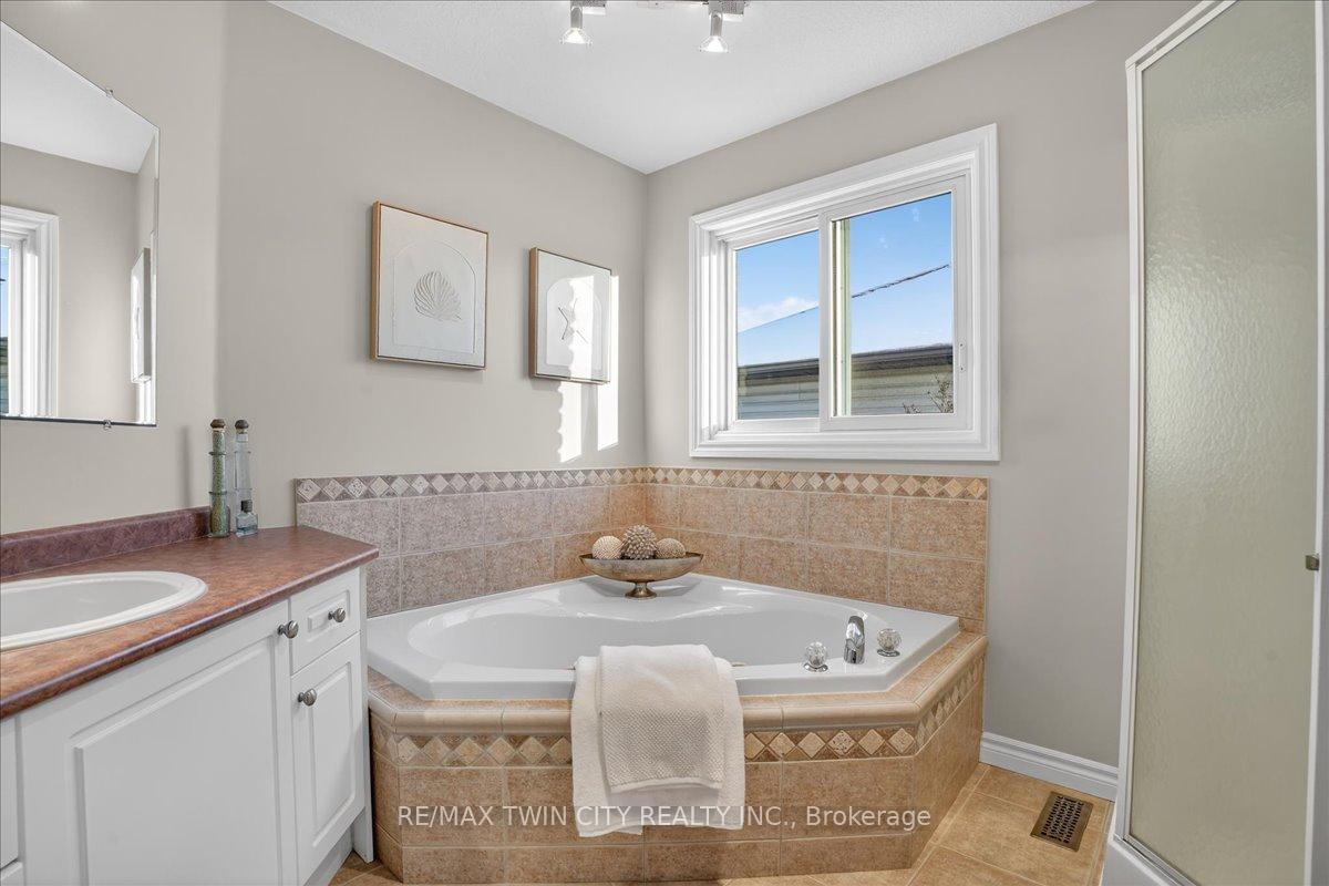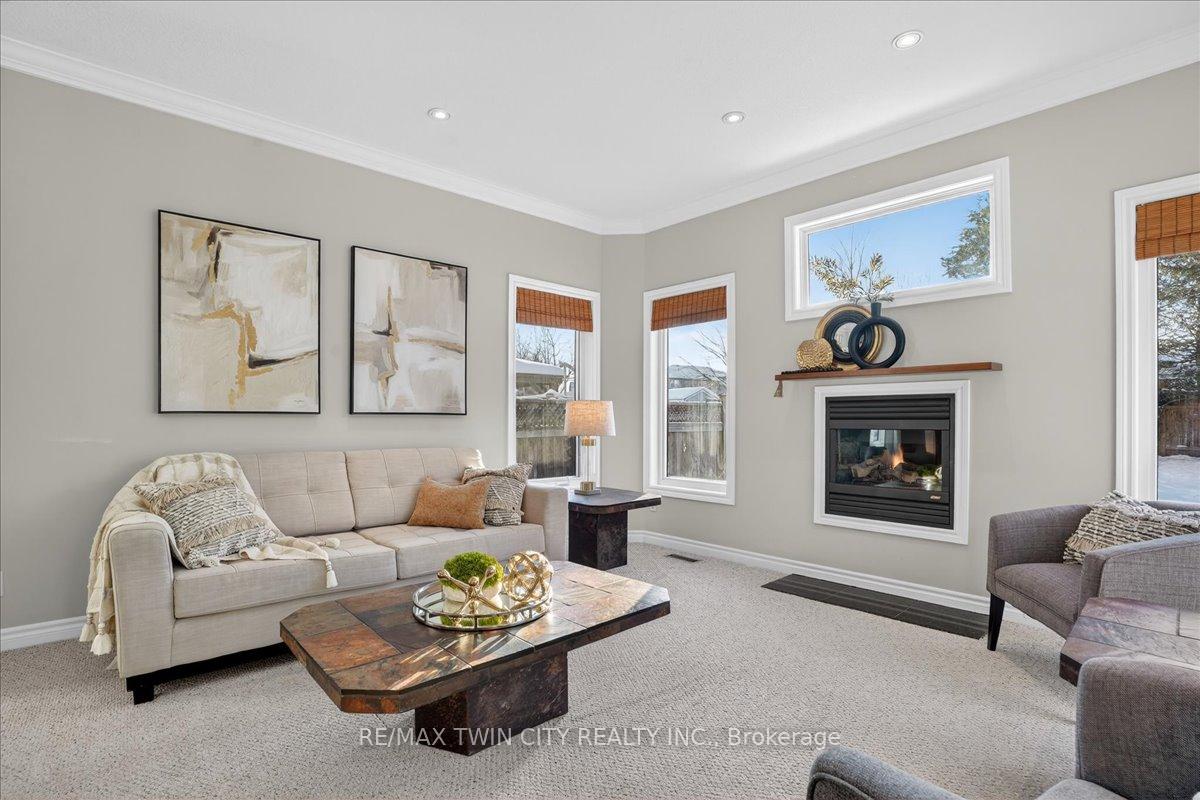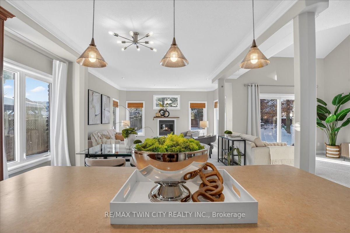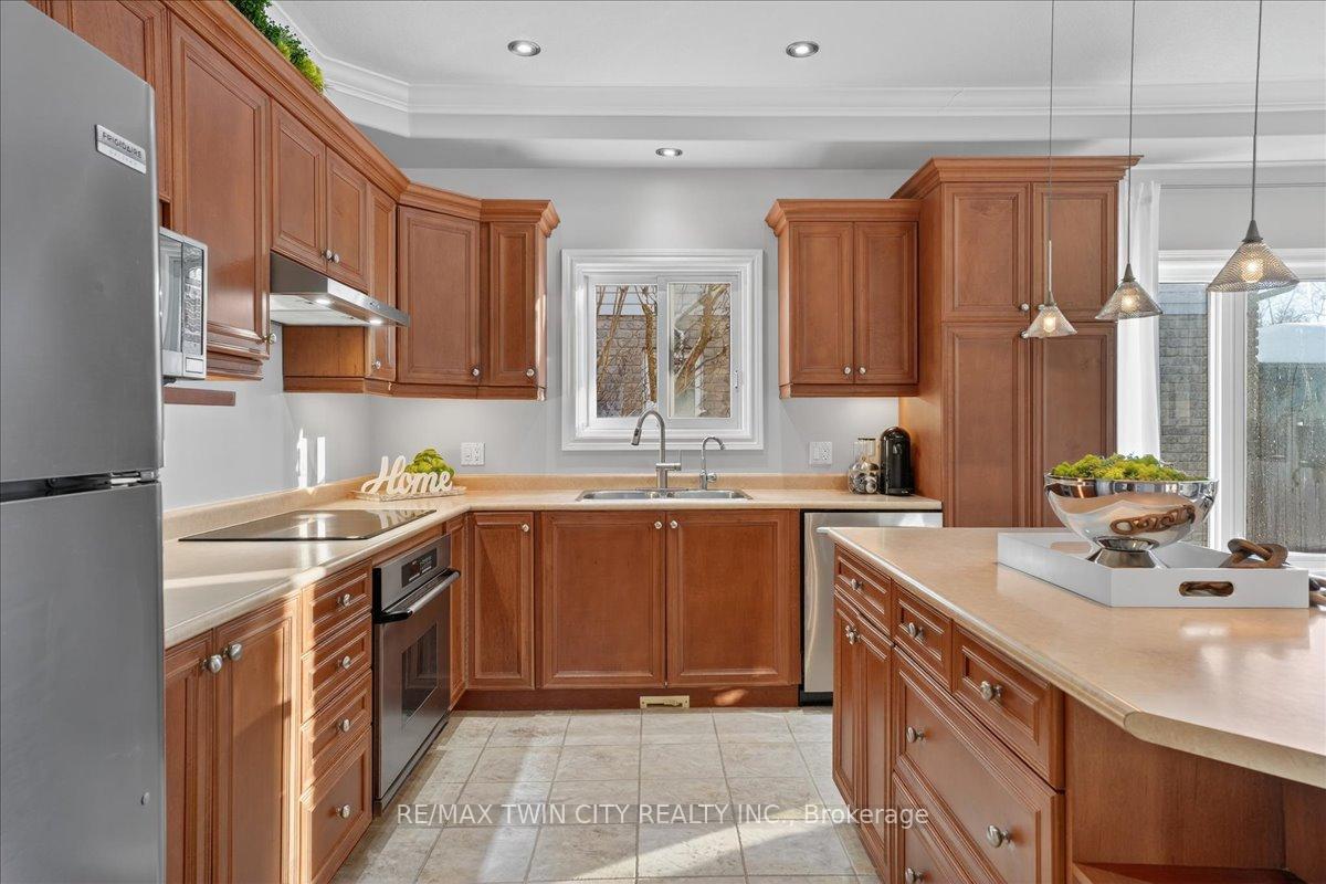 Stunning, custom-built by Cameo Homes, 3 bedroom, 3 bathroom home located across from two of Waterloo’s highly rated schools in Prime Eastbridge, best family neighbourhood! Exterior is all stone and brick with a grand entrance and impressive street curb appeal. Upon entering you will be greeted by the 2 storey open foyer with glass panel staircase and a sun-filled contemporary main floor that offers 9′ ceilings and a unique open design featuring large Living Rom with gas fireplace, Dining Room, Family Room with vaulted ceiling open to above, and sliders to a large pool-sized backyard with gas line for BBQ. The large maple Kitchen seamlessly blends with the open area and is equipped with Stainless Steel appliances, ample cabinets, pantry, centre island and lots of counter space. It’s a great open main floor to entertain family and friends. The upper level features 3 generous sized Bedrooms including large Primary with walk-in closet, 4 piece luxury Ensuite with corner Whirlpool tub and stand-up shower. Recent updates include roof (2018), water heater owned (2020) & sump pump (2025). Internet cabling (CAT-5-E) throughout the house and COAX cabling (6-R-G). Located minutes to RIM Park, Conestoga Mall, Grey Silo Golf course, Grand River trails, soccer fields and quick access to major highways.