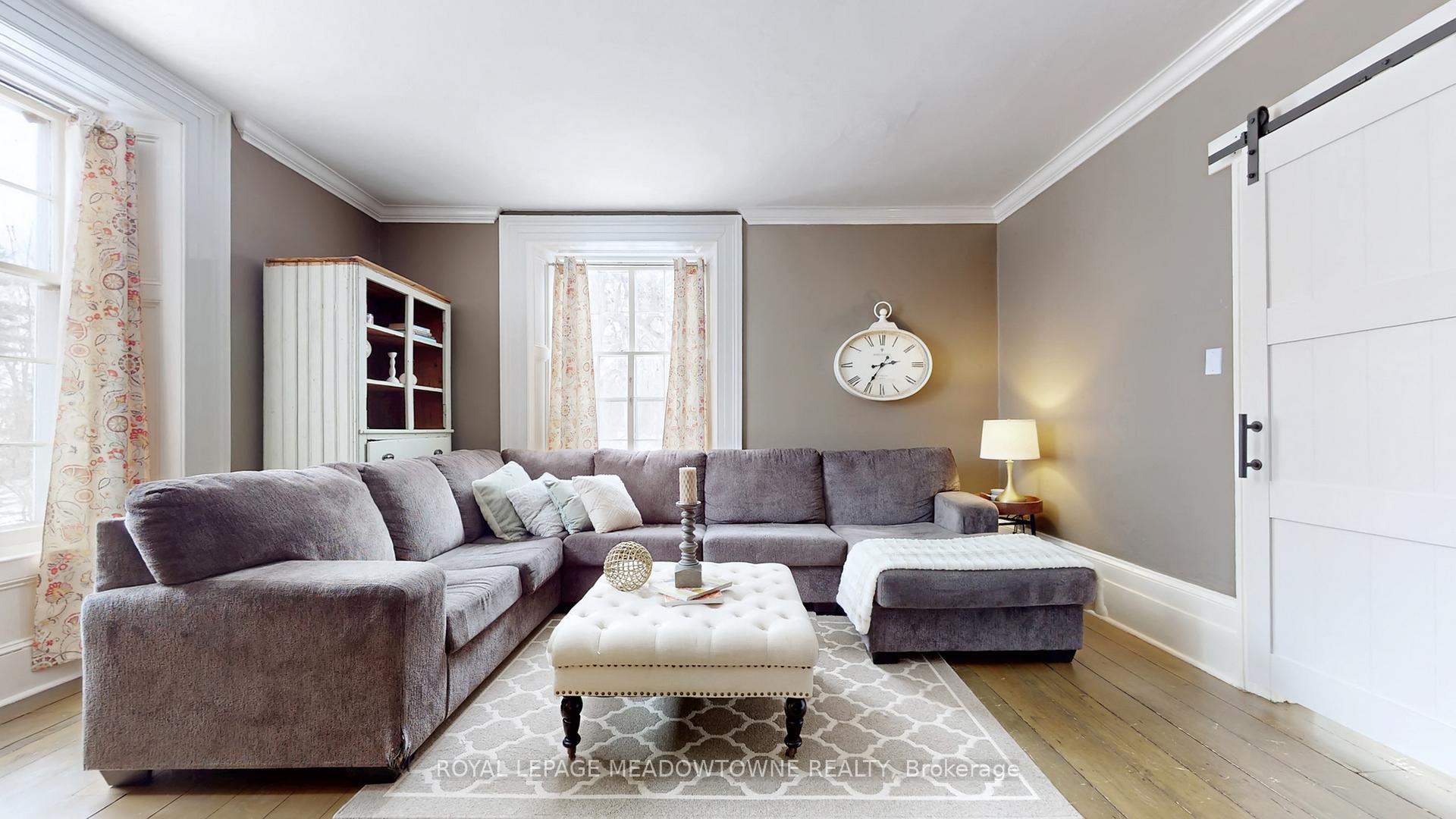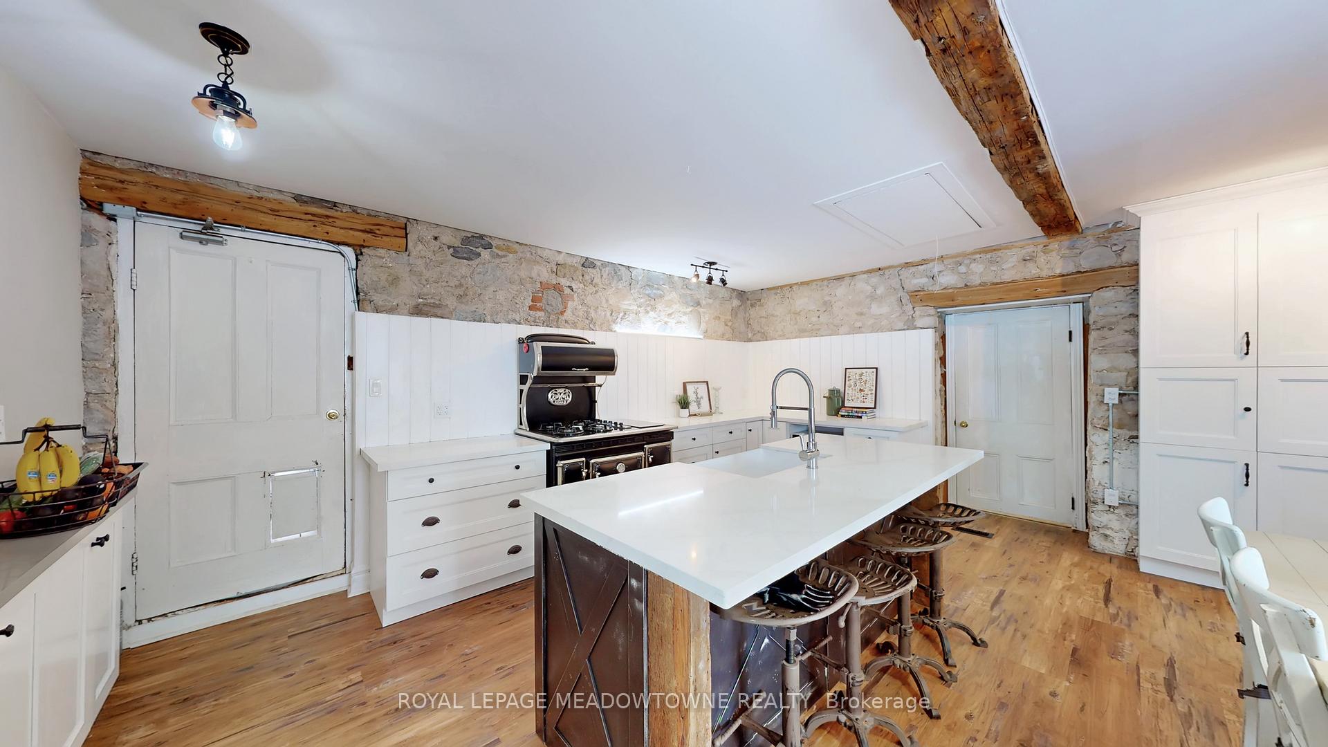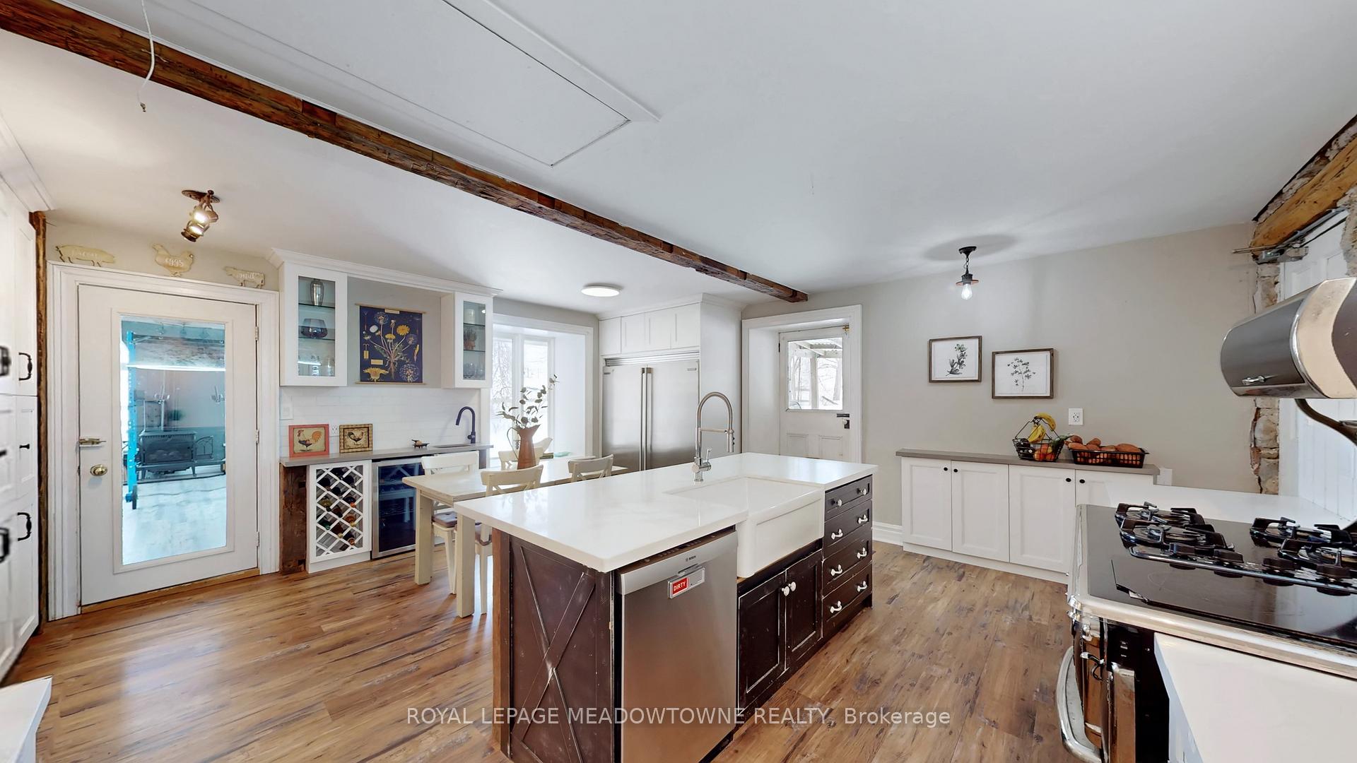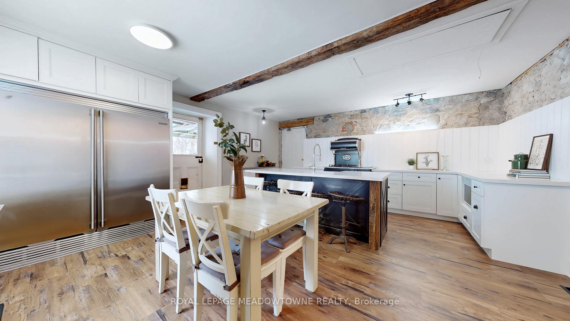 Step away from the ordinary in this welcoming 3,442+ sf, 4 bdrm, 4 bath century home ideal for families seeking space, privacy and a connection to nature. This treasured home blends timeless character on a private 10-acre setting for the ideal hobby farm. You will be transported back in time with a warm with soaring ceilings, open hearth wood-burning fireplaces, deep window sills, and original details. The unique and versatile floor plan can accommodate extended family needs. The recently renovated kitchen showcases a striking stone wall with timber beam accents, stone countertops, hardwood flooring, a vintage-style Elmira Stove, and a centre island with breakfast bar. Separate family, living, and dining rooms provide ample space for both everyday living and special occasions. The formal dining room currently serves as a main-floor primary bedroom, complete with a walk-in closet/office. The 2nd dining and currently used as a gym features oversized windows, a striking stone wall, and ample space for a harvest table, with a walkout to the garden. More conveniences include an enclosed sunroom, a mudroom with access to the 2 car garage, main-floor laundry, and a stately wood staircase to the bedrooms. Enjoy a pool area, views of a tranquil pond, a vegetable garden, storage & barn and gently rolling open fields that are perfect for exploring and pasture. An energy-efficient heat pump for heat and air conditioning (2019), R50 attic insulation, and updated asphalt shingles. Versatile outbuildings and an attached two-car garage offer ample space for cars, hobbies, toys, motorbike, outdoor gear and more. A generous driveway and laneway provide plenty of parking for cars, trucks and campers. All this is located just minutes from town amenities, schools, churches, Blue Springs Golf Club, and the GO Train station offering the perfect blend of country living and Town convenience.