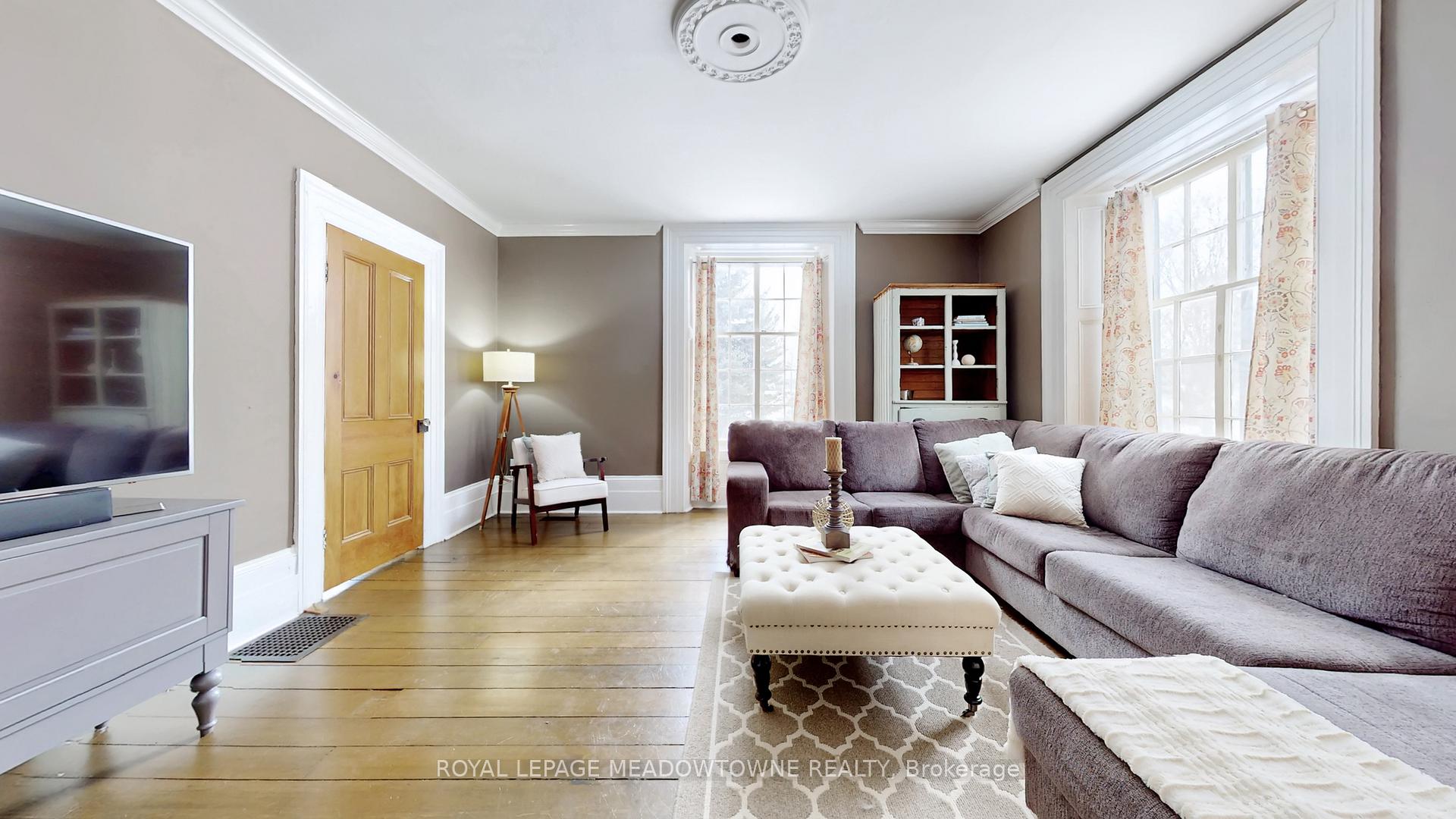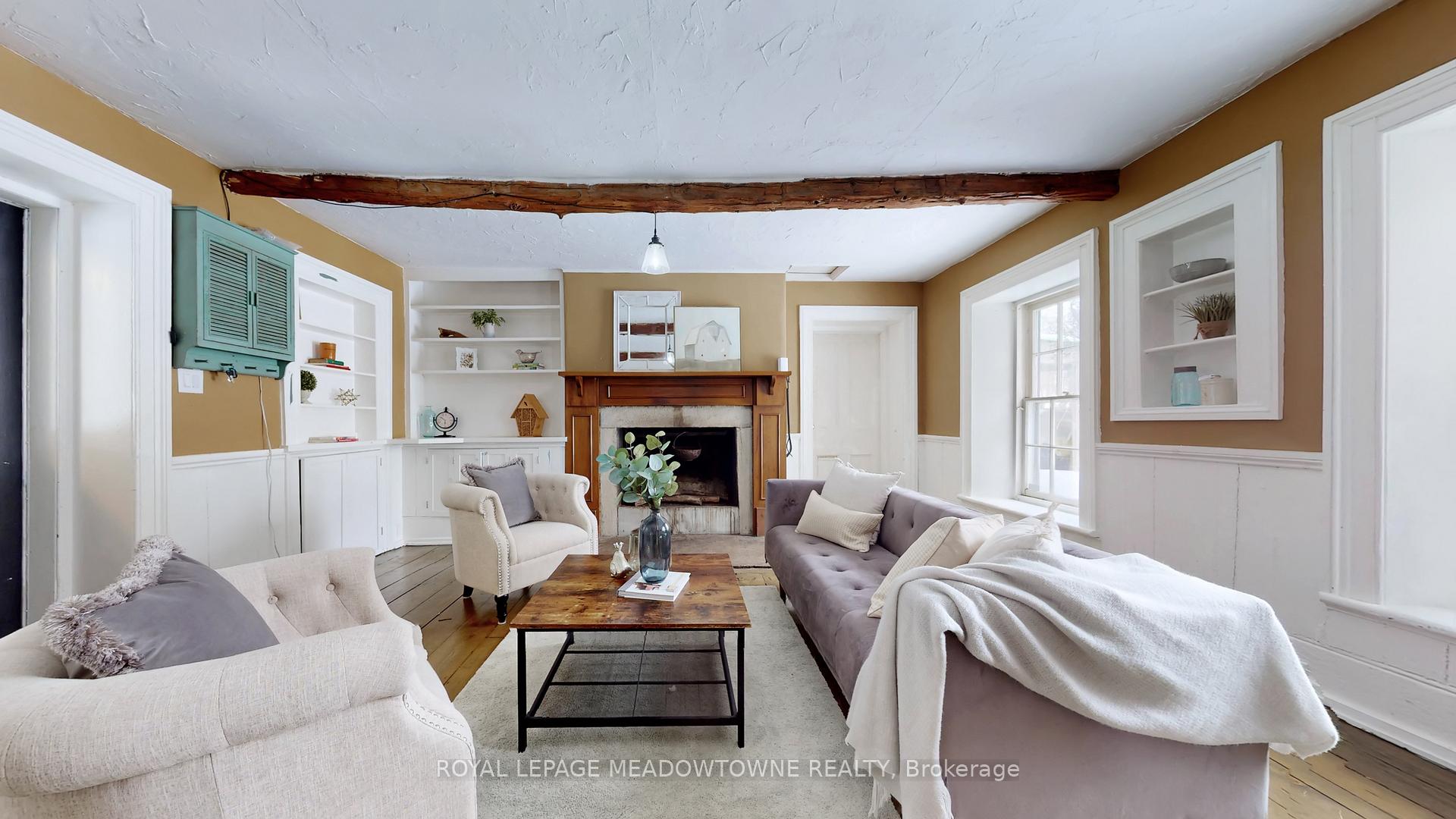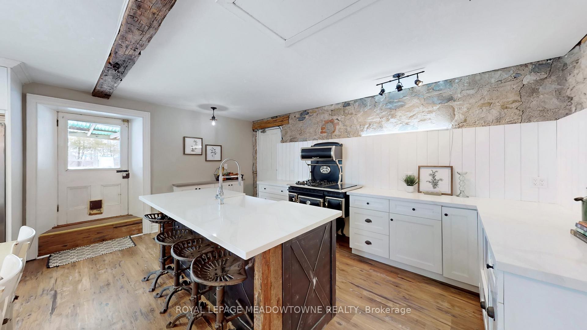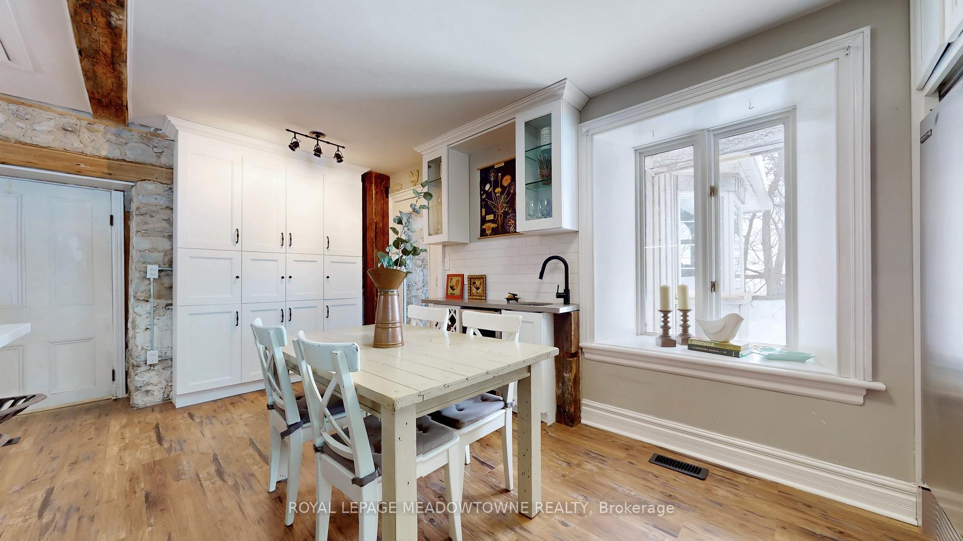 Step away from the ordinary in this welcoming 3,442+ sf, 4 bdrm, 4 bath century home ideal for families seeking space, privacy and a connection to nature. This treasured home blends timeless character on a private 10-acre setting for the ideal hobby farm. You will be transported back in time with a warm with soaring ceilings, open hearth wood-burning fireplaces, deep window sills, and original details. The unique and versatile floor plan can accommodate extended family needs. The recently renovated kitchen showcases a striking stone wall with timber beam accents, stone countertops, hardwood flooring, a vintage-style Elmira Stove, and a centre island with breakfast bar. Separate family, living, and dining rooms provide ample space for both everyday living and special occasions. The formal dining room currently serves as a main-floor primary bedroom, complete with a walk-in closet/office. The 2nd dining and currently used as a gym features oversized windows, a striking stone wall, and ample space for a harvest table, with a walkout to the garden. More conveniences include an enclosed sunroom, a mudroom with access to the 2 car garage, main-floor laundry, and a stately wood staircase to the bedrooms. Enjoy a pool area, views of a tranquil pond, a vegetable garden, storage & barn and gently rolling open fields that are perfect for exploring and pasture. An energy-efficient heat pump for heat and air conditioning (2019), R50 attic insulation, and updated asphalt shingles. Versatile outbuildings and an attached two-car garage offer ample space for cars, hobbies, toys, motorbike, outdoor gear and more. A generous driveway and laneway provide plenty of parking for cars, trucks and campers. All this is located just minutes from town amenities, schools, churches, Blue Springs Golf Club, and the GO Train station offering the perfect blend of country living and Town convenience.