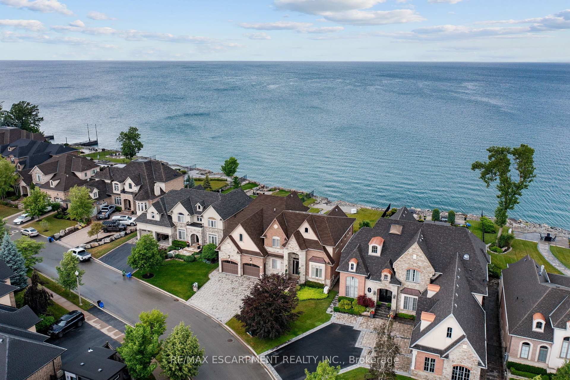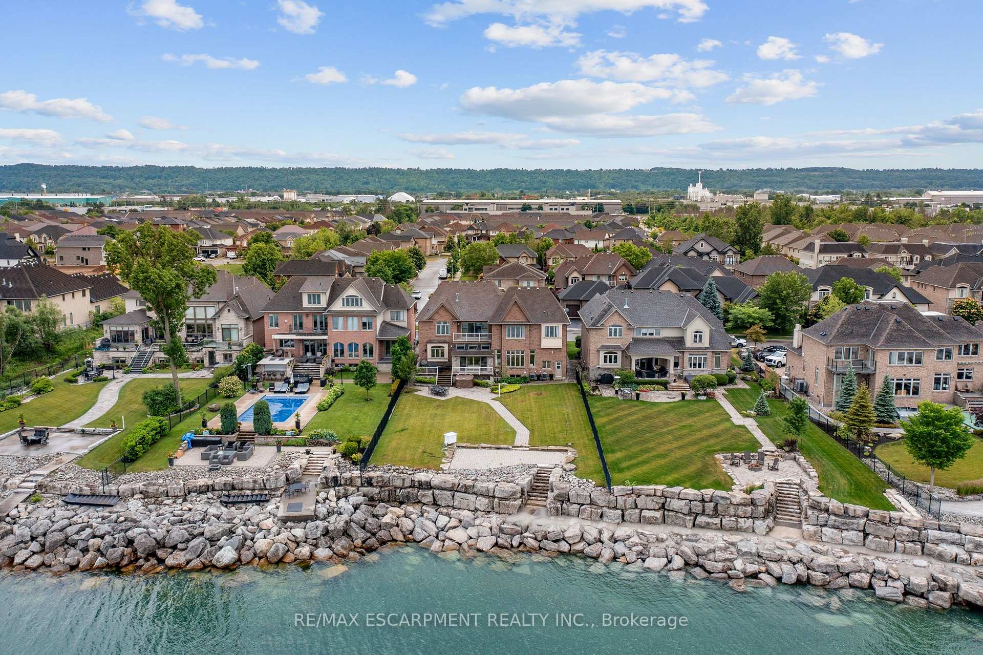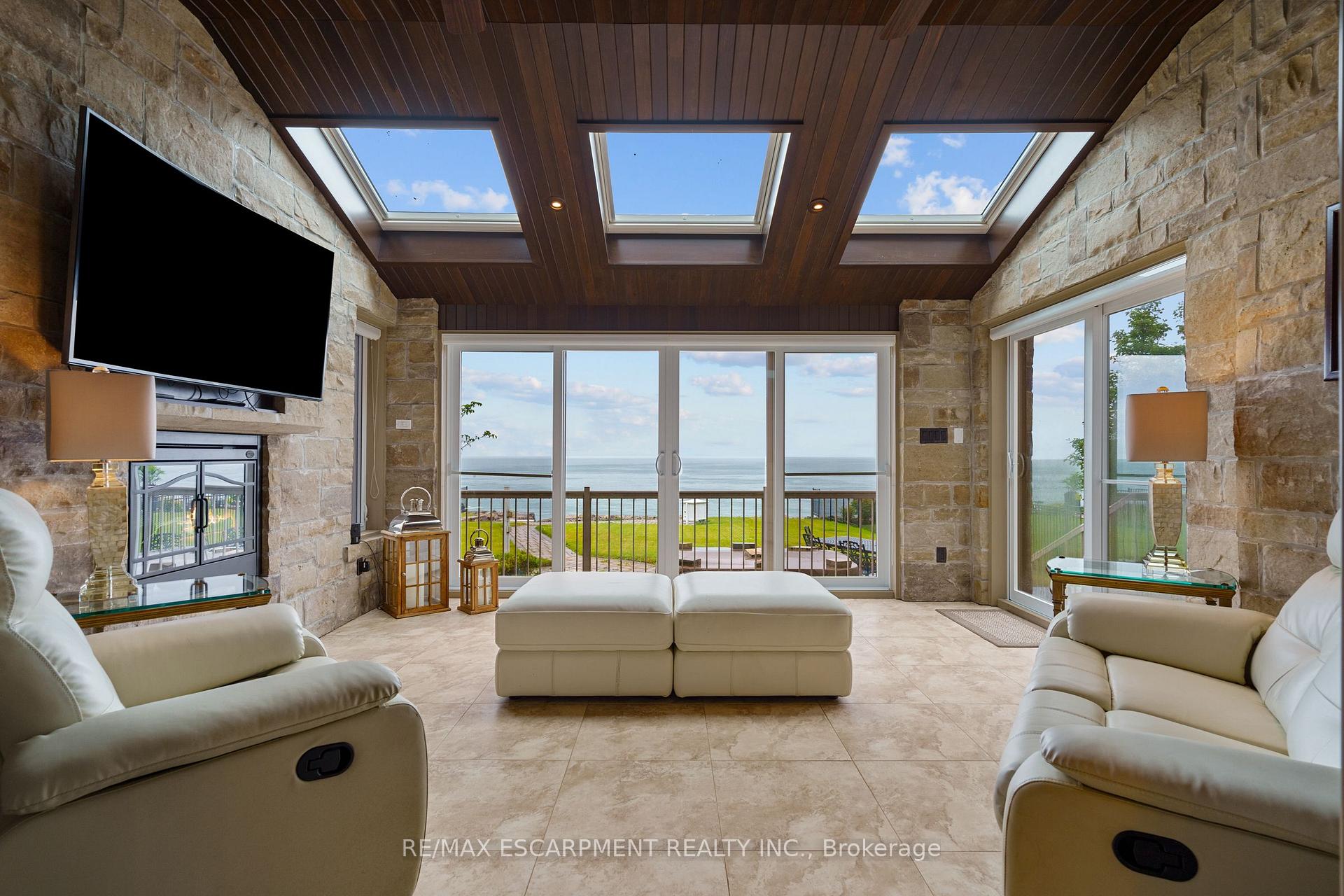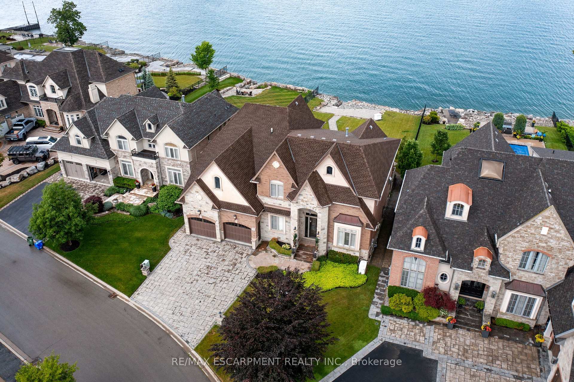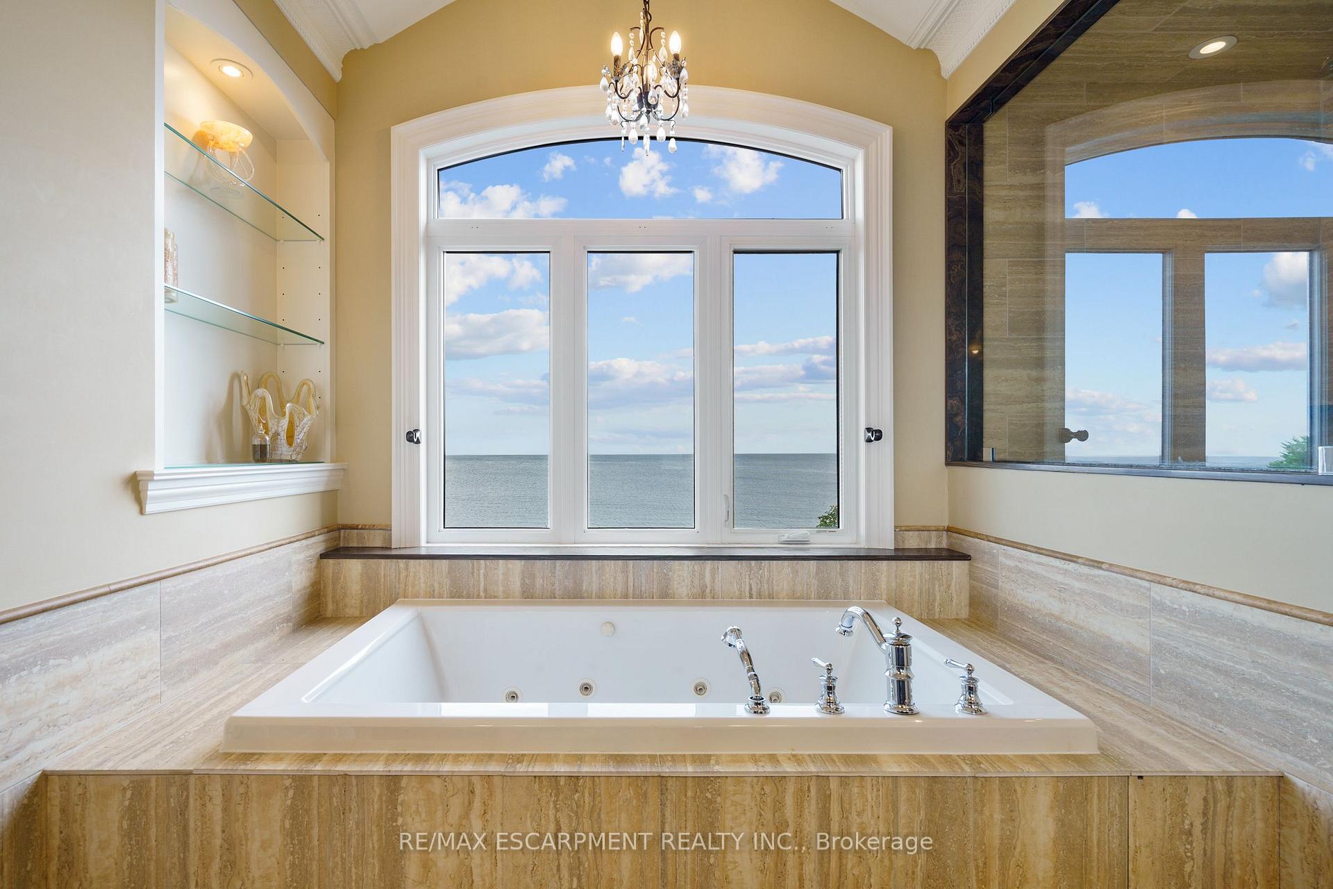 Welcome to 56 Aquamarine Drive a luxurious 4700 sq ft custom waterfront home with direct lake access, private elevator, and a triple car garage with vehicle/boat lifts. This 4 bed, 6 bath masterpiece offers high-end finishes throughout, including a gourmet Viking kitchen, grand dining room, sunroom with skylights, and multiple fireplaces. Each bedroom features its own ensuite, ideal for multigenerational living. The primary suite offers a lakeview balcony, spa-like bath, and fireplace. Enjoy a 14 swim spa, beautifully landscaped yard, new seawall, and upper/lower patios overlooking the lake. Located on a quiet court near marinas, highways, shopping, and Niagara wine country.