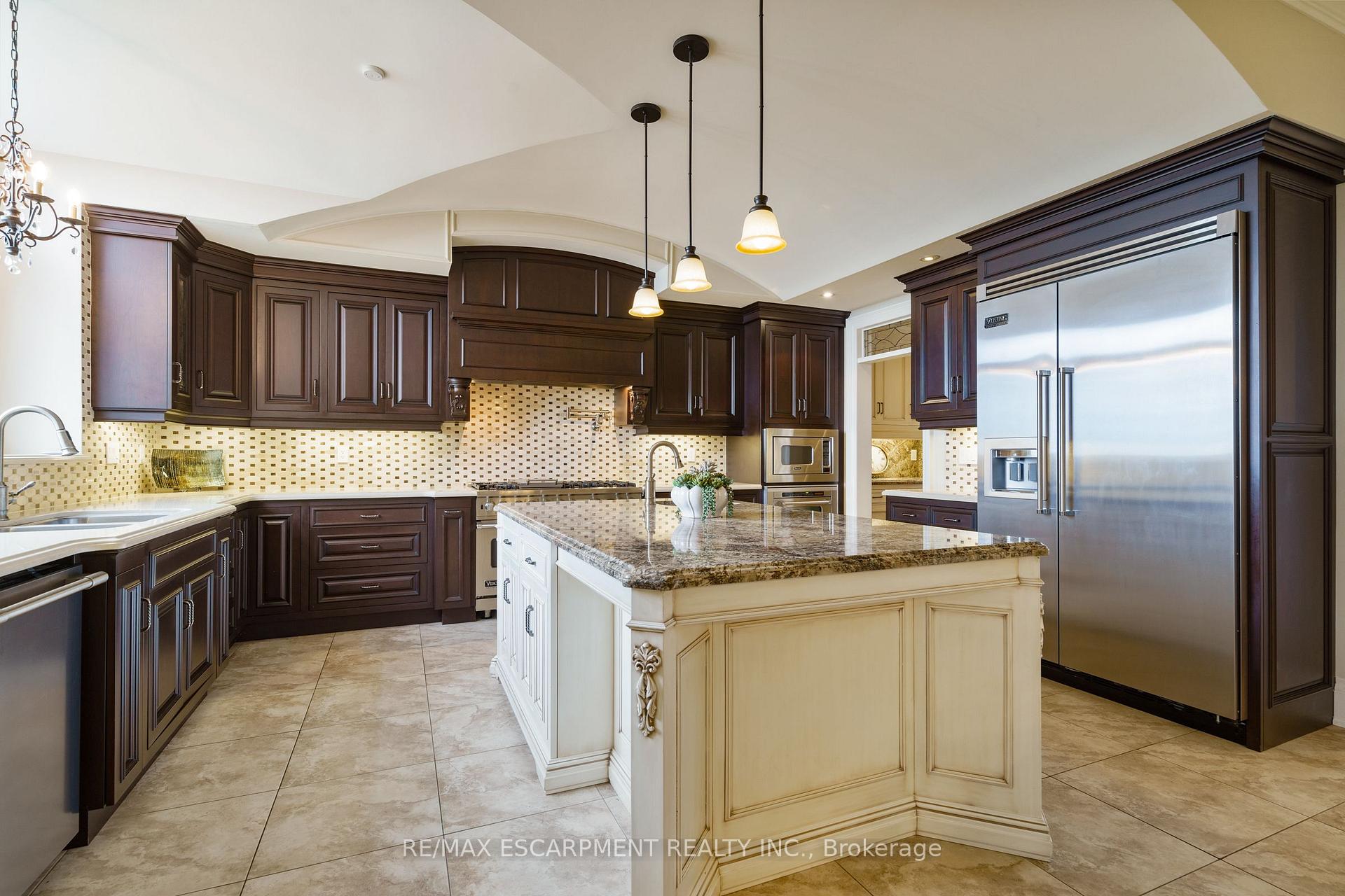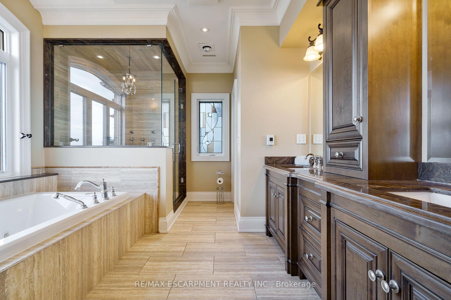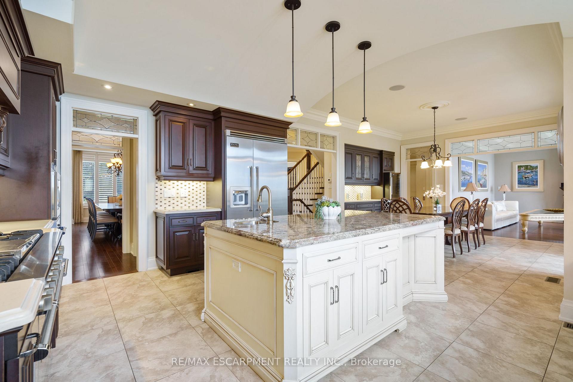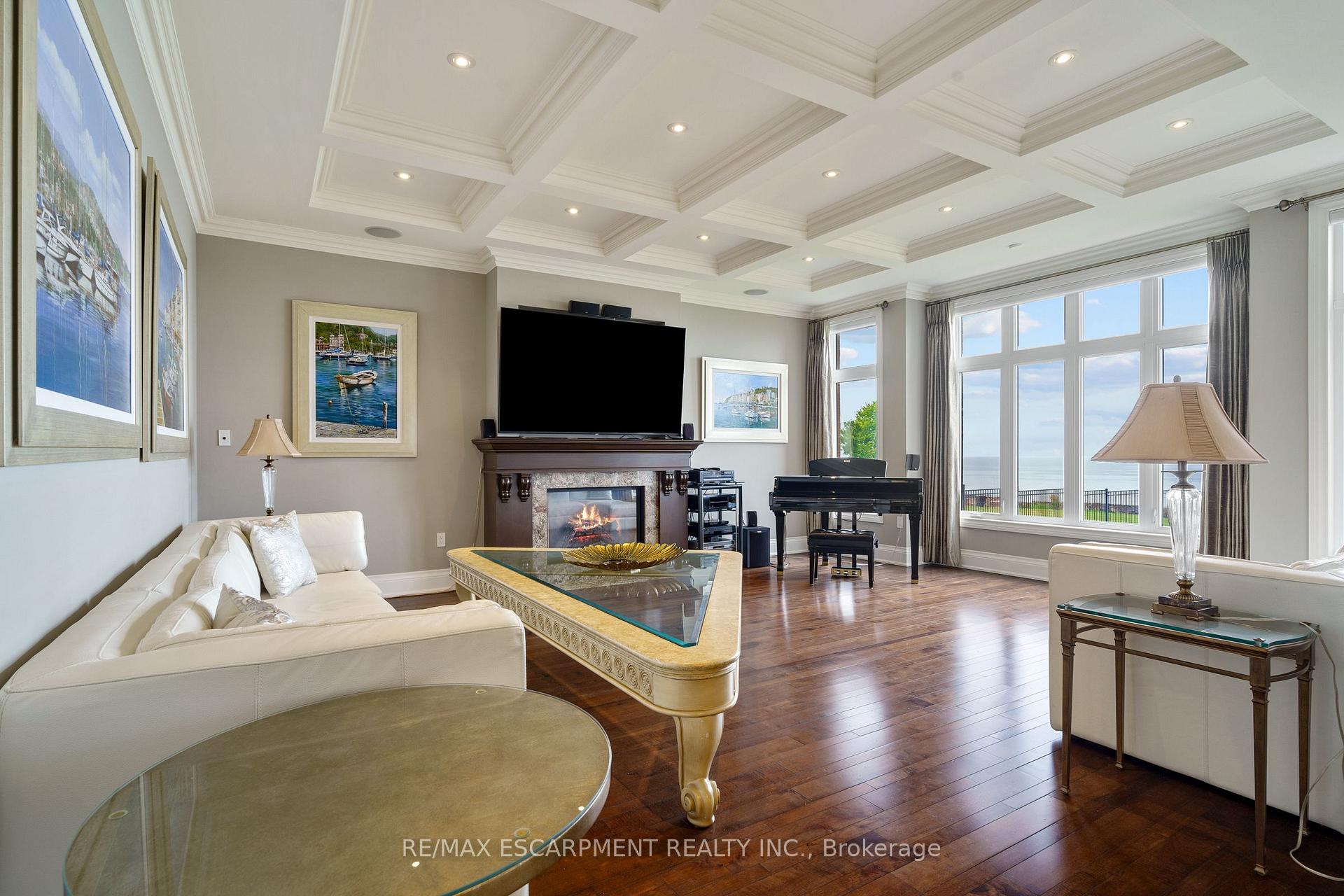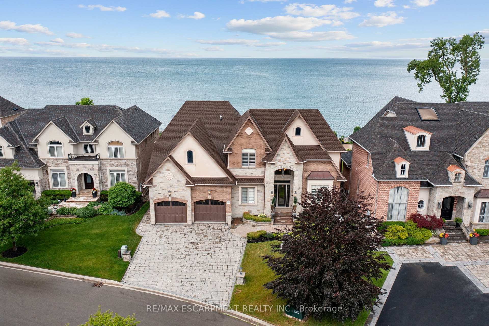 Welcome to 56 Aquamarine Drive a luxurious 4700 sq ft custom waterfront home with direct lake access, private elevator, and a triple car garage with vehicle/boat lifts. This 4 bed, 6 bath masterpiece offers high-end finishes throughout, including a gourmet Viking kitchen, grand dining room, sunroom with skylights, and multiple fireplaces. Each bedroom features its own ensuite, ideal for multigenerational living. The primary suite offers a lakeview balcony, spa-like bath, and fireplace. Enjoy a 14 swim spa, beautifully landscaped yard, new seawall, and upper/lower patios overlooking the lake. Located on a quiet court near marinas, highways, shopping, and Niagara wine country.