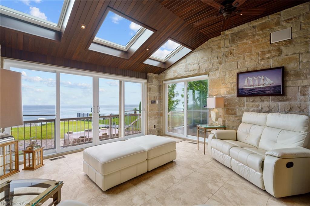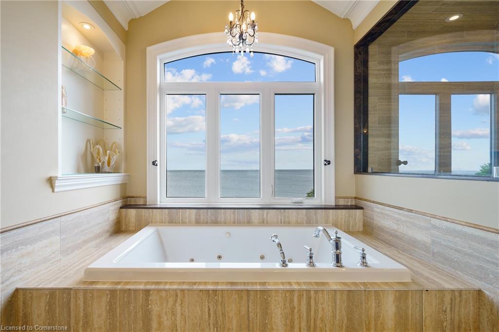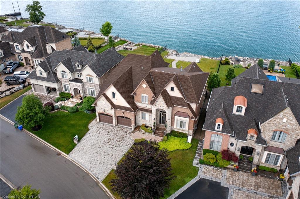 Welcome to 56 Aquamarine Drive — a luxurious 4700 sq ft custom waterfront home with direct lake access, private elevator, and a triple car garage with vehicle/boat lifts. This 4 bed, 6 bath masterpiece offers high-end finishes throughout, including a gourmet Viking kitchen, grand dining room, sunroom with skylights, and multiple fireplaces. Each bedroom features its own ensuite, ideal for multigenerational living. The primary suite offers a lakeview balcony, spa-like bath, and fireplace. Enjoy a 14’ swim spa, beautifully landscaped yard, new seawall, and upper/lower patios overlooking the lake. Located on a quiet court near marinas, highways, shopping, and Niagara wine country. Luxury Certified.