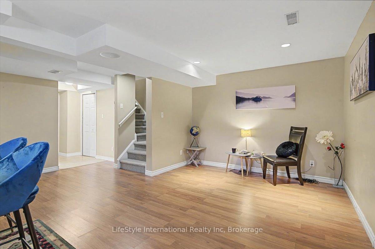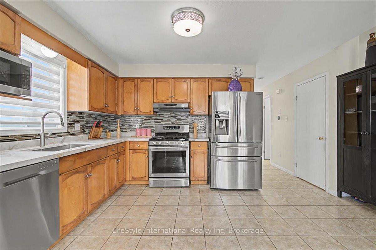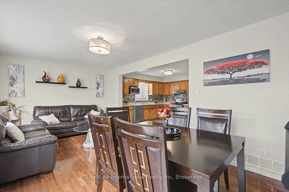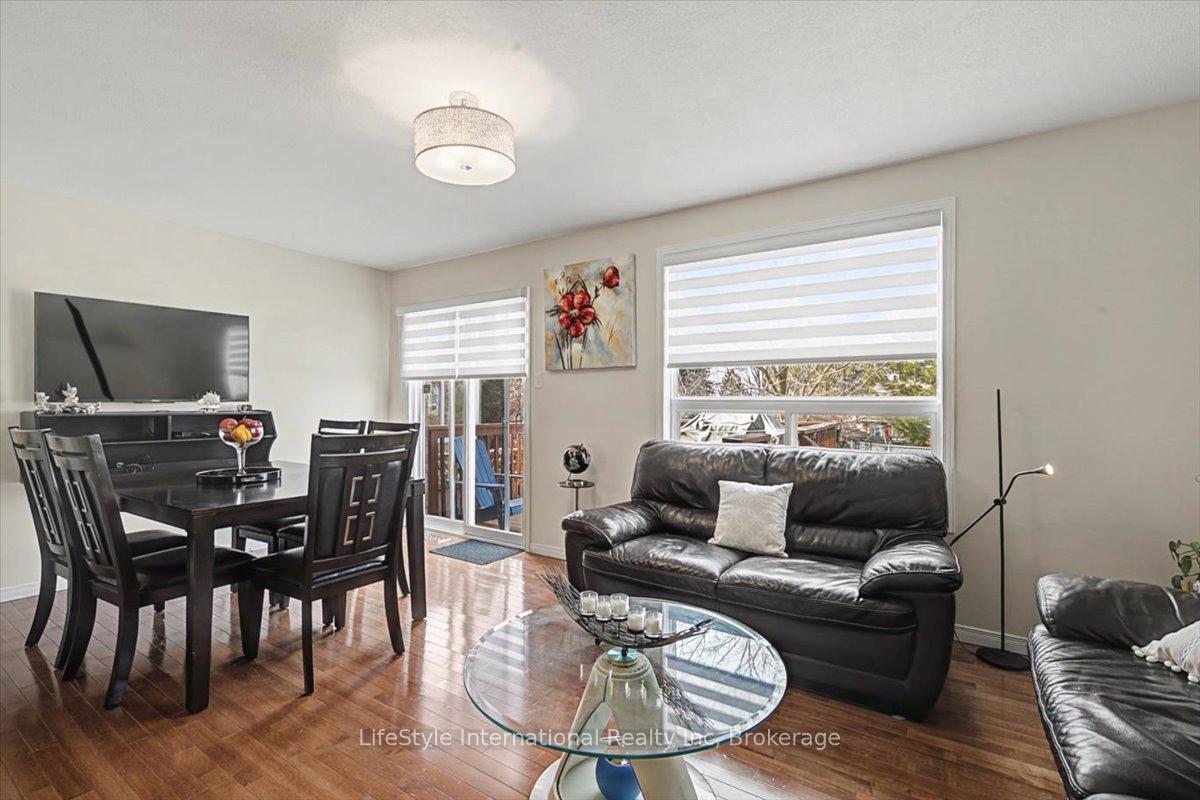 Welcome to 56 Raspberry Lane! This freehold semi-detached home offers 3 bedrooms, 3.5 bathrooms, and a finished basement. The open-concept main floor features bright living and dining areas with hardwood floors, a stylish kitchen with stainless steel appliances and new quartz countertops, and a convenient powder room. Sliding doors open to a private, fully fenced Pie shaped large backyard with a deck. Upstairs, the primary bedroom includes a walk-in closet and 4-piece ensuite, while two additional bedrooms share a full 4-piece bathroom, both with new quartz countertops. The finished basement adds extra living space with a recreation room, 3-piece bathroom with tiled shower, laundry, and storage. The roof and skylight were updated in 2017. With plenty of storage throughout and a location close to parks, schools, and commuter routes, this home is ready for you to move in. Book your safe, private viewing today