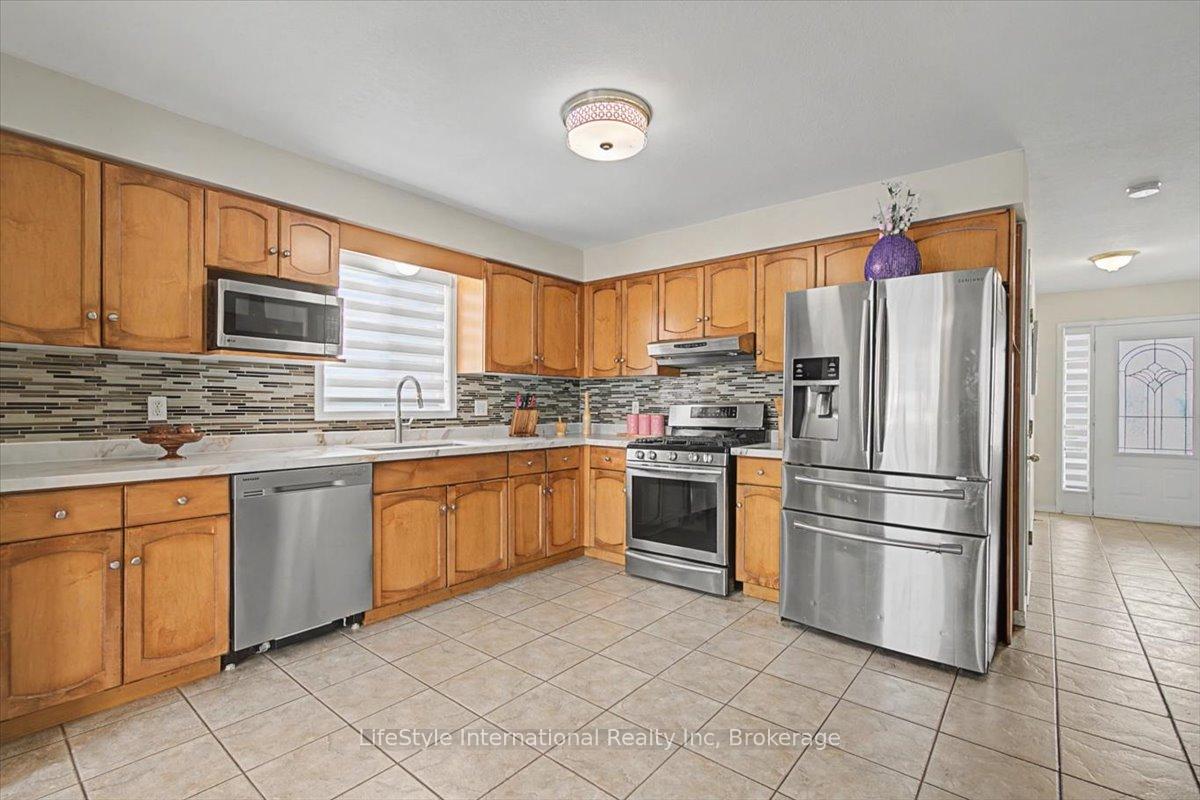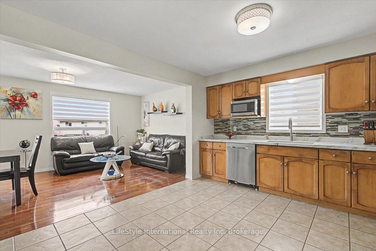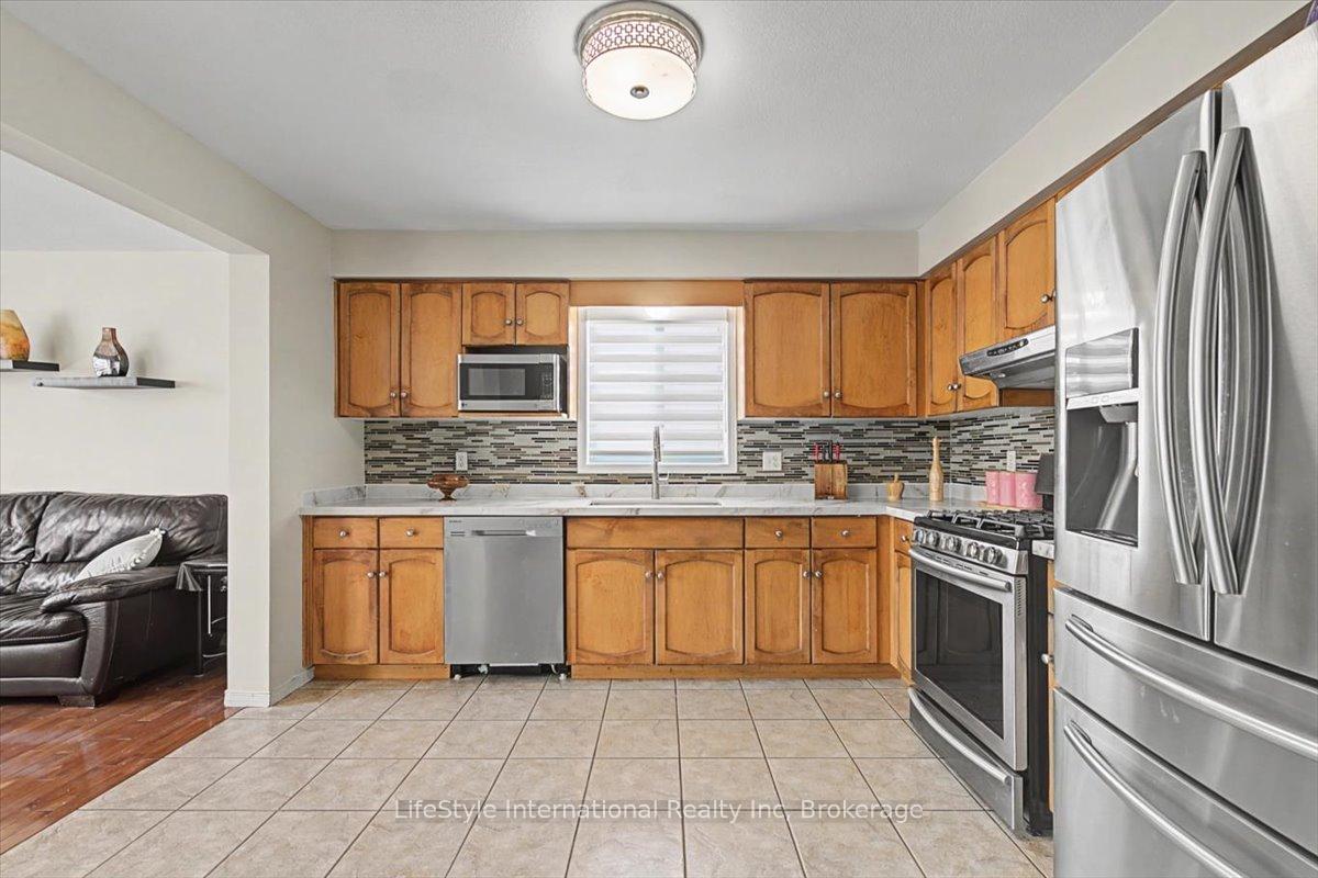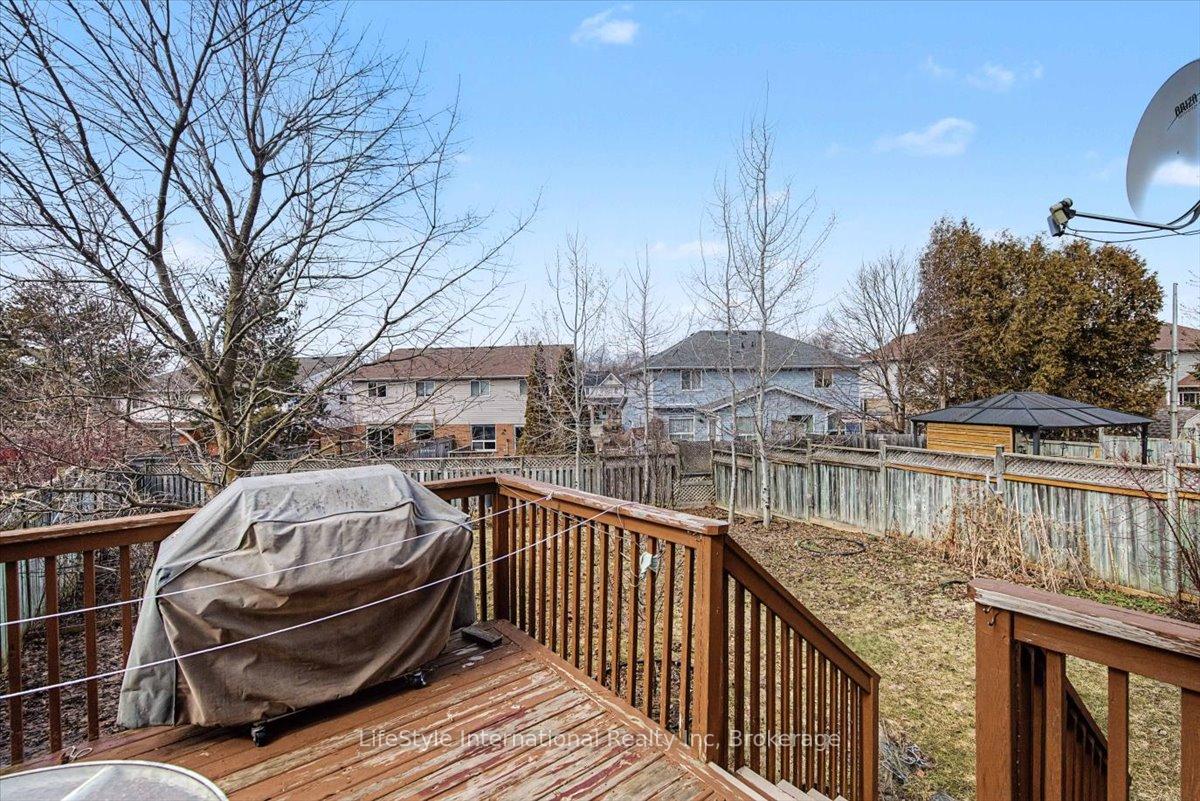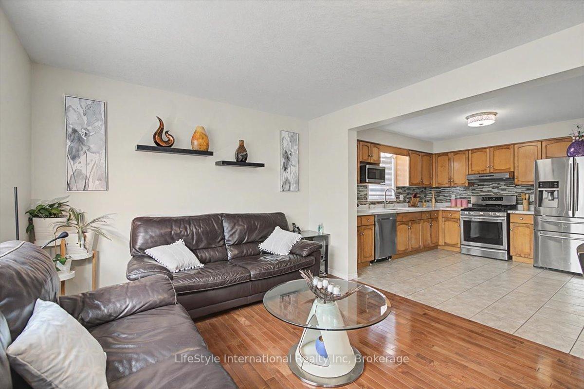 Welcome to 56 Raspberry Lane! This freehold semi-detached home offers 3 bedrooms, 3.5 bathrooms, and a finished basement. The open-concept main floor features bright living and dining areas with hardwood floors, a stylish kitchen with stainless steel appliances and new quartz countertops, and a convenient powder room. Sliding doors open to a private, fully fenced Pie shaped large backyard with a deck. Upstairs, the primary bedroom includes a walk-in closet and 4-piece ensuite, while two additional bedrooms share a full 4-piece bathroom, both with new quartz countertops. The finished basement adds extra living space with a recreation room, 3-piece bathroom with tiled shower, laundry, and storage. The roof and skylight were updated in 2017. With plenty of storage throughout and a location close to parks, schools, and commuter routes, this home is ready for you to move in. Book your safe, private viewing today