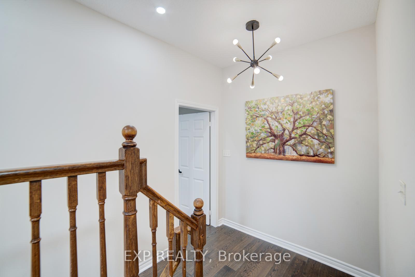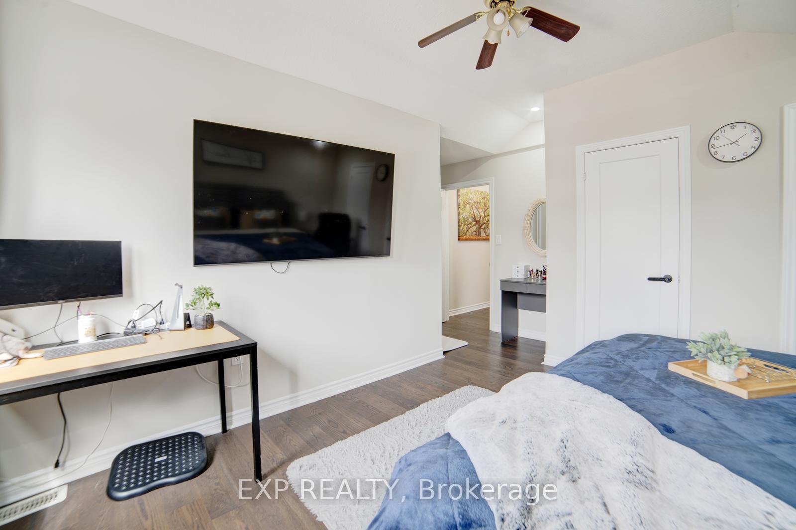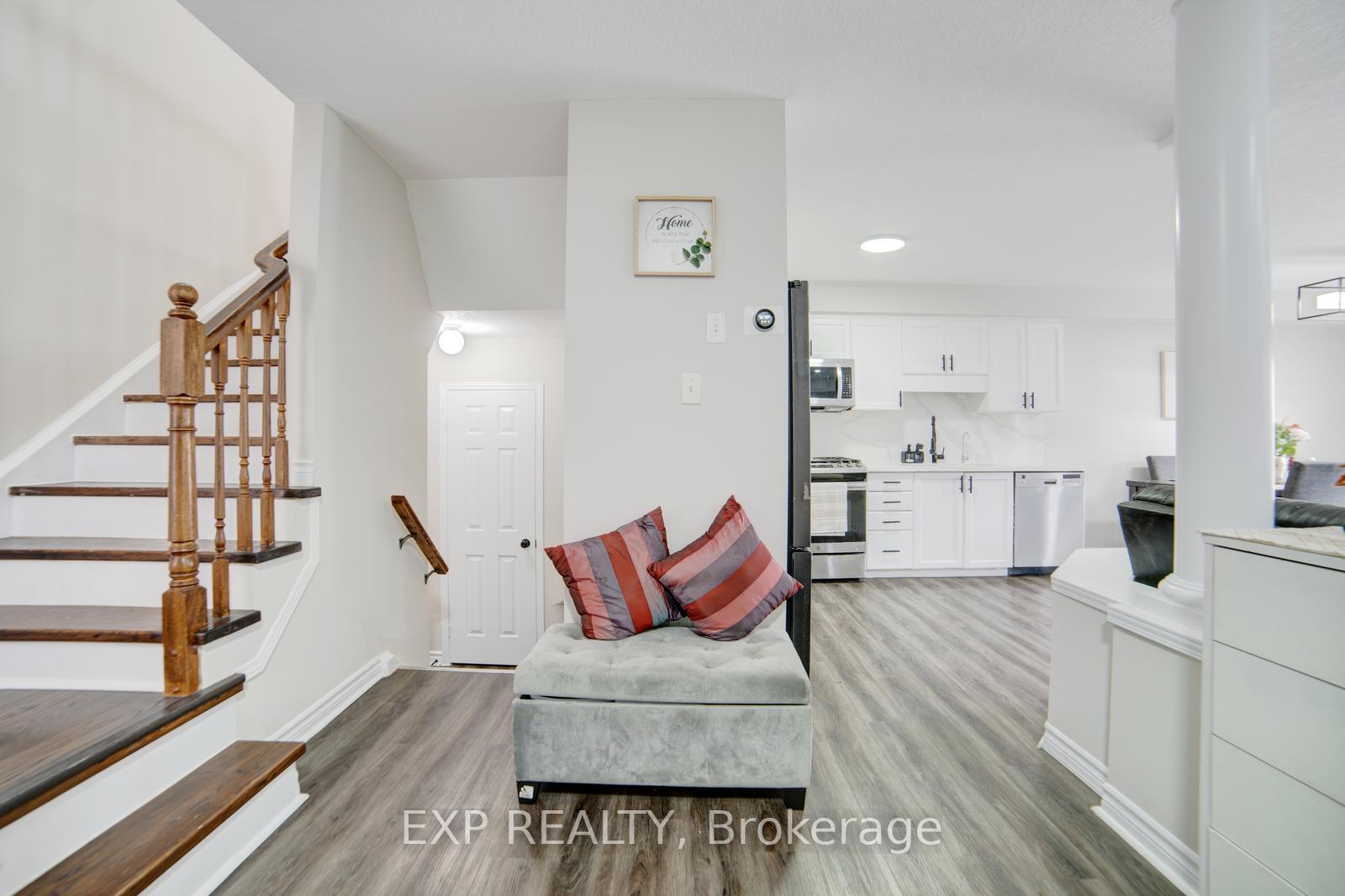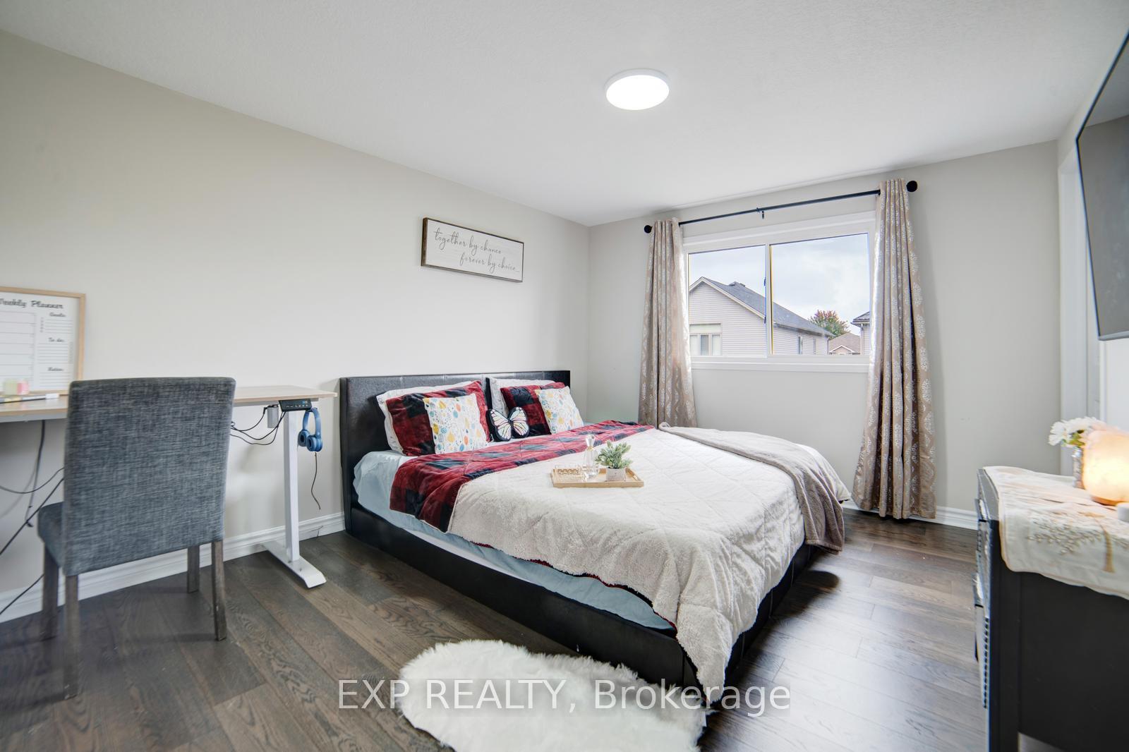 Welcome to this freshly updated, carpet-free family home that blends modern upgrades with everyday functionality. The main floor boasts a freshly painted interior and a stylish kitchen featuring brand new quartz countertops, quartz backsplash, and stainless steel appliances, including a 2023 fridge. The attractive open-concept layout flows seamlessly from the kitchen to the living and dining area, with a walkout to a fully fenced backyard. Upstairs, the primary bedroom stands out with a vaulted ceiling and ensuite 3 piece bathroom, complemented by three additional spacious bedrooms and a large four-piece bathroom. The finished basement expands your living space with a full bathroom, laundry, and versatile areas perfect for an entertainment zone, home office, or gym. Smart home features include a main door smart lock, smart thermostat, smart smoke detector, and permanent smart outdoor lighting with customizable colour-changing options for every season. Practical updates further enhance convenience, including a newly paved walkway (2024), a double garage with interior access, parking for up to four vehicles, and a new shed for additional storage. The roof has a life of 10 more years, while updated lighting throughout provides added peace of mind. Ideally located with quick access to the Conestoga Parkway and Highway 401, this home is also just minutes from the Huron Natural Area, the new Longos Plaza, RBJ Schelegel Park, highly rated schools, and abundant parks and trails. More than just a house, this is the perfect backdrop for your next chapter.