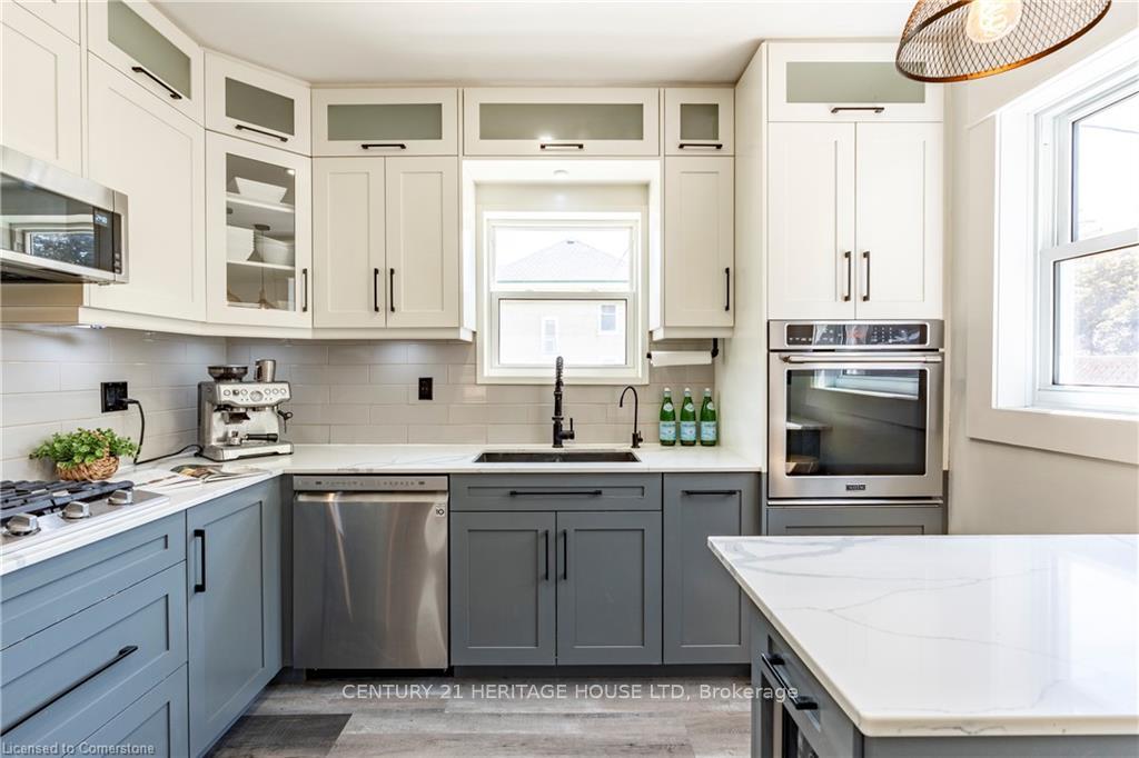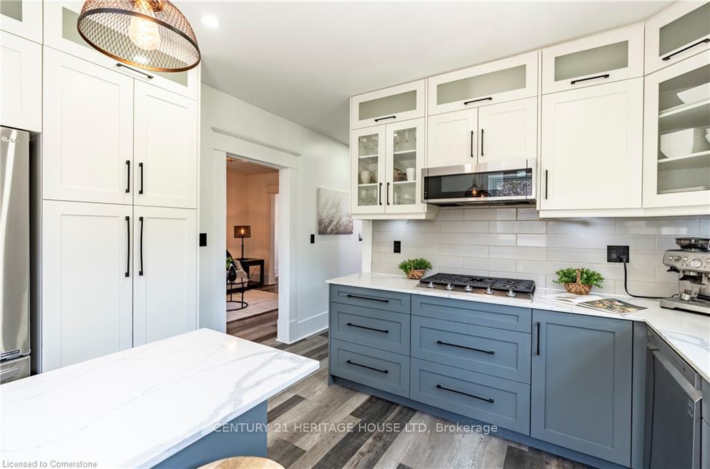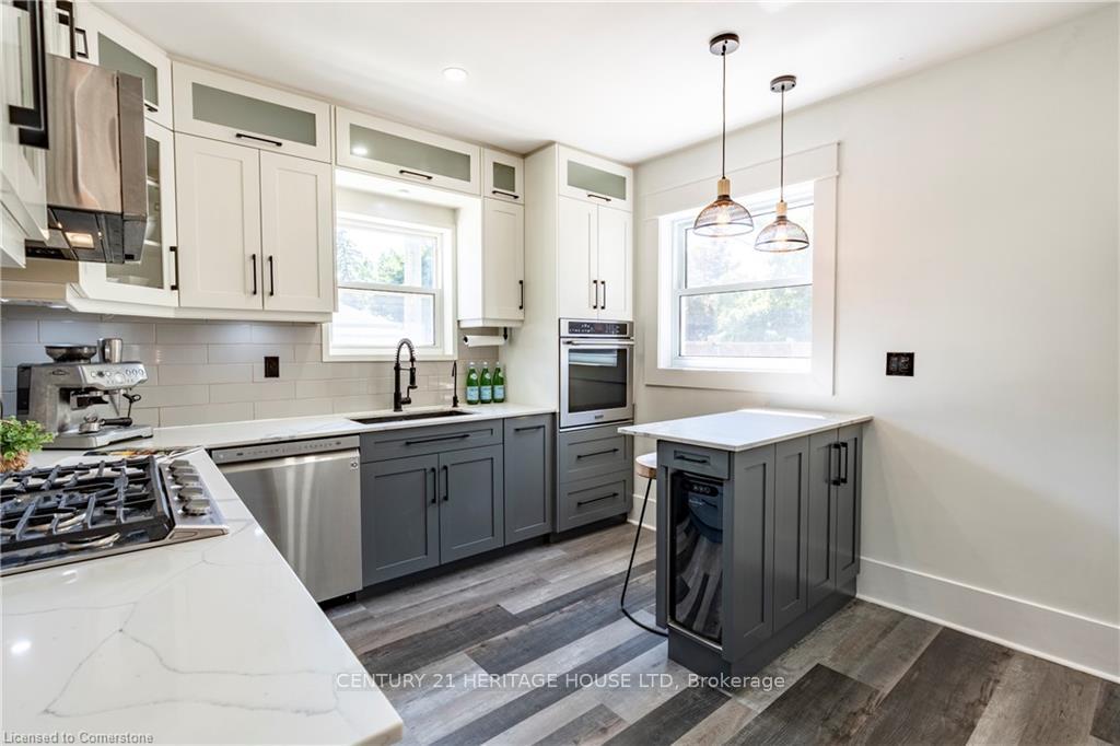 Welcome to 562 Laurel Street a completely renovated century home in the heart of Preston, Cambridge. This 3+1 bedroom, 2.5-bathroom all-brick home blends timeless character with modern updates on a quiet, family-friendly street just steps to Riverside Park, trails, schools, dining, and only minutes to the 401, Toyota, and YKF Airport. The main floor features brand new luxury vinyl flooring with proper subflooring to eliminate squeaks, a stunning new kitchen with modern appliances, fresh paint, updated electrical, and an updated powder room. Enjoy California shutters and a new window in the dining room. Upstairs, the spacious primary suite includes a new walk-in closet, a luxurious ensuite with heated floors, and a beautiful barn wood accent wall. The guest bathroom has also been updated with new flooring, fixtures, and lighting. The fully finished basement offers a large rec room, a fourth bedroom, and a newer furnace. Flooring has been upgraded to luxury vinyl with Dricore subfloor, and both a reverse osmosis and water softener system have been added. Electrical has also been updated throughout the lower level. Outside, you’ll find a newly enlarged two-tier deck, a new side fence, and a detached double garage with a bonus room perfect for a greenhouse or hobby space. The backyard is private, low-maintenance, and includes a hot tub pad with hookups already in place. There’s also potential to finish the attic for additional living space and a side yard ideal for a tiny home or garden suite. With historic curb appeal, modern upgrades throughout, and room to grow, this home is a rare opportunity in one of Cambridges most desirable communities. Just move in and enjoy!