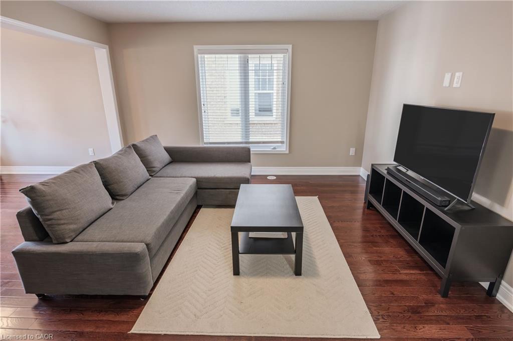 Welcome to this beautiful Mattamy-built, Energy Star-rated end unit townhouse offering nearly 1,300 sqft of stylish, low-maintenance living. Designed with comfort and functionality in mind, this bright home features oak staircases, hardwood flooring on the middle level, and a spacious open-concept layout perfect for both daily living and entertaining. The entry level includes a convenient covered front porch, a large foyer with a powder room, and a finished laundry room with a full-size washer and dryer. The middle level offers a bright and airy open-concept space with plenty of windows. The kitchen boasts stainless steel appliances, generous counter space, and a large window that fills the room with natural light, while the dining area opens to a walkout balcony ideal for morning coffee, evening relaxation, or barbecuing with friends and family. Upstairs, youll find three well-sized bedrooms, ample closet space, and a 4-piece bathroom. With no sidewalk, parking for three vehicles, and direct garage access, this move-in ready home is as practical as it is beautiful. Located directly across from a large park, the Milton Sports Centre, and Sports Complex, and just steps from grocery stores, schools, medical offices, banks, and the hospital everything you need is right at your doorstep well, almost at your doorstep!