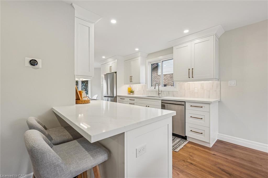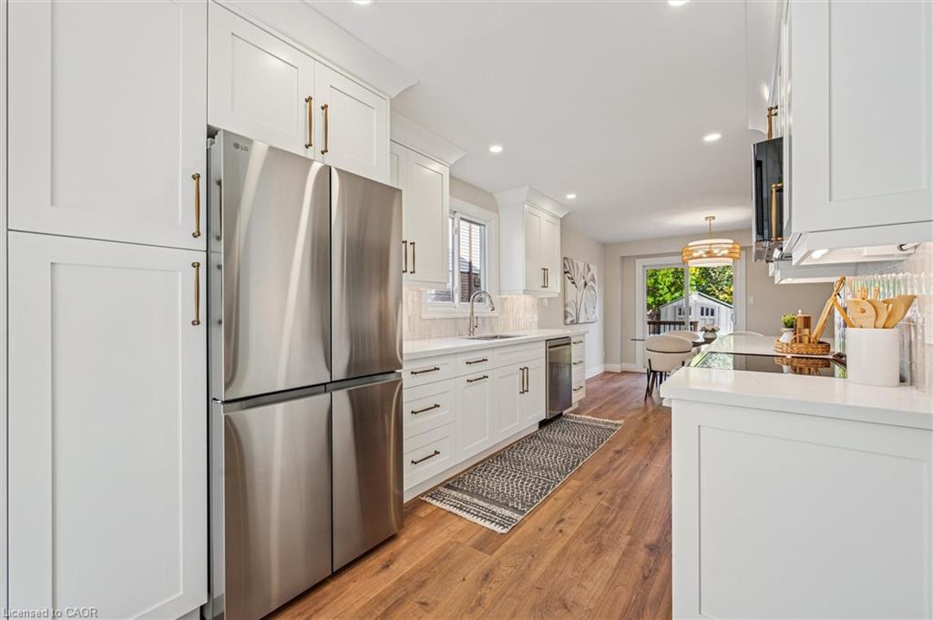 Welcome to 57 Foxridge Drive — a fully renovated home in one of Hespeler’s most sought-after neighbourhoods. Backing onto Hespeler Public School, this turnkey property offers a blend of privacy, versatility, and modern comfort. Imagine relaxed mornings with the kids walking to school just steps from your backyard, quiet evenings with no rear neighbours, and a home that’s been tastefully upgraded so you can simply move in and enjoy. Inside, every detail has been reimagined with new flooring, tile, lighting, doors, trim and fresh paint throughout. At the heart of it all is a redesigned kitchen featuring upgraded cabinetry, quartz countertops, a sleek backsplash, brand-new appliances, and open views into the living and dining areas. It’s the perfect place to cook, gather, and create lasting memories. The powder room and laundry/mudroom have also been overhauled for both style and function. With built-in cabinets, a new washer and dryer, and a generous quartz counter ideal for folding or organizing, this area is designed to keep your household running smoothly. Upstairs, you’ll find three inviting bedrooms, each with ample storage, and a beautifully finished main bath. The lower level features a large rec room, perfect for a media space, playroom, or home office. The double garage, fully insulated and heated, provides even more flexibility for a gym, workshop, or extra storage. Step outside to a brand-new deck, fully fenced yard, colourful gardens, a dog run, and a storage shed. It’s private, practical, and ready to enjoy.