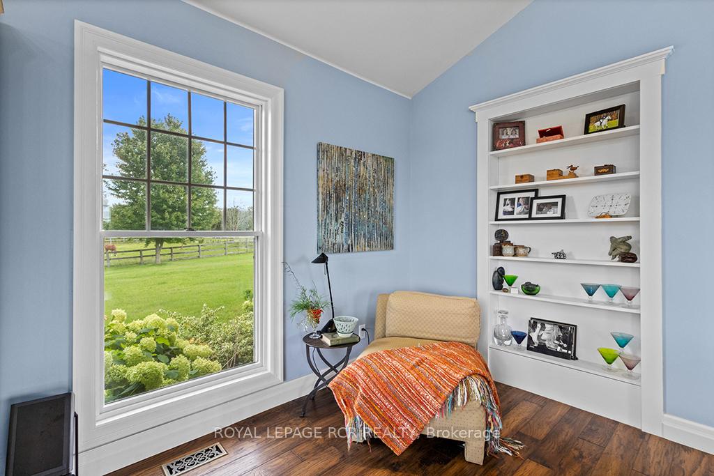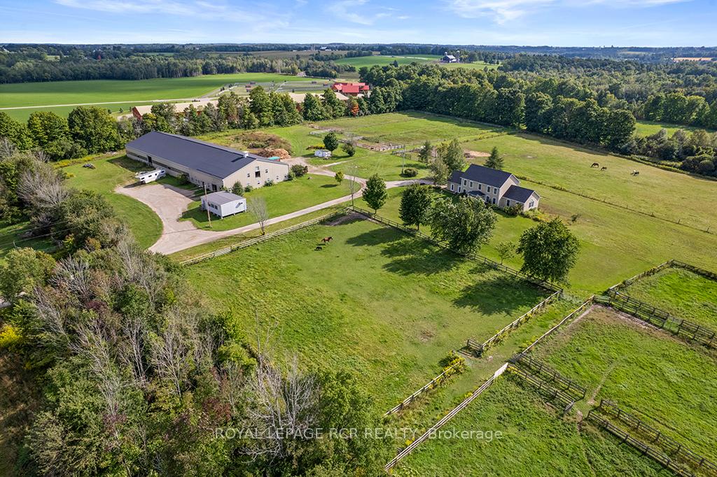 Where Horse, Home, and Heart Align. Set among premier horse farms in elite equestrian country, this exceptional 49-acre estate is designed for those whose days begin in the barn aisle and end planning the next ride. Ten lush paddocks with frost-free hydrants and hydro support seamless, year-round horsekeeping, while the insulated, ventilated 20-stall steel barn features a heated tack room, wash and grooming stalls, feed room, 3-piece bath, & hay storage above with convenient drops – efficient and rider-friendly. The attached 76′ x 160′ indoor arena with operable windows allows consistent training through every season, perfect for winter miles and polishing flatwork. Outdoors, a large jumping field, 150′ x 200′ sand ring, and grass dressage field support relaxed hacks to show-ready schooling, while two productive hayfields enhance self-sufficiency. The 1997-built residence offers comfort after long days in boots and breeches, with hand-scraped wide-plank hickory floors, 9′ and cathedral ceilings, and abundant natural light. The updated chef’s kitchen with Wolf cooktop, leathered granite counters, and generous island opens to the dining area and Great Room with beamed cathedral ceiling. A main-floor bedroom with ensuite adds flexibility; upstairs are three additional bedrooms and updated baths with heated floors and towel warmers. The primary suite includes a dressing room, custom walk-in closet, and spa-inspired ensuite. Walk-out lower level awaits future plans. Upgrades include a 2024 cold-climate heat pump with propane furnace backup, Generac generator supporting essential farm systems, and newer Goodfellow siding. Minutes from Angelstone, Meadowlarke North, and Palgrave-where life with horses feels perfectly in stride. A thoughtful layout keeps routines efficient, from first feed to final night check, with easy flow between barn, arena, & home-ideal for competitors or passionate riders seeking a turnkey property ready to enjoy from day one. Ready to tack up now.