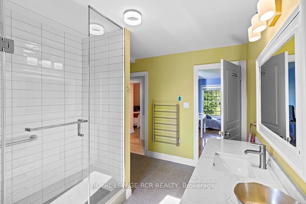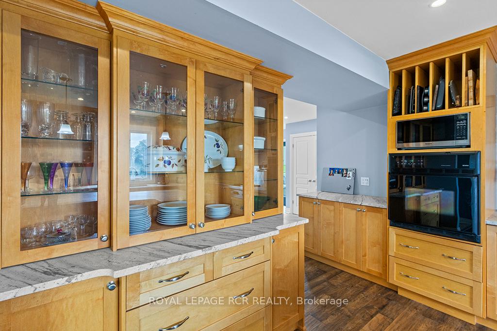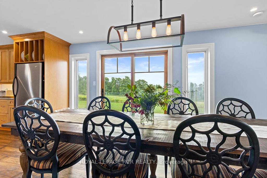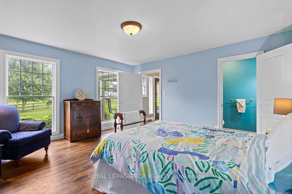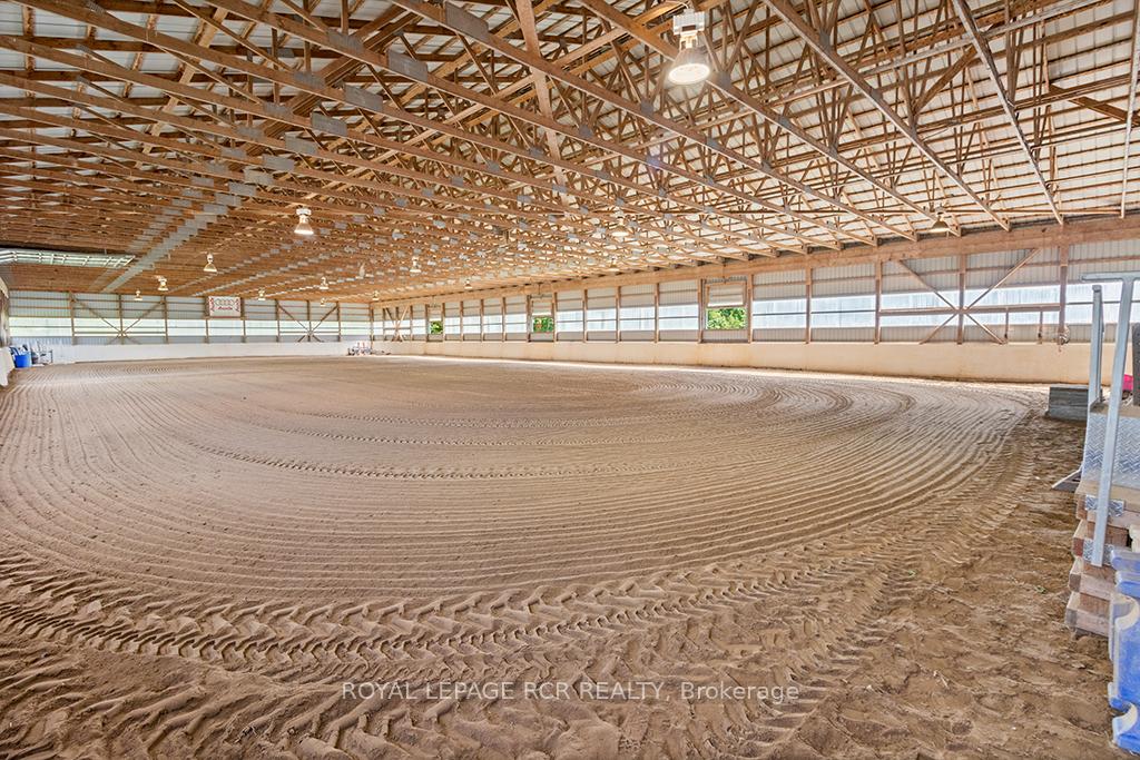 49-Acre Equestrian Paradise – A dream setting for horse and rider. Your horses will thrive in 10 lush paddocks with frost-free hydrants and hydro for winter, you’ll appreciate the insulated, ventilated 20-stall barn with heated tack room , 3-piece bath, feed room, wash & grooming stalls and hay storage above. Currently operating as a pleasure riding & eventing facility, this property is designed for year-round training with an attached 76′ x 160′ indoor arena with operable windows and good footing. Take it outdoors to the expansive jumping field, 150′ x 200′ sand ring and a grass dressage field. Two productive hayfields add income potential & self-sufficiency. A 23′ x 30′ heated portable with hydro expands your options for an office or studio. The elegant home (built in 1997) blends timeless design with modern comfort. 9′ and cathedral ceilings pair with wide-plank, hand-scraped hickory hardwood for a refined main level. At the heart of the home, a chefs kitchen with Wolf cooktop, leathered granite counters & a generous island flows seamlessly into the dining area and Great Room with beamed cathedral ceiling. A main-floor bedroom with 2-piece ensuite offers flexibility; upstairs, 3 additional bedrooms with timeless oak hardwood floors. Both upper bathrooms have been thoughtfully renovated, showcasing heated floors & towel warmers for everyday luxury. The expansive primary retreat offers a dressing room, a walk-in closet with built-in organizers, and a stunning spa-inspired ensuite designed for relaxation. The walk-out lower level remains unspoiled, ready for your vision. Thoughtful updates ensure efficiency and peace of mind: a 2024 cold-climate heat pump with high-efficiency propane furnace backup, Generac generator to power farm essentials, energy-efficient Pella windows & durable updated Goodfellow siding. This is the ultimate equestrian lifestyle, surrounded by other fine horse farms ideally located just minutes to Angelstone, Meadowlarke North, & Palgrave.
