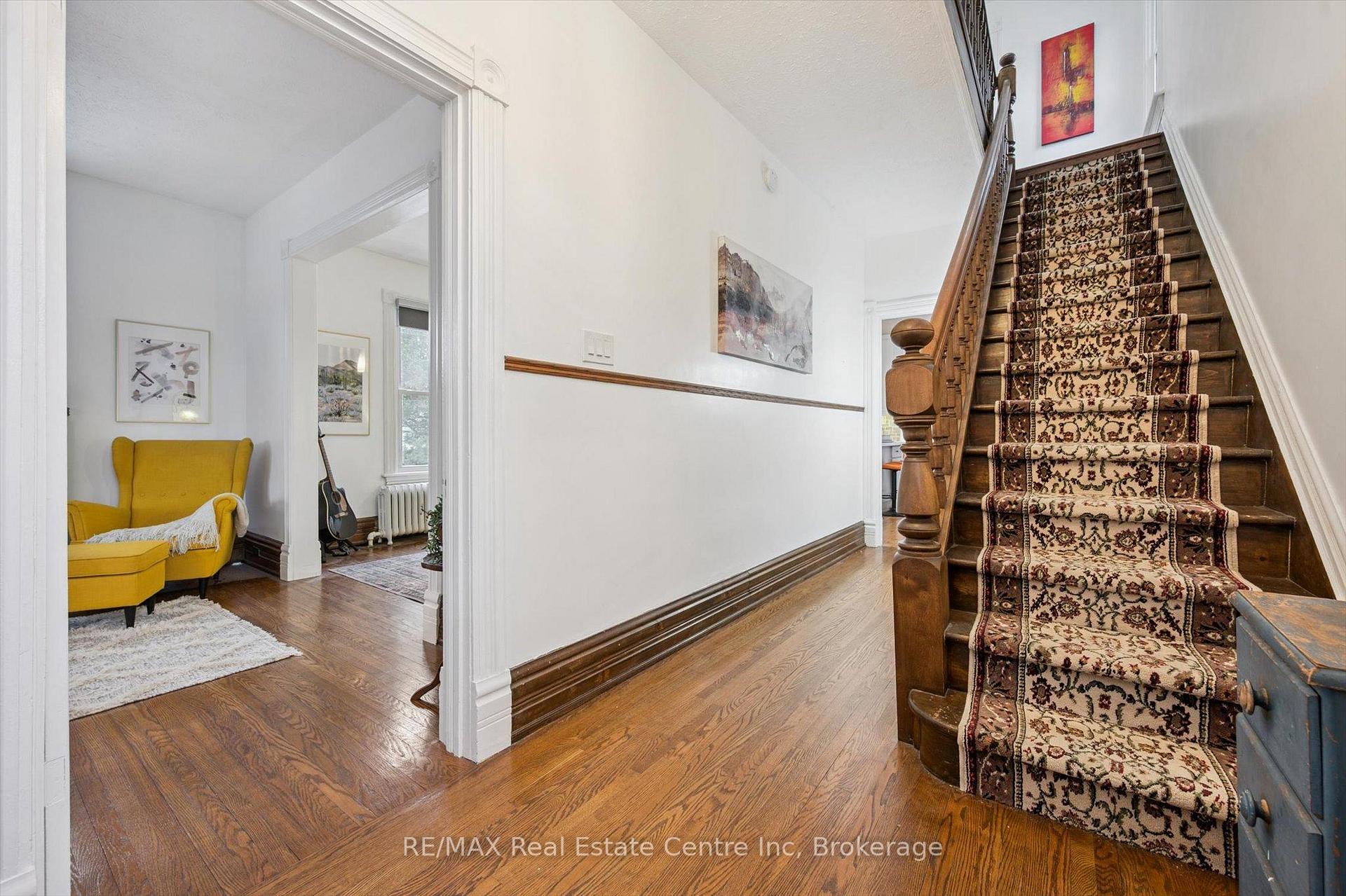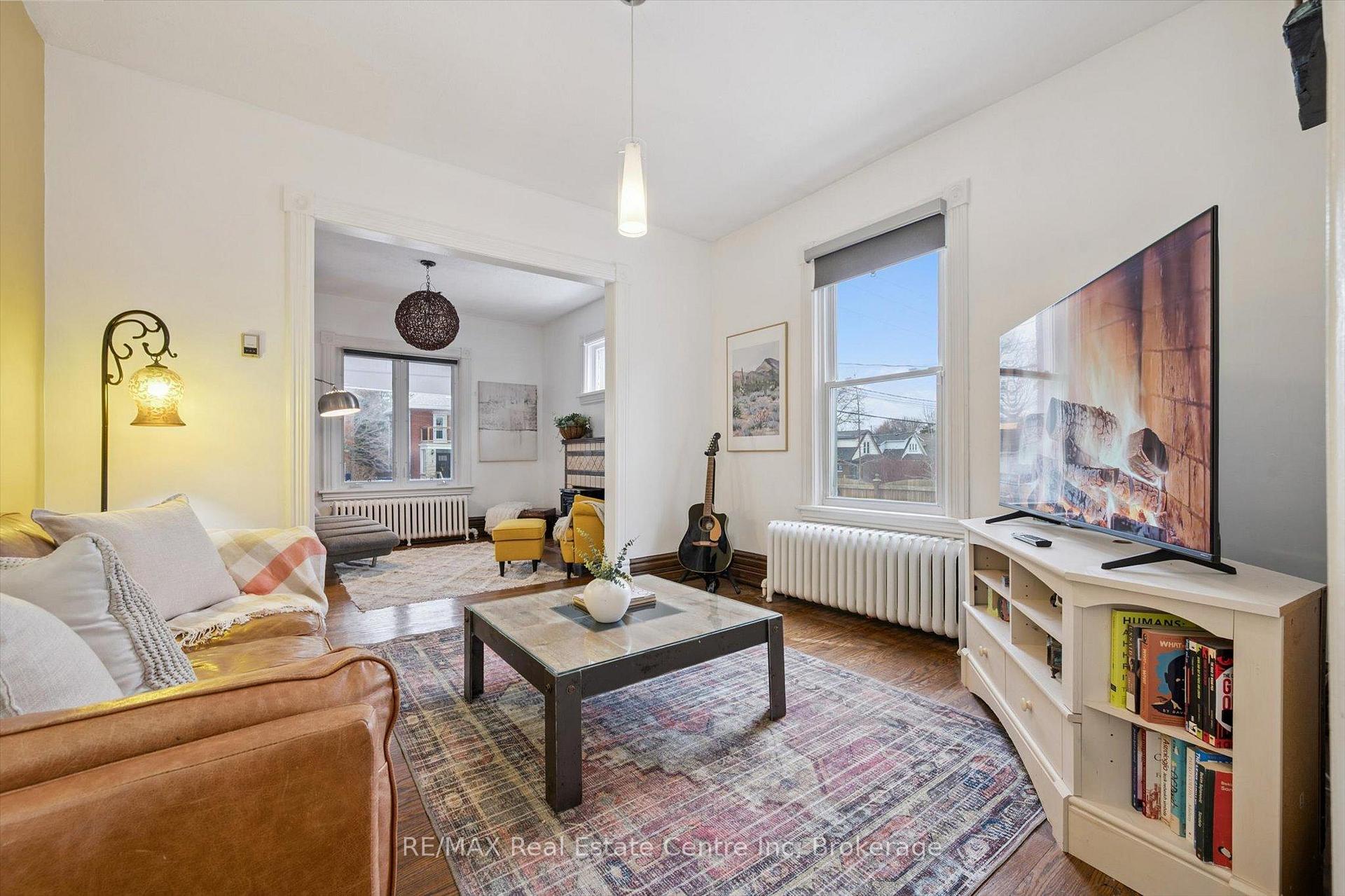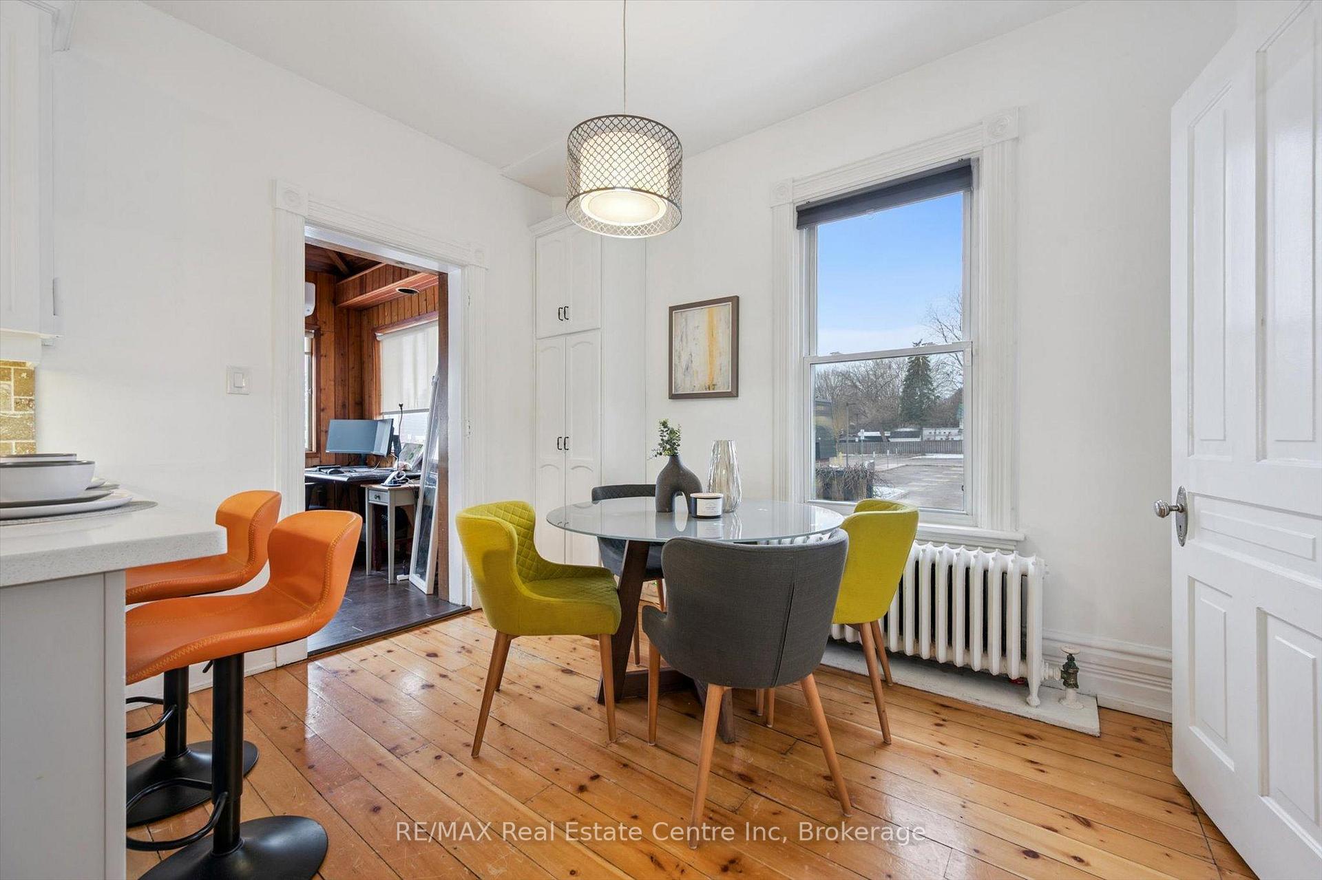 You’ve been looking for a property that adapts to your life, not the other way around. This is it! 60 X 160 lot W/detached 2-car garage & ample parking in heart of Guelph, this century home immediately stands out. What sets the home apart is detached 2-car shop W/pit! Dream setup for car enthusiasts, contractors or anyone needing serious workspace. Combined W/ample on-site parking & effortless turnaround you’ll never worry about backing onto Woolwich or squeezing in work trucks or client cars. Add in prime downtown exposure & visibility, this becomes an exceptional opportunity for at-home business. Front LR can be converted into office or space for massage therapy, physiotherapy or similar professions. For investors the upside is just as compelling! Existing floor plan allows LR & DR to be easily reconfigured into add’l bdrms creating 4 or 5-bdrms! See attach for income pro forma for 5-bdrm rental. Lot size & layout support ADU & home sits on bus route to UofG W/walkability to downtown, major draw for tenants. Red-brick exterior & front porch deliver timeless character. Inside home blends original details W/thoughtful updates. LR W/hardwood, high baseboards, fireplace & picture windows. It flows into DR creating perfect setting for family meals & entertaining. Renovated kitchen W/timeless cabinetry, quartz counters, backsplash, B/I appliances, breakfast bar & dining nook. Sun-room at rear is ideal as reading nook, office or studio. Solid wood stairs lead up to 3 bdrms W/hardwood & large windows. Updated bathroom W/glass tub-shower, vanity & backsplash. Backyard offers expansive lot for kids, pets, entertaining & relaxing. Walk to downtown shops, restaurants & nightlife. Steps from Royal Rec Trail, Exhibition & Riverside Park. This isn’t just a home, it’s a place where you can live, work, invest & grow! Property gives you options today & powerful upside tomorrow. Downtown homes rarely offer this level of space, parking, versatility & income potential, this one does!