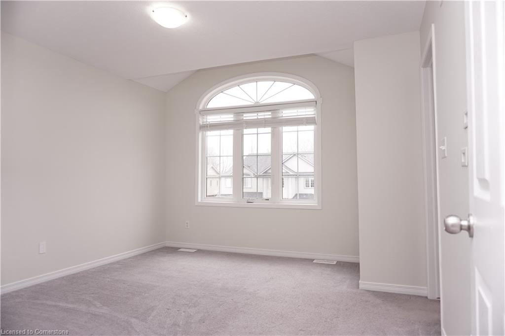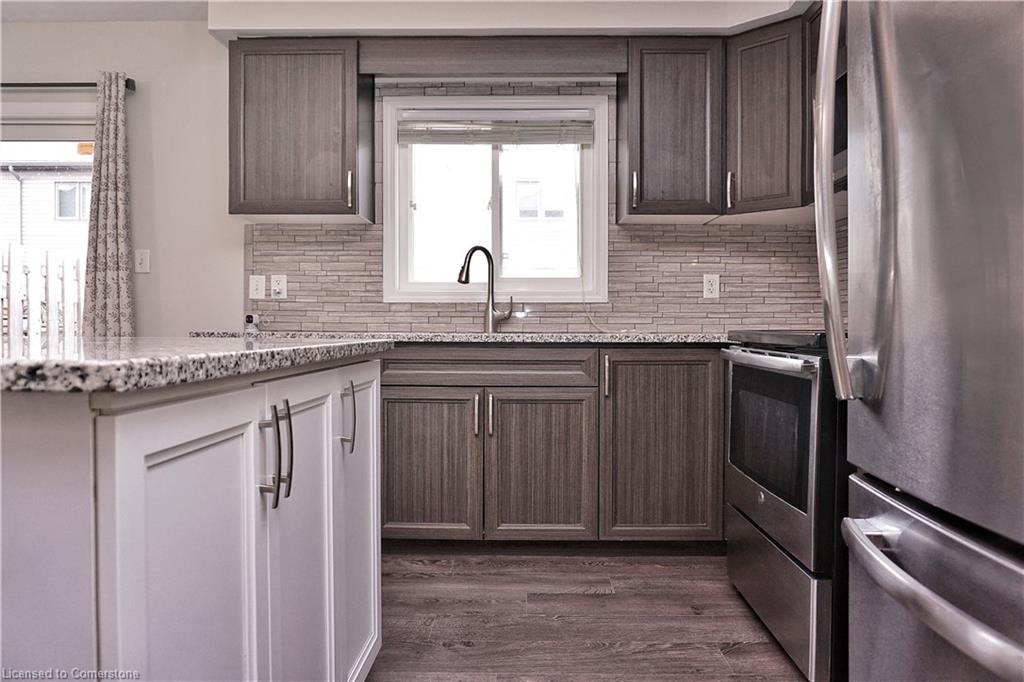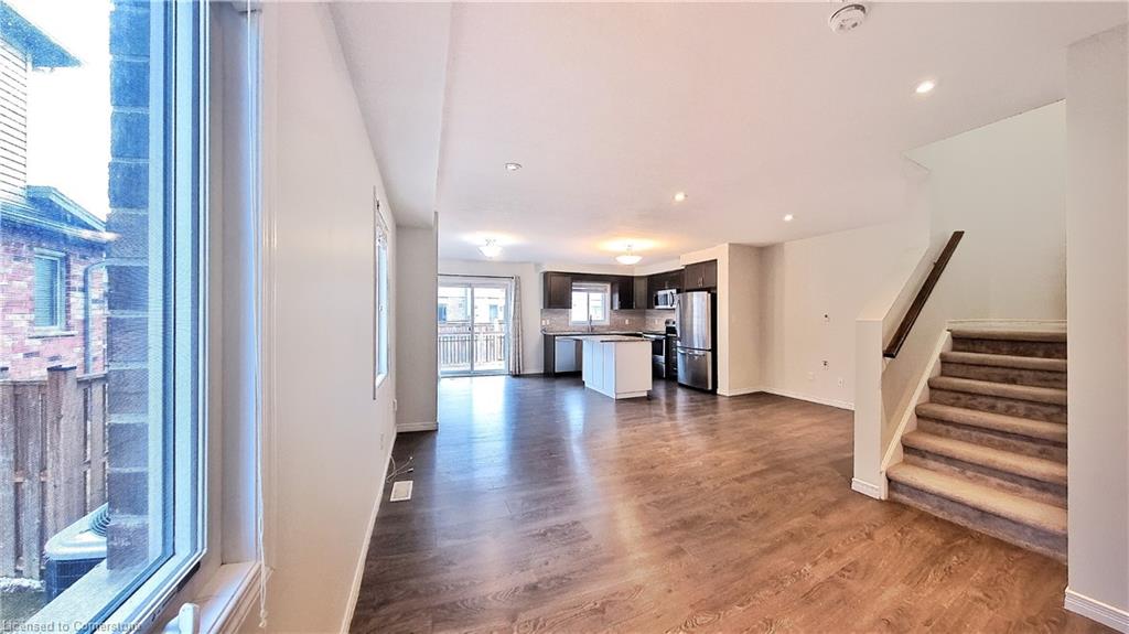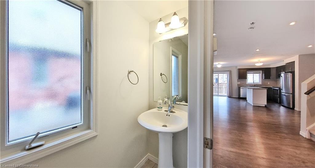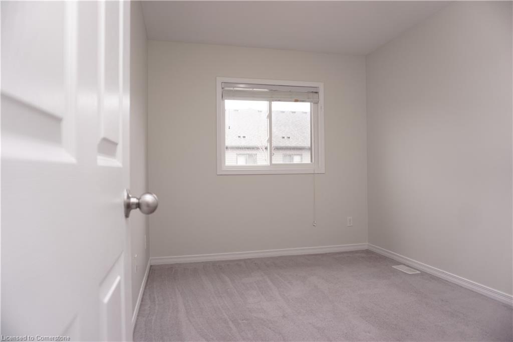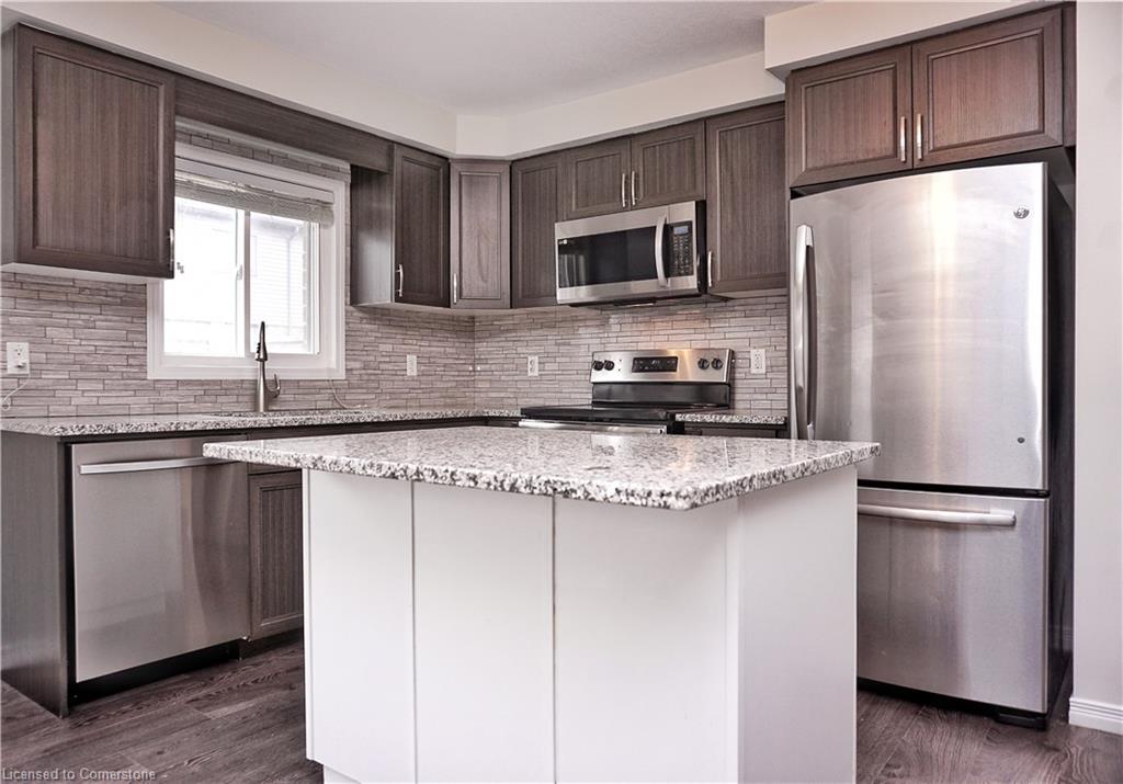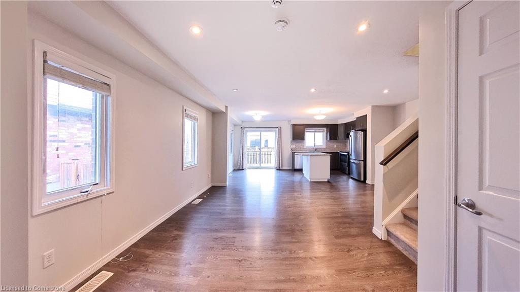 Stunning 3-bed, 4-bath end-unit executive townhome with finished basement and parking for 3 cars – no condo fees! Freshly painted and move-in ready, this like-new gem in Doon South boasts an open-concept layout with upgraded laminate flooring and a modern kitchen with stainless steel appliances. The luxurious master suite features his-and-hers closets and a spa-like ensuite with tiled shower. Enjoy outdoor living on your private wooden deck with fenced yard. The fully finished basement includes a spacious rec room and ample storage. Prime location near top-rated Groh Public School, Conestoga College, parks, scenic trails, and with quick Highway 401 access. Recent upgrades include fresh paint throughout and new appliances – simply unpack and enjoy!Key features:Rare 3-car parking in a townhome settingNo condo fees means more savingsEnd-unit provides extra windows and privacy4 full bathrooms for ultimate convenience. Like new condition with all new paint!