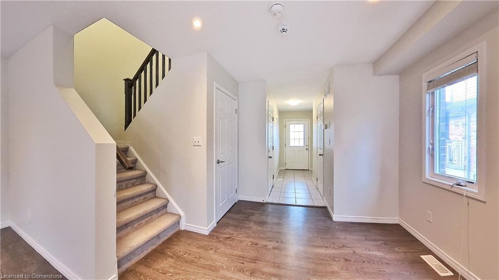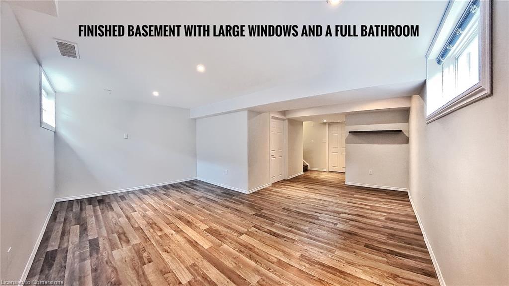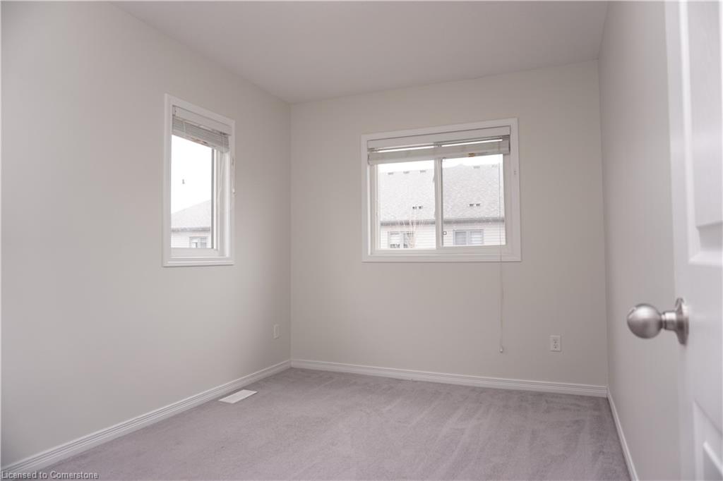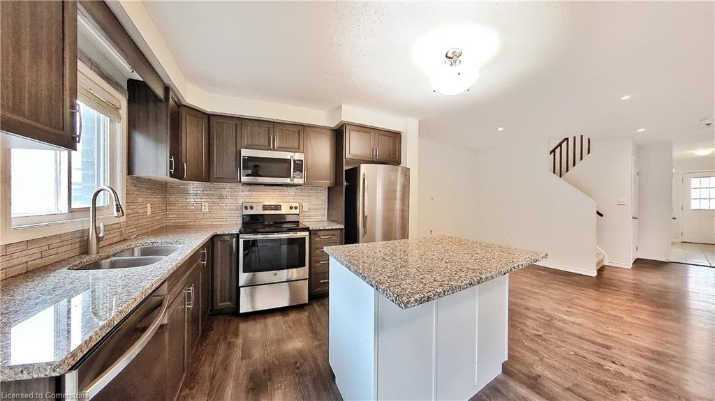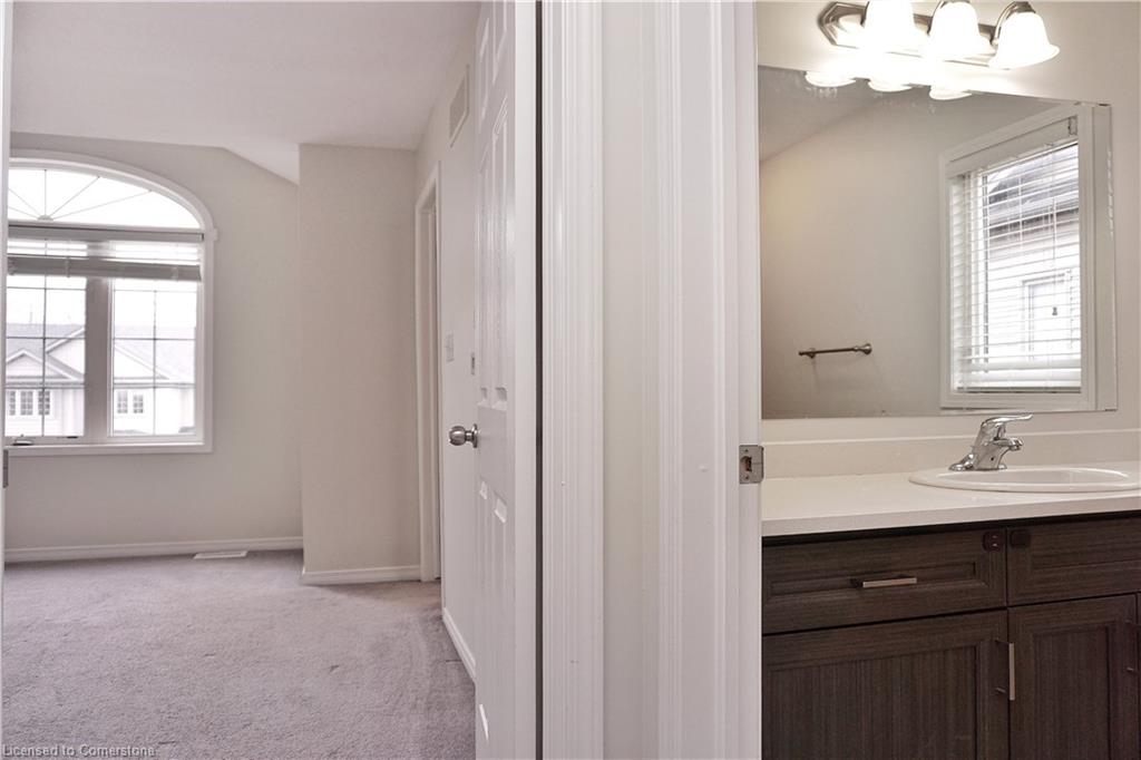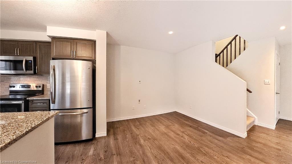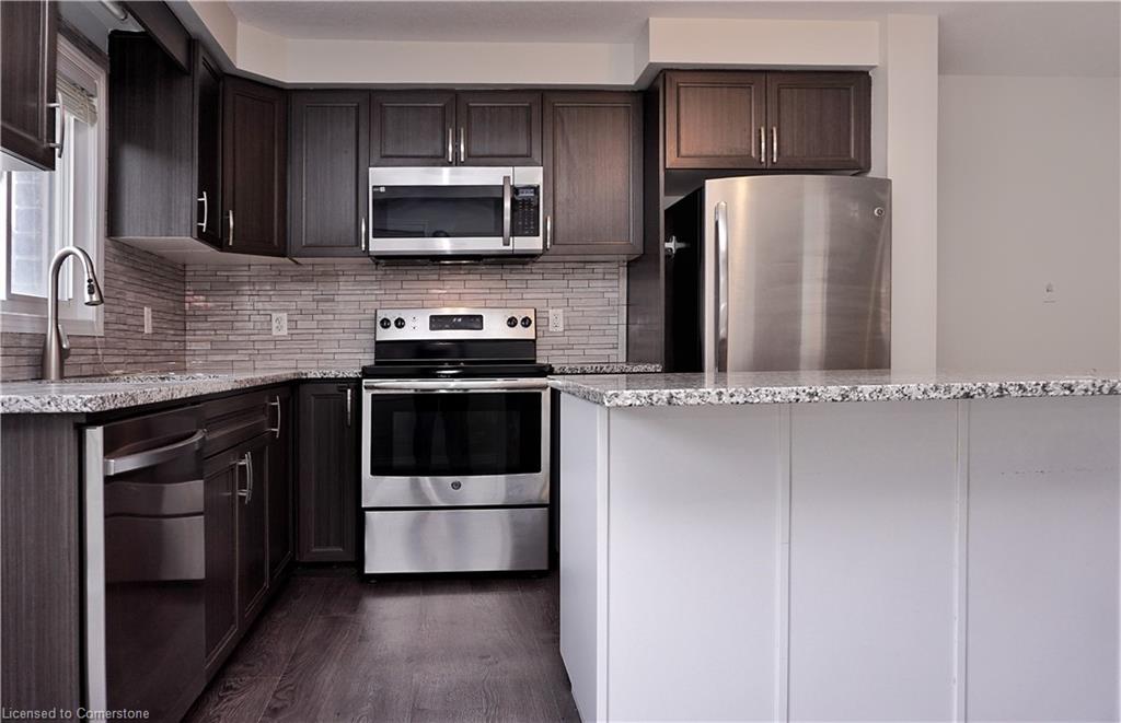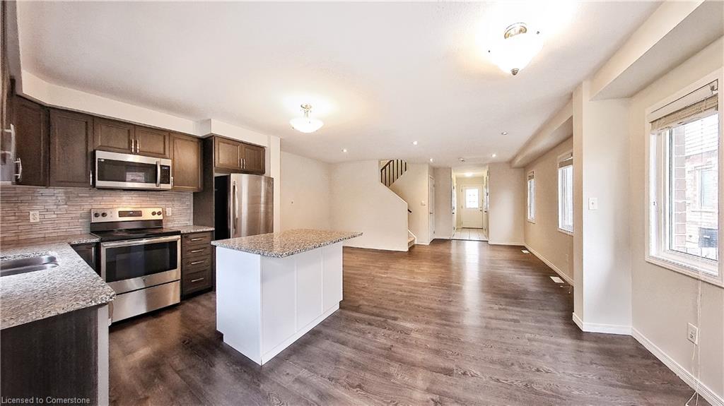 Stunning 3-bed, 4-bath end-unit executive townhome with finished basement and parking for 3 cars – no condo fees! Freshly painted and move-in ready, this like-new gem in Doon South boasts an open-concept layout with upgraded laminate flooring and a modern kitchen with stainless steel appliances. The luxurious master suite features his-and-hers closets and a spa-like ensuite with tiled shower. Enjoy outdoor living on your private wooden deck with fenced yard. The fully finished basement includes a spacious rec room and ample storage. Prime location near top-rated Groh Public School, Conestoga College, parks, scenic trails, and with quick Highway 401 access. Recent upgrades include fresh paint throughout and new appliances – simply unpack and enjoy!Key features:Rare 3-car parking in a townhome settingNo condo fees means more savingsEnd-unit provides extra windows and privacy4 full bathrooms for ultimate convenience. Like new condition with all new paint!