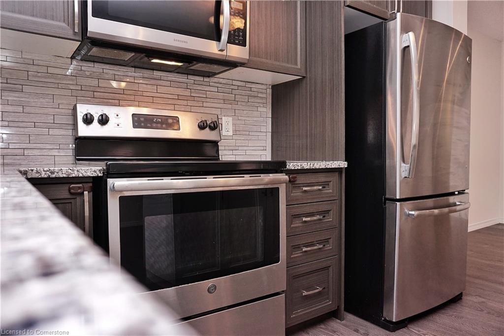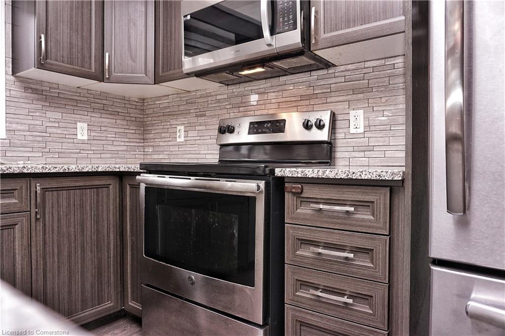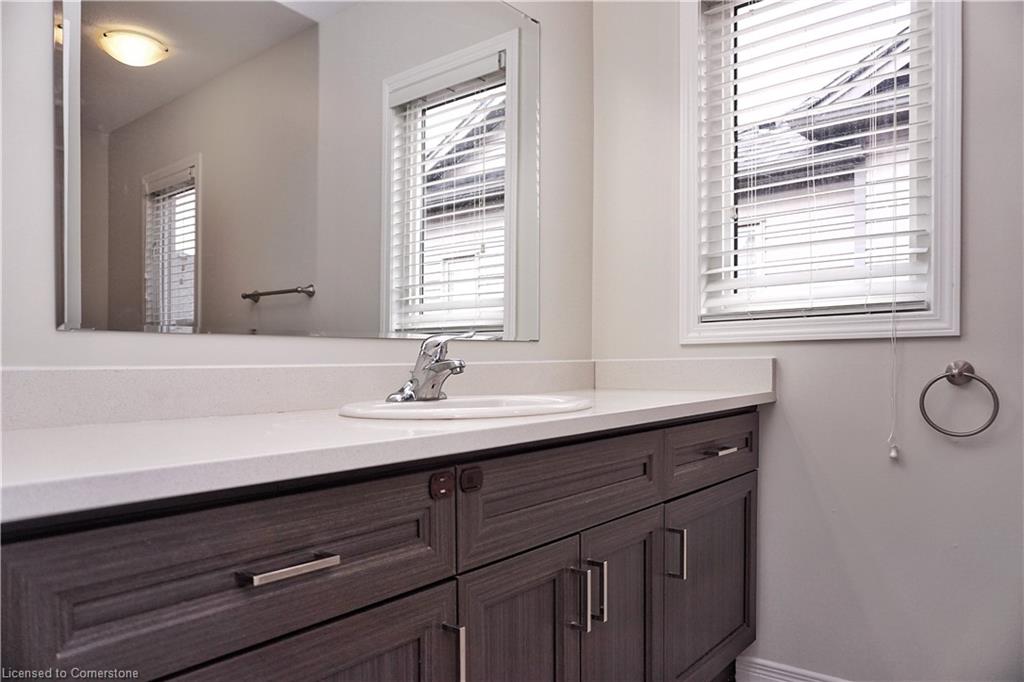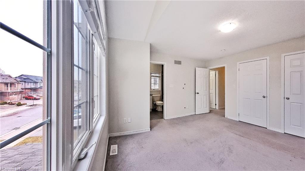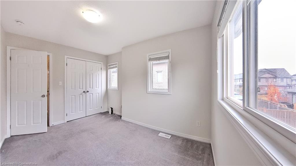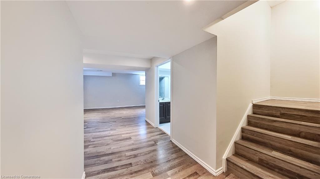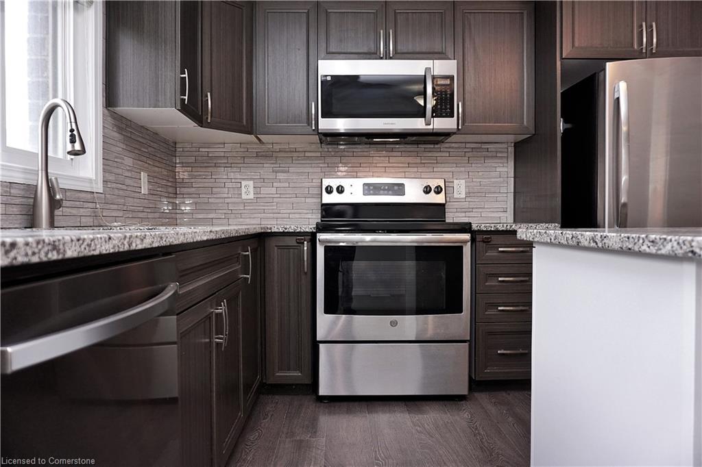 Stunning 3-bed, 4-bath end-unit executive townhome with finished basement and parking for 3 cars – no condo fees! Freshly painted and move-in ready, this like-new gem in Doon South boasts an open-concept layout with upgraded laminate flooring and a modern kitchen with stainless steel appliances. The luxurious master suite features his-and-hers closets and a spa-like ensuite with tiled shower. Enjoy outdoor living on your private wooden deck with fenced yard. The fully finished basement includes a spacious rec room and ample storage. Prime location near top-rated Groh Public School, Conestoga College, parks, scenic trails, and with quick Highway 401 access. Recent upgrades include fresh paint throughout and new appliances – simply unpack and enjoy!Key features:Rare 3-car parking in a townhome settingNo condo fees means more savingsEnd-unit provides extra windows and privacy4 full bathrooms for ultimate convenience. Like new condition with all new paint!