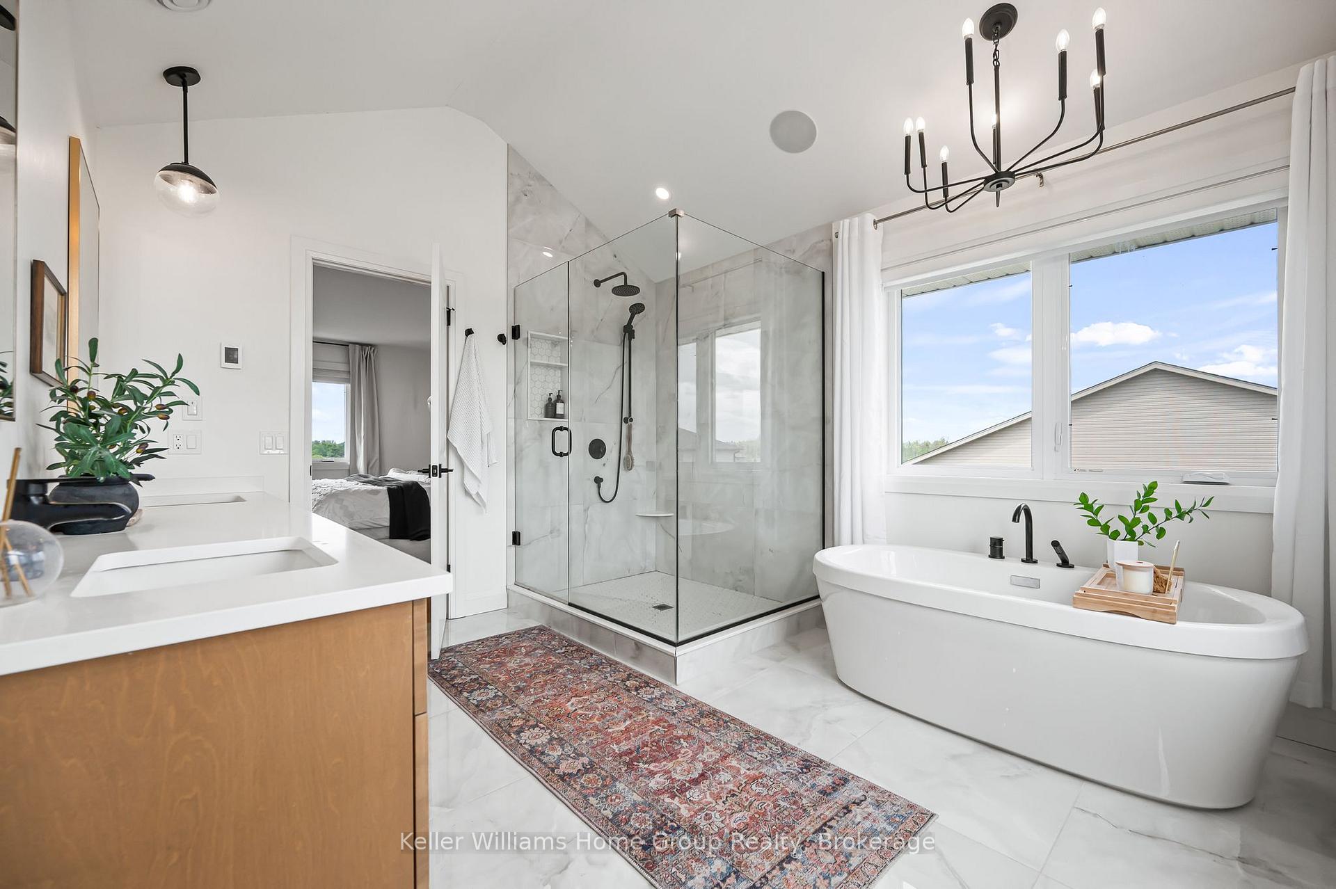 Stunning Keating Built 2 Storey home with lots of upgrades – you don’t want to miss this one with over 3100sq ft of living space all finished by the builder. The main floor is bright and spacious open concept with gleaming hardwood flooring, living room with a feature gas fireplace and large windows, dining area with patio doors out to the composite deck over looking farmland, amazing custom kitchen with large centre island, quartz counter tops and backsplash, stainless appliances, there is a good sized mudroom off the kitchen with a walk in pantry, walk in closet, a built in bench and storage cabinetry, entrance into the 2 car garage. On the main floor you will also find a 2 piece washroom and a large home office/guest bedroom. Head up the hardwood staircase to the upper level where you will find hardwood flooring throughout all bedrooms and hallways, a large primary bedroom, with a walk in closet and a huge bright nicely upgraded 5 piece ensuite with in floor heat. There are 2 more good sized bedrooms, a 4 piece main bathroom and a large well equipped laundry room. The finished walkout basement is an amazing space to relax and entertain, with its large rec room, 3 piece bathroom, guest bedroom and fitness studio. The walkout from the basement leads out to a concrete patio and the amazing backyard with a large storage shed and open view of the farmland in behind.