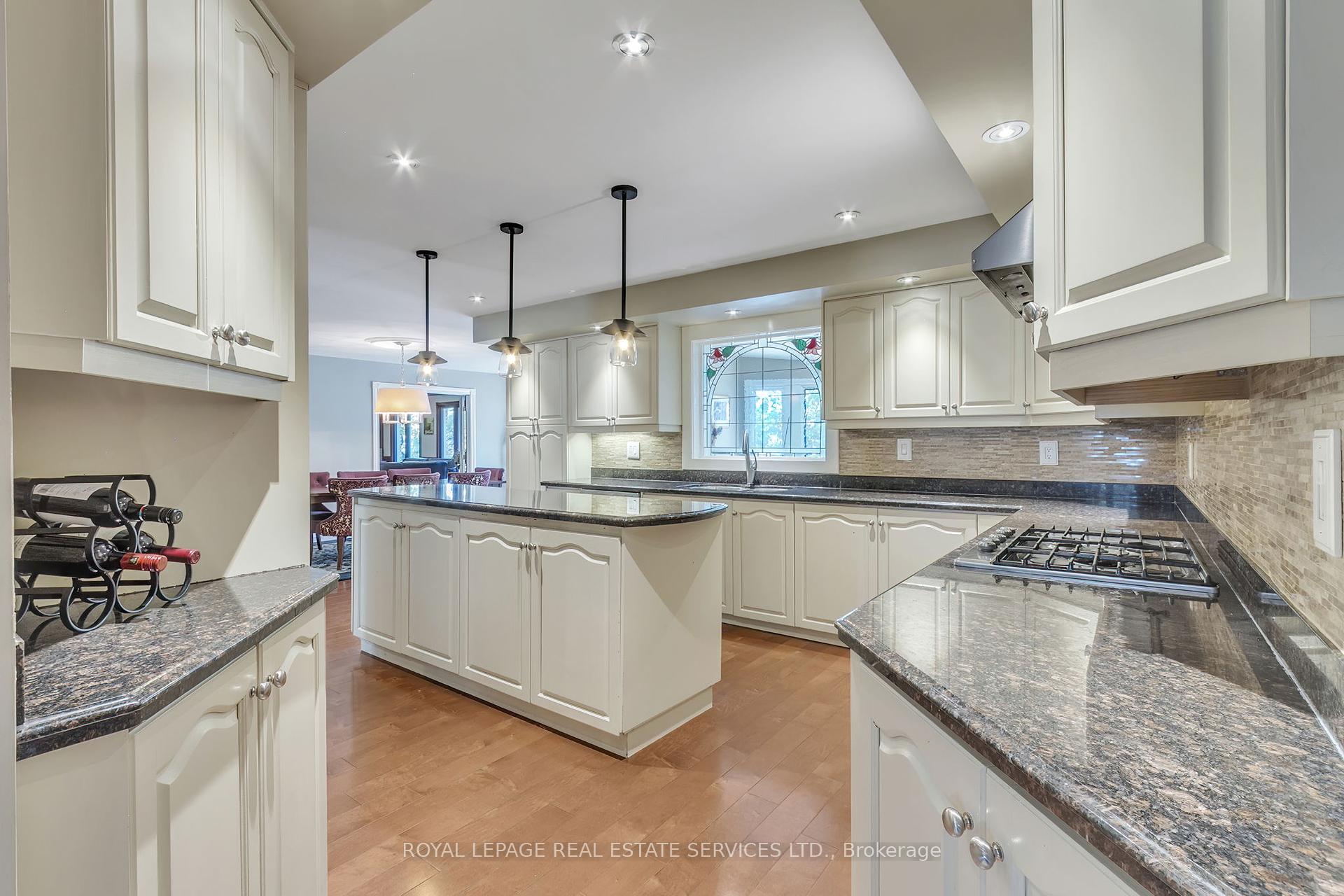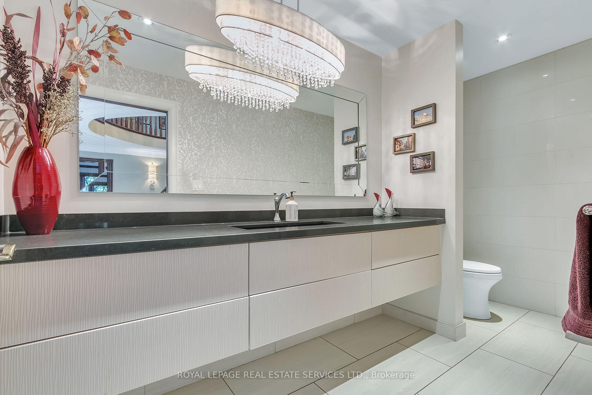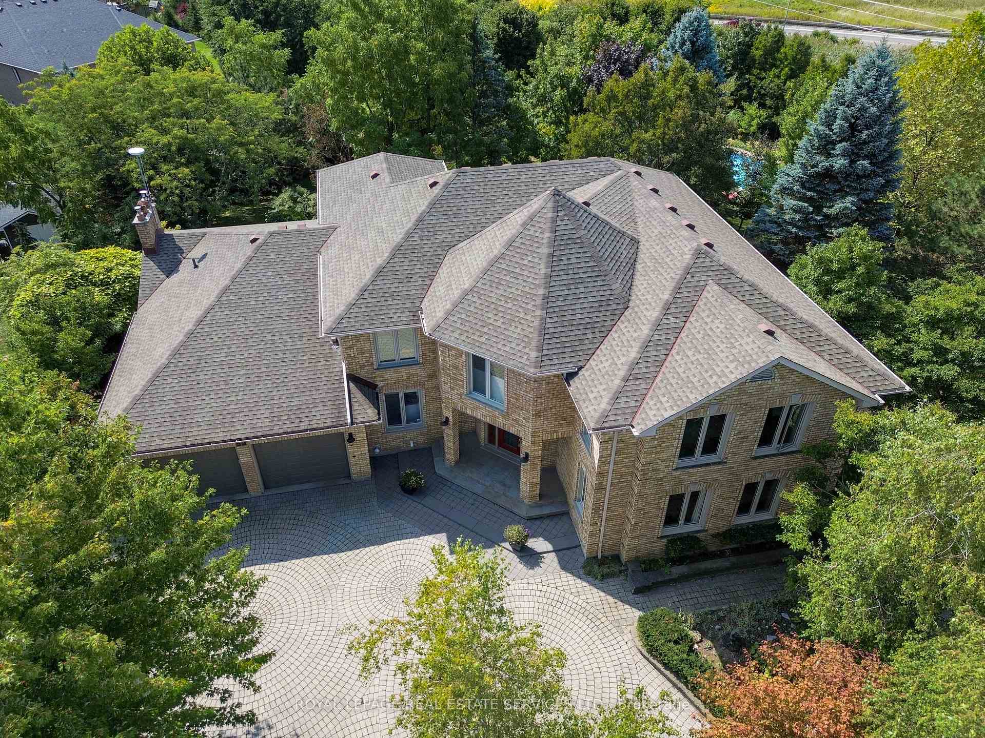 Welcome to 59 Elodia Crt, a customized estate residence just steps from prestigious Meadowlands! This executive home is ideally located at the end of exclusive Elodia Court, nestled on a ravine-lined, 3-tiered, 0.7-acre Muskoka-like setting. The photos simply don’t do this spectacular property justice! With commanding curb appeal and a circular driveway, this home exudes class and elegance. Offering approx. 7,600sf of refined living space across 3 levels, it is filled with natural light and boasts ravine views from every window. The main level features expansive principal rooms, both formal and open concept, along with an updated chef’s kitchen outfitted with professional-grade built-in appliances & an oversized pantry wall in the breakfast area. Notable main floor highlights include richly stained hardwood floors, a grand oak staircase, imported solid surface counters & tiles, custom millwork, intricate trim & plaster detailing, skylights, and unique architectural accents. The 2nd level offers 4 oversized bedrooms, including a luxurious primary retreat with a spa-like ensuite and a walk-in dressing room. 3 fully remodeled bathrooms provide a fresh, contemporary feel. The recently renovated lower-level walkout presents a spacious rec room, games room with custom servery, 5th bedroom, a children’s playroom, abundant storage & convenient service stairs to the garage. The one-of-a-kind, multi-tiered backyard must be seen to be truly appreciated, featuring a custom Trex deck, stamped concrete patios & walkways, a relaxing hot tub, and a Tuscan-inspired 20’x40′ pool. The custom pool house cabana is complete with solar heating, a fire pit and a storage shed – all surrounded by manicured landscaping and total ravine privacy. Notable upgrades include furnace 2025, basement 2017, bathrooms 2020-2022 w/ heated floors, pool/cabana 2010 – updated 2022, roof 2016, windows 2010-2014. Minutes from Canadas top private schools, major highways and all the charm Ancaster has to offer!
