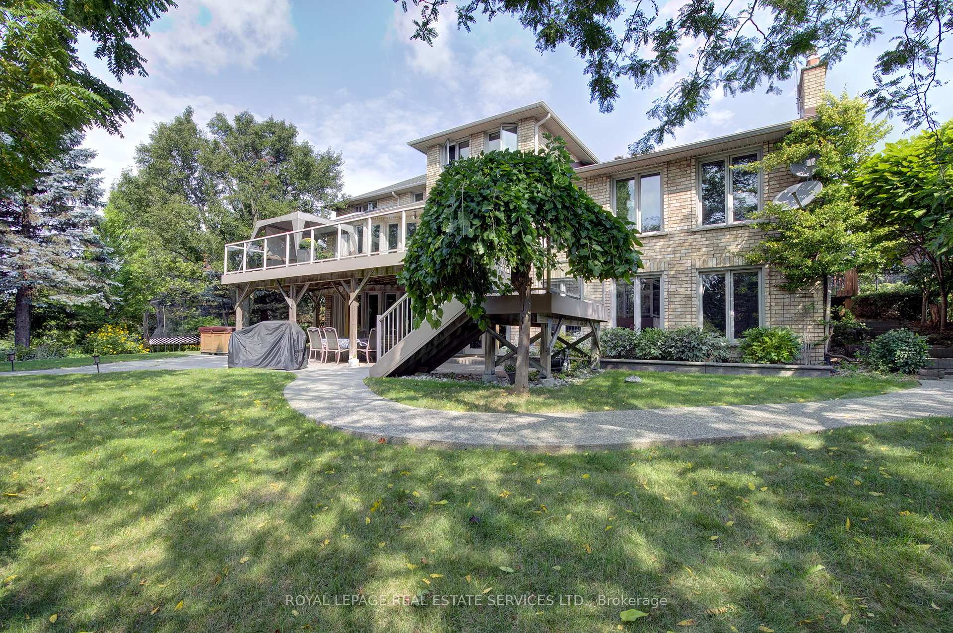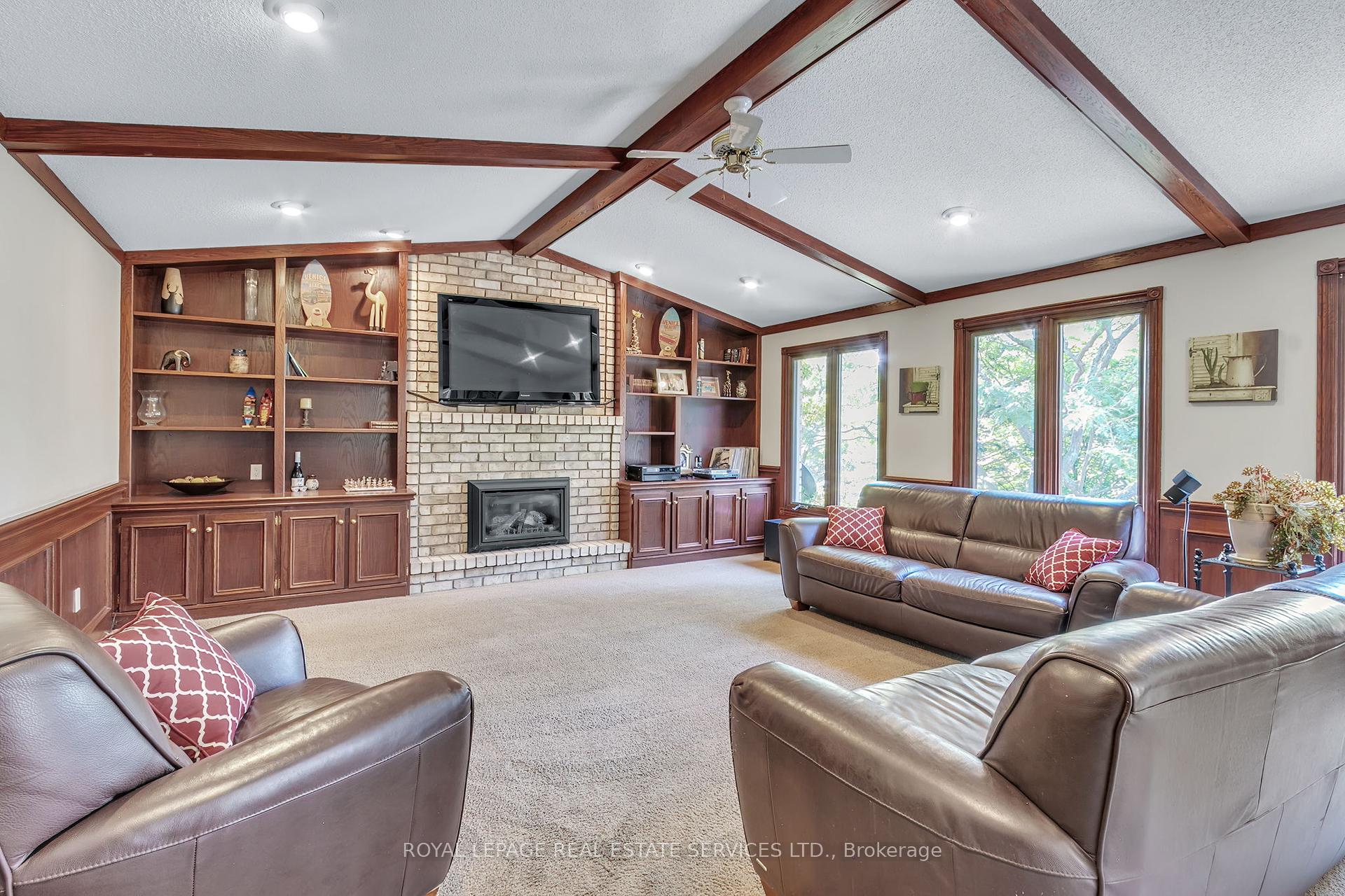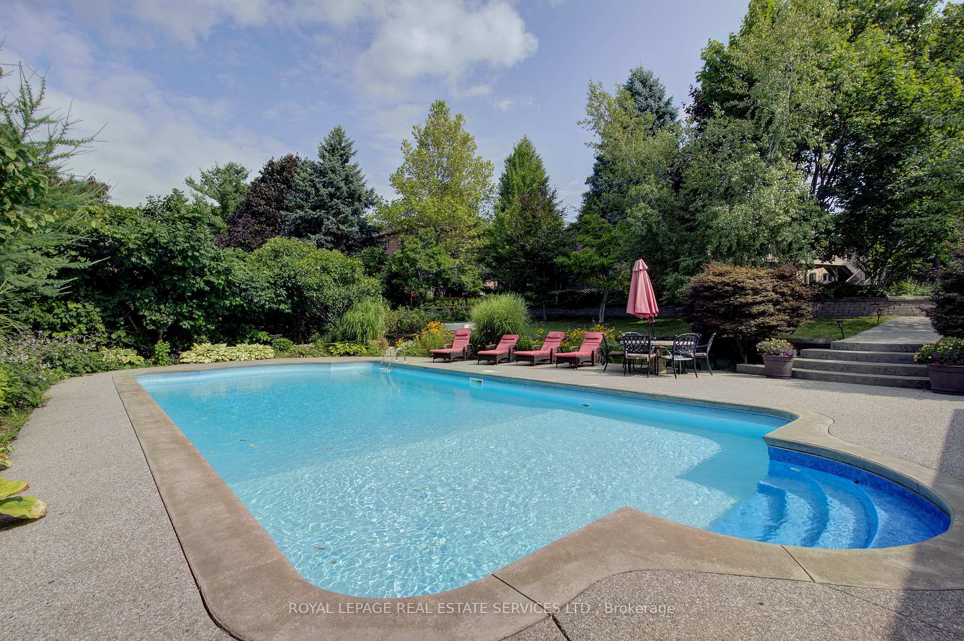 Welcome to 59 Elodia Crt, a customized estate residence just steps from prestigious Meadowlands! This executive home is ideally located at the end of exclusive Elodia Court, nestled on a ravine-lined, 3-tiered, 0.7-acre Muskoka-like setting. The photos simply don’t do this spectacular property justice! With commanding curb appeal and a circular driveway, this home exudes class and elegance. Offering approx. 7,600sf of refined living space across 3 levels, it is filled with natural light and boasts ravine views from every window. The main level features expansive principal rooms, both formal and open concept, along with an updated chef’s kitchen outfitted with professional-grade built-in appliances & an oversized pantry wall in the breakfast area. Notable main floor highlights include richly stained hardwood floors, a grand oak staircase, imported solid surface counters & tiles, custom millwork, intricate trim & plaster detailing, skylights, and unique architectural accents. The 2nd level offers 4 oversized bedrooms, including a luxurious primary retreat with a spa-like ensuite and a walk-in dressing room. 3 fully remodeled bathrooms provide a fresh, contemporary feel. The recently renovated lower-level walkout presents a spacious rec room, games room with custom servery, 5th bedroom, a children’s playroom, abundant storage & convenient service stairs to the garage. The one-of-a-kind, multi-tiered backyard must be seen to be truly appreciated, featuring a custom Trex deck, stamped concrete patios & walkways, a relaxing hot tub, and a Tuscan-inspired 20’x40′ pool. The custom pool house cabana is complete with solar heating, a fire pit and a storage shed – all surrounded by manicured landscaping and total ravine privacy. Notable upgrades include furnace 2025, basement 2017, bathrooms 2020-2022 w/ heated floors, pool/cabana 2010 – updated 2022, roof 2016, windows 2010-2014. Minutes from Canadas top private schools, major highways and all the charm Ancaster has to offer!